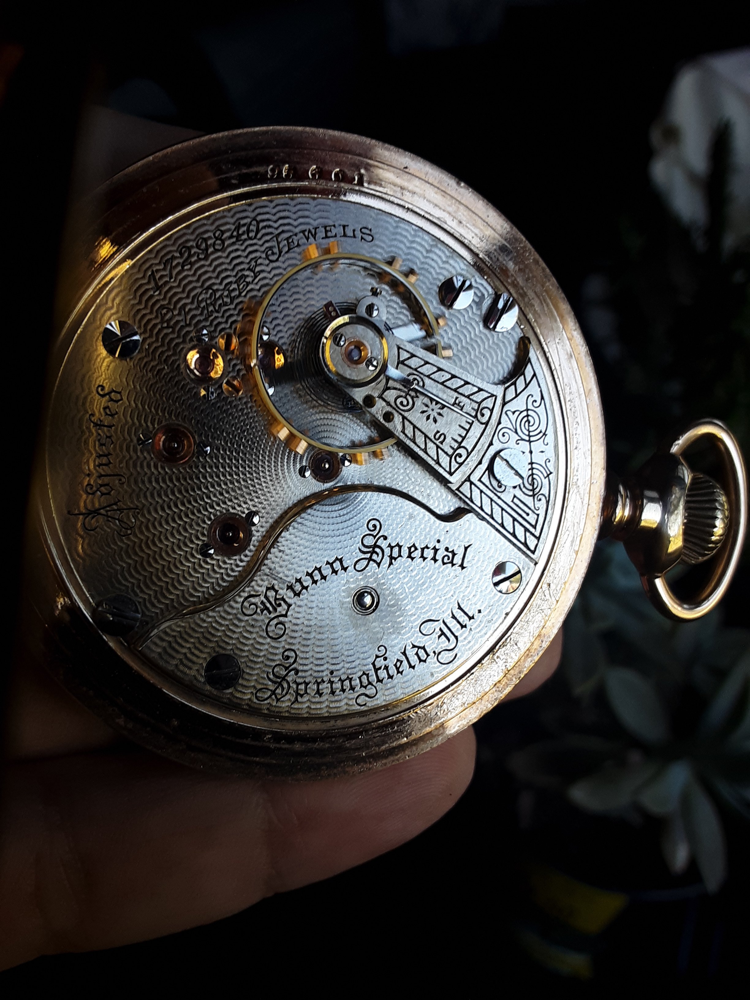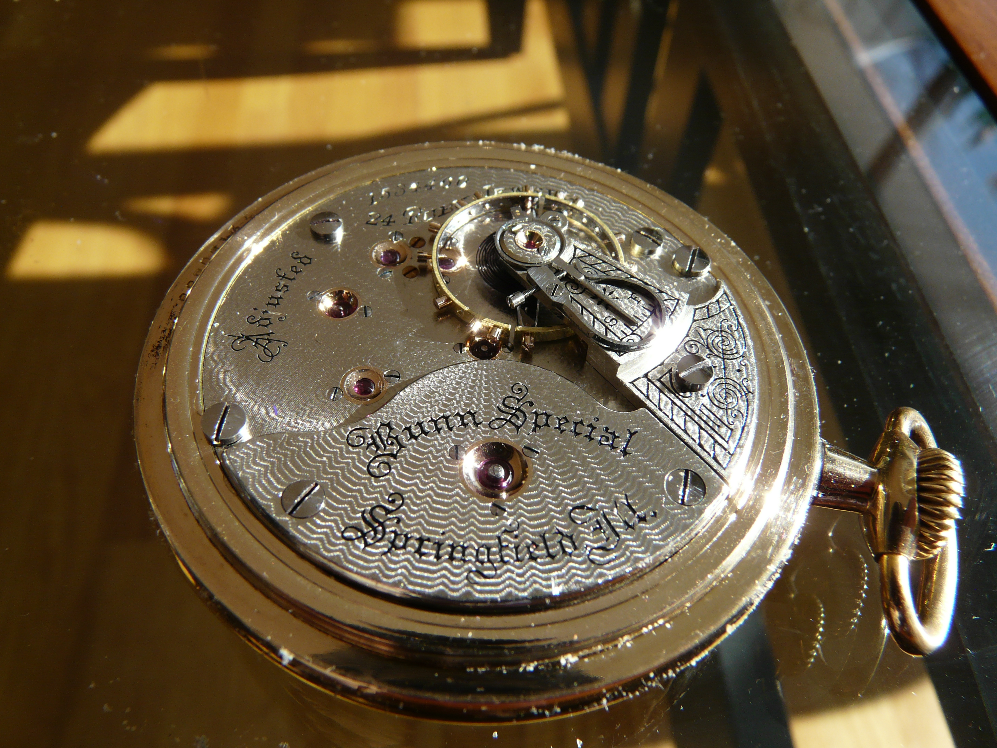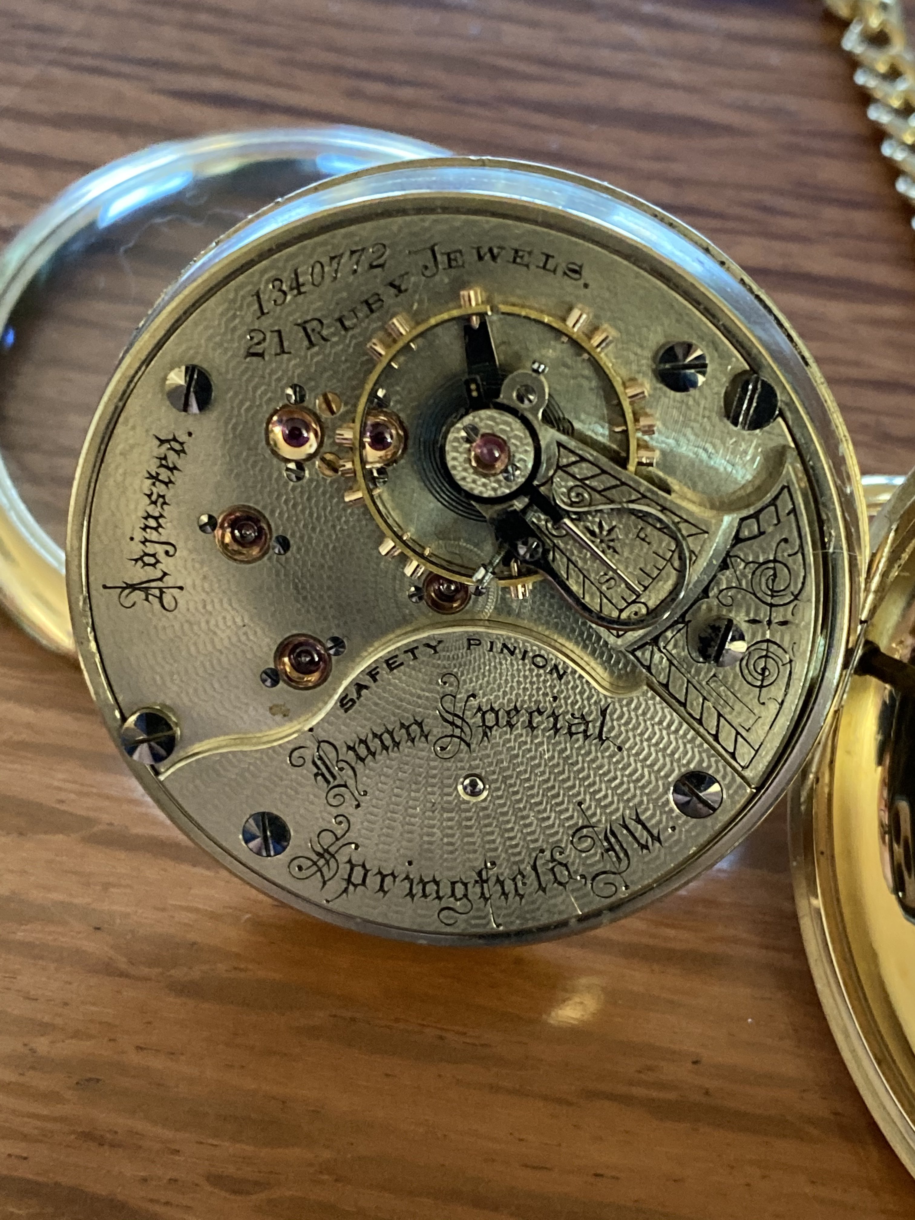·I wanted to share my newest acquisition that arrived in the mail today. I bought this beautiful 1904 18s Illinois Bunn Special off of Ebay and I'm delighted. It is running well, has a clean dial with only one small chip by the one, a fantastic looking movement, and as a bonus it came in a 14K J. Boss case.