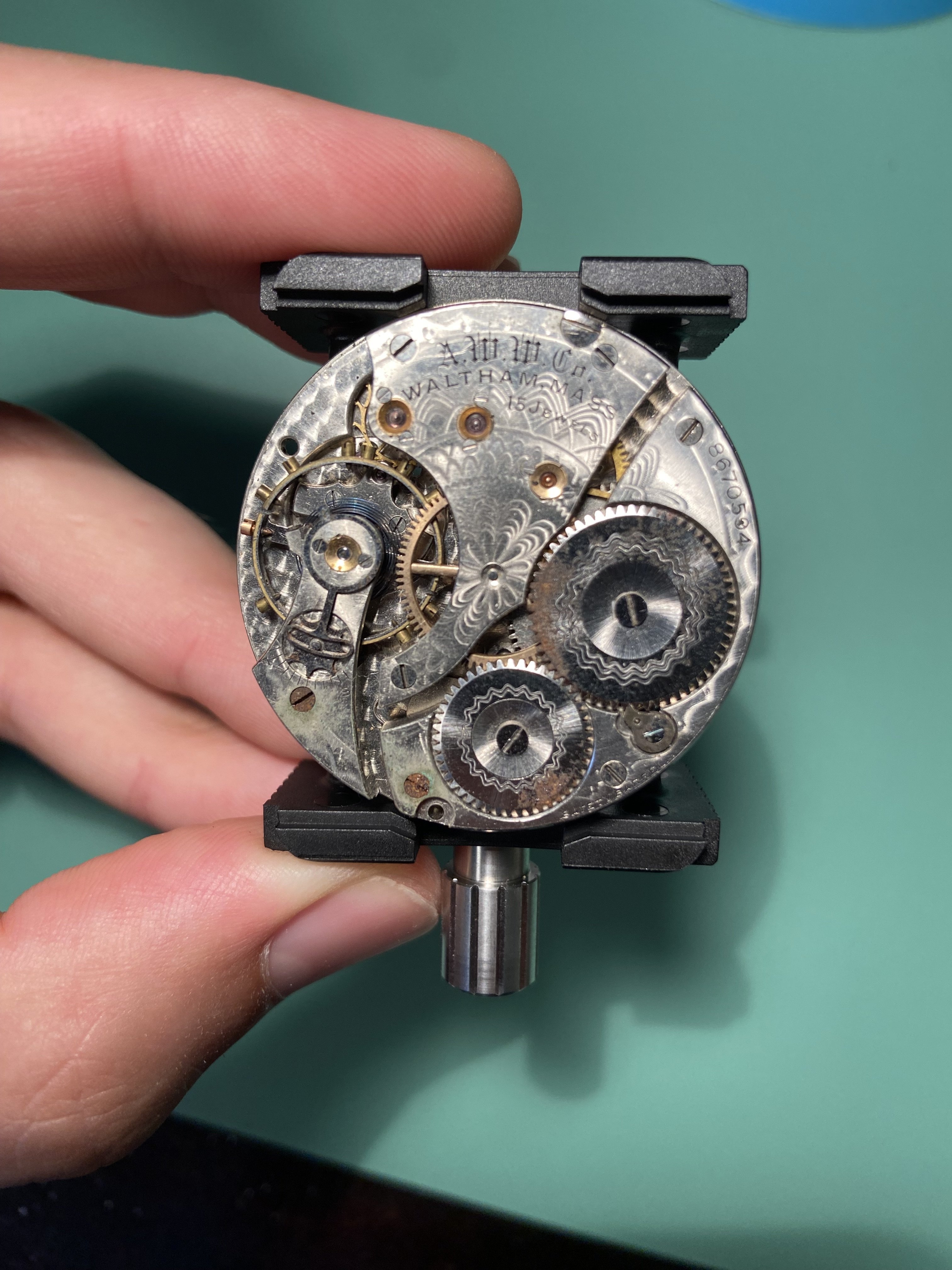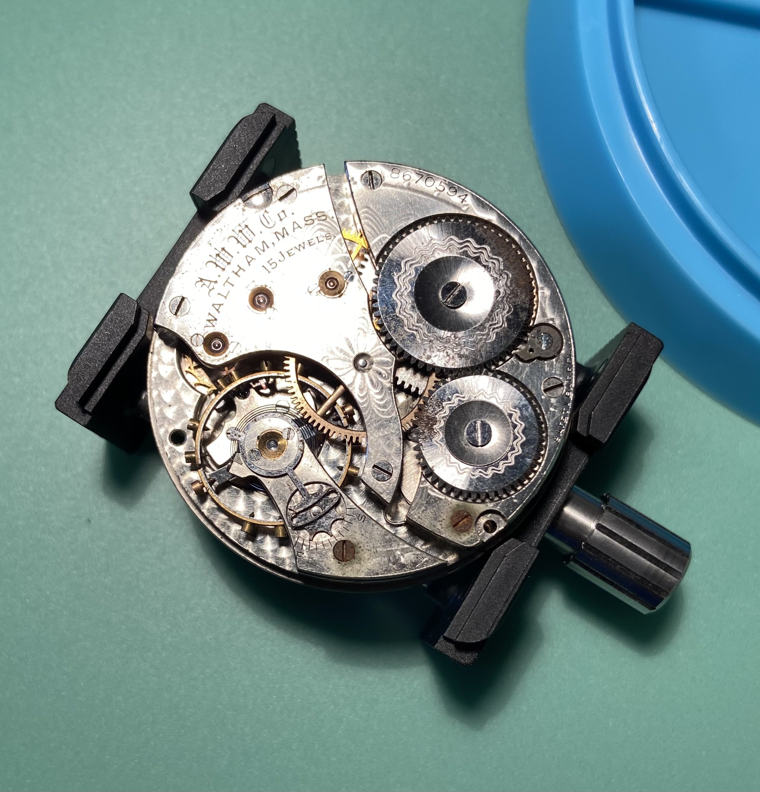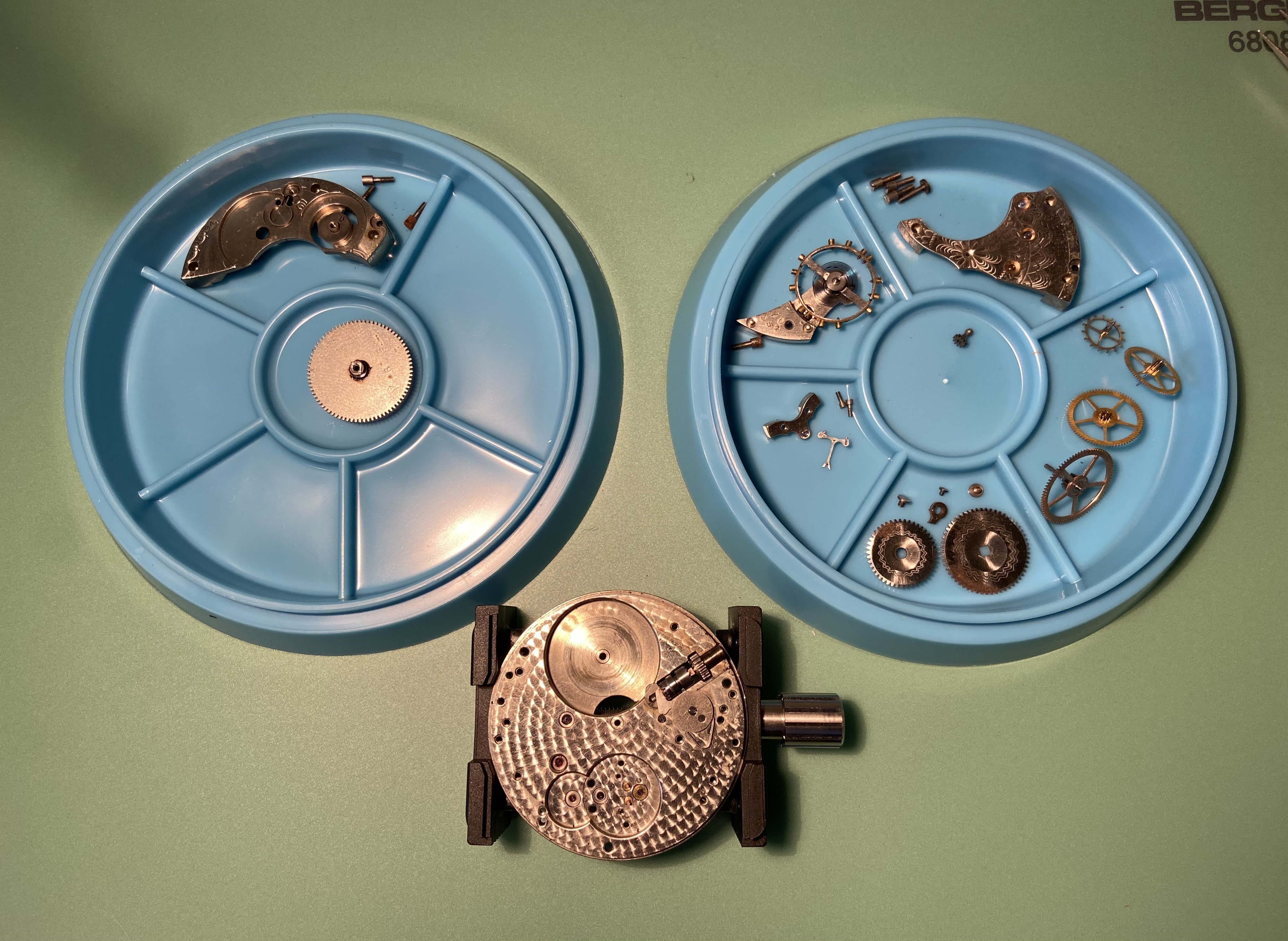 ·...starts with a single movement. Or something like that. I finally took some free time today and got through a bit more of Practical Watch Repairing by Donald de Carle. I wanted to get hands on so I grabbed a non-runner that looked easy to take apart and went to town. Just followed the basics steps from the book with no worries about causing damage. I didn't completely dismantle every piece, just removed most major components and then put back together. I was having fun so I grabbed the largest movement I have, a Waltham pocket watch, and did the same on that. Probably should have started there but the Waltham finishing is so nice I felt bad using it as the first victim even though it's already basically junked. Most of my junkers are tiny ladies watch movements so not great for learning.