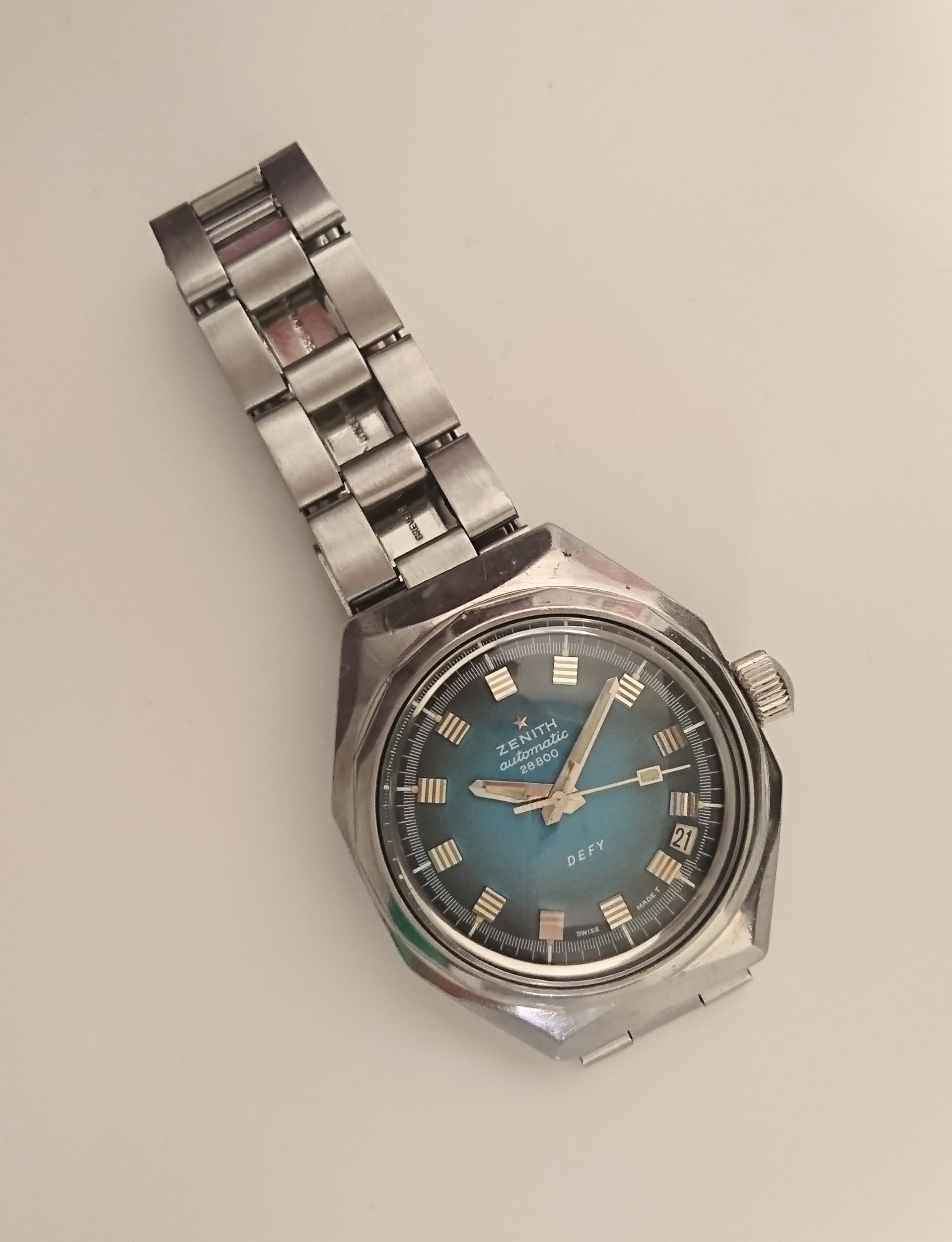 Ok, I continue my monolog. Here is my latest purchase: Turquoise dial Defy. The case is not in very good shape and it does not have the orginal GF bracelet (this bracelet is from another Defy)