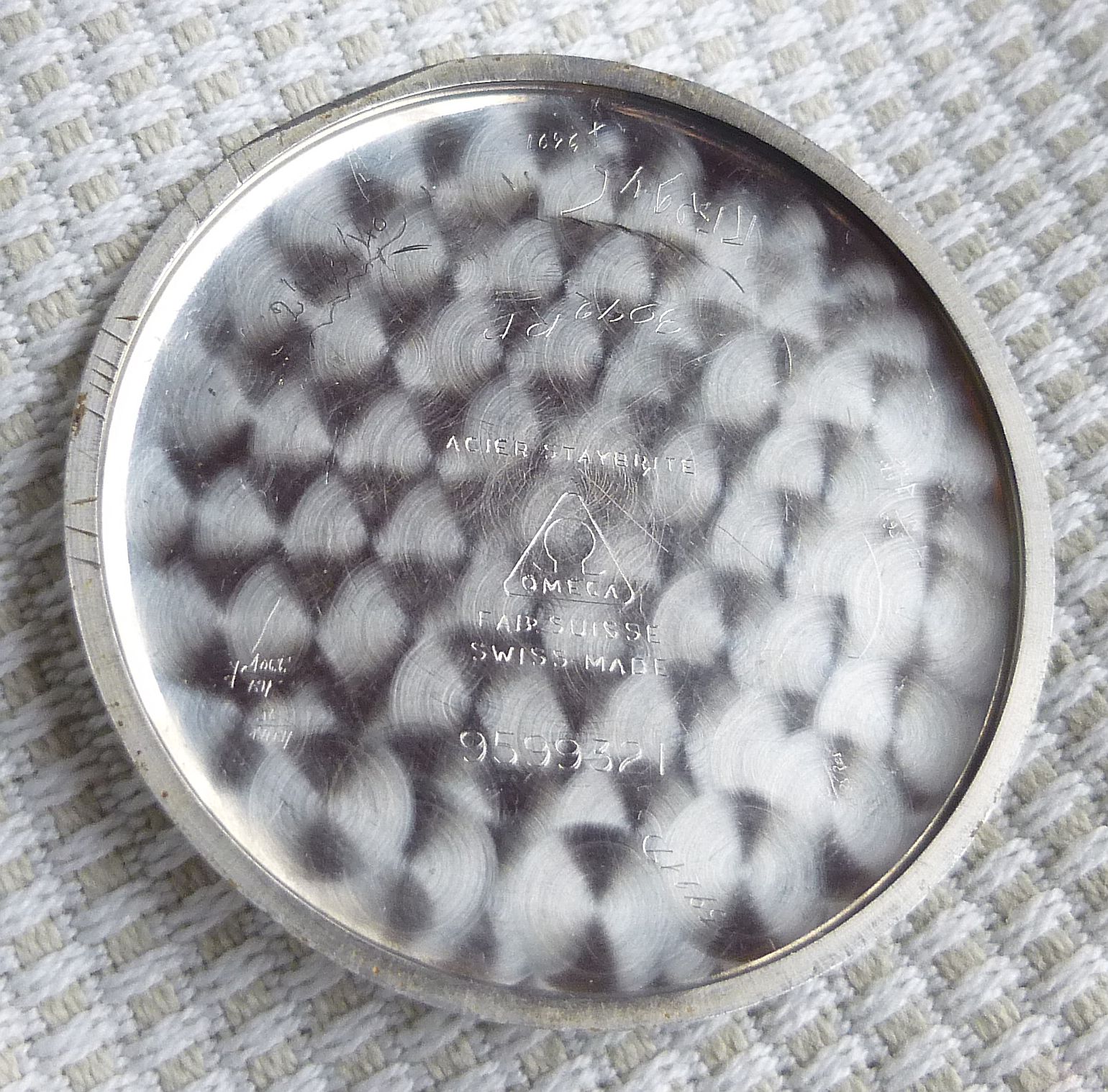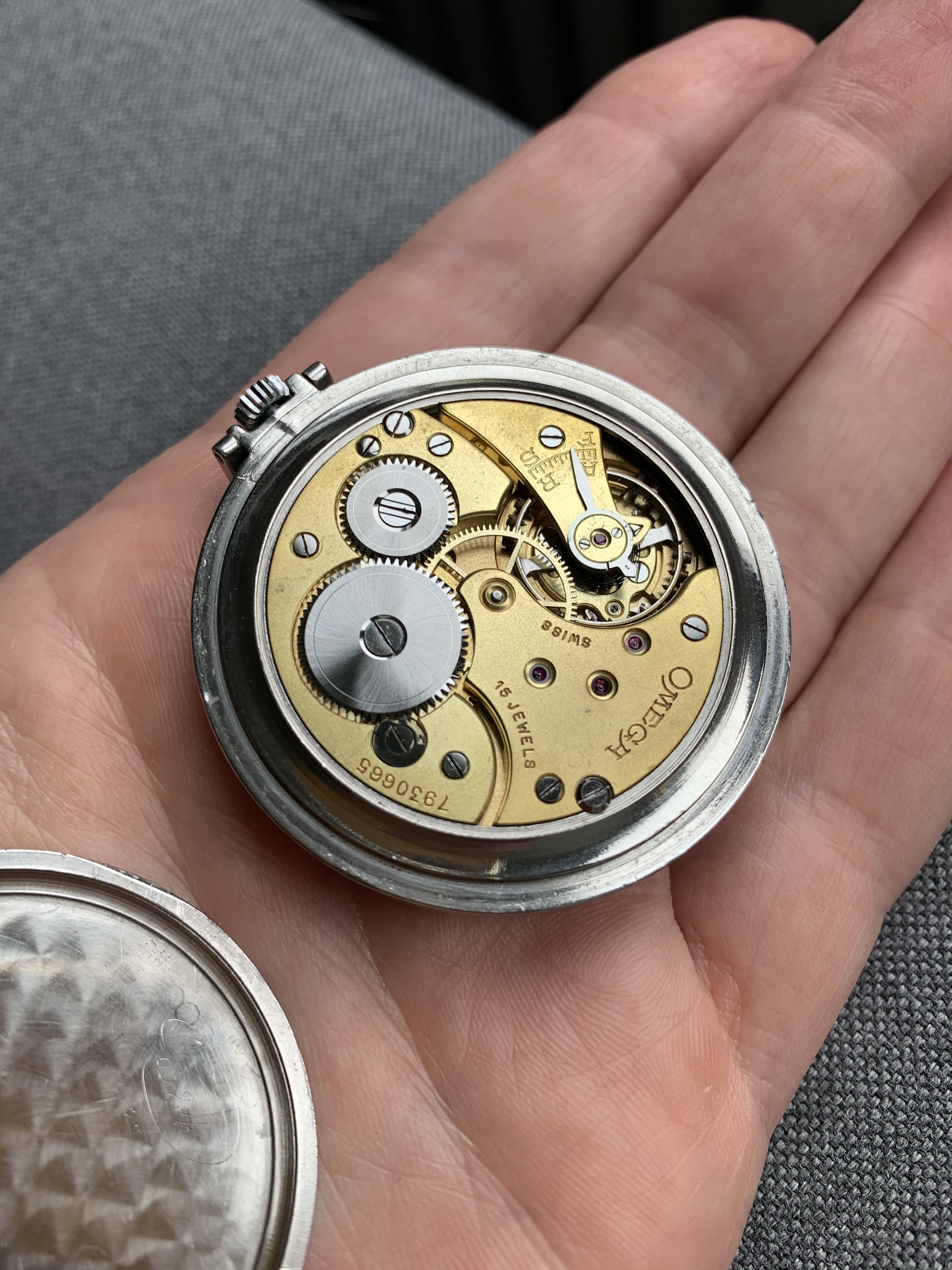 A question that I have is, is there a caliber number for Omega watches of this era? The identifiers on the dial side of the movement (photo not available) include:
