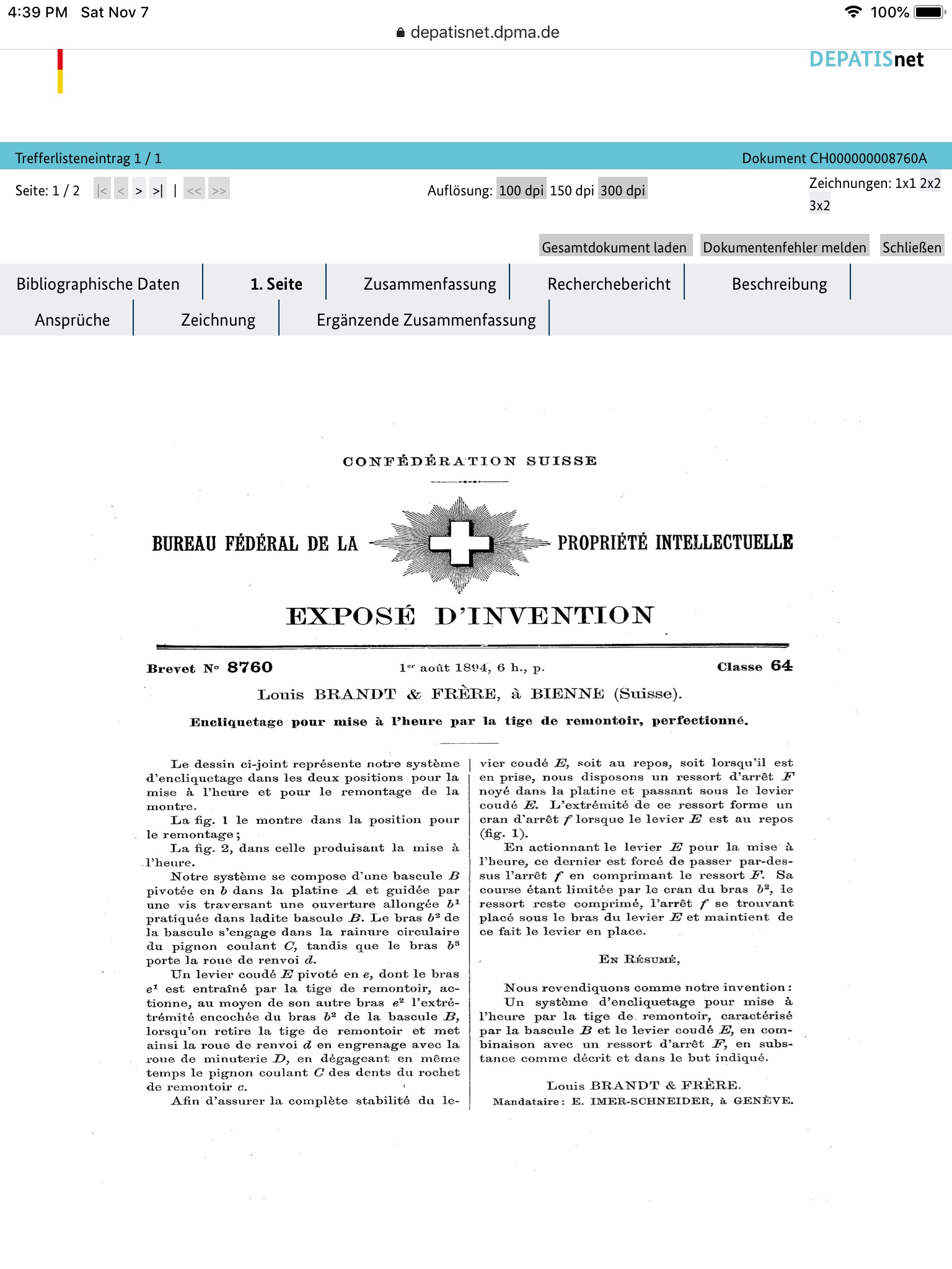 Brevet 8760. I understand that brevet means patent, so this is a patent #. I haven’t been able to find anything about the patent online
