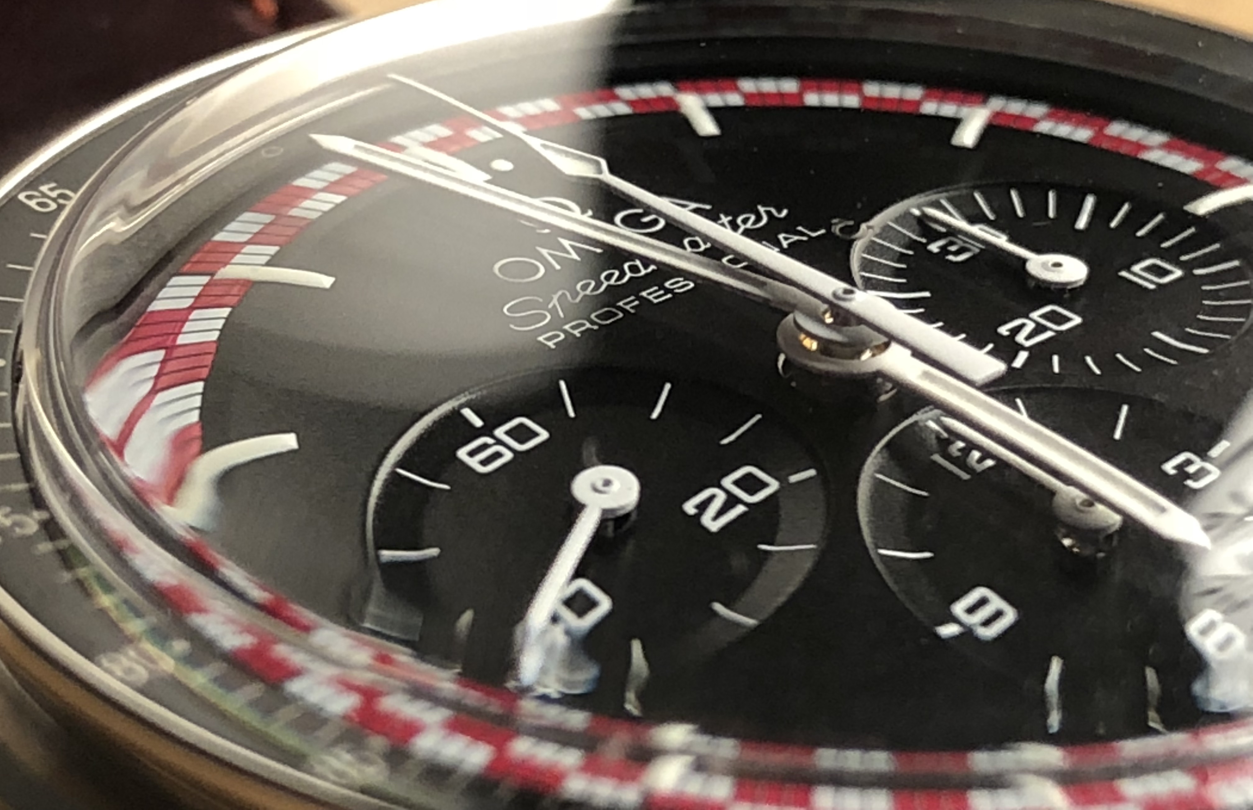 Anyway, I digress. I was looking at the Fratello Watches blog and noticed an article they'd covered a while ago regarding the Omega Speedmaster Racing model from 2013. The watch was a mainstream model but originally, it was intended to be a Limited Edition version with TinTin rocket logos etc. Unfortunately (or perhaps not), it never happened, but Omega still produced the watch as a "Racing" variant. I've always liked the racing models of the past and find it very fitting as, of course, the Speedmaster was originally intended as a chrono for things such as motorsports anyway. The dial in this case features a red and white band which was originally intended to resemble the TinTin Rocket design.