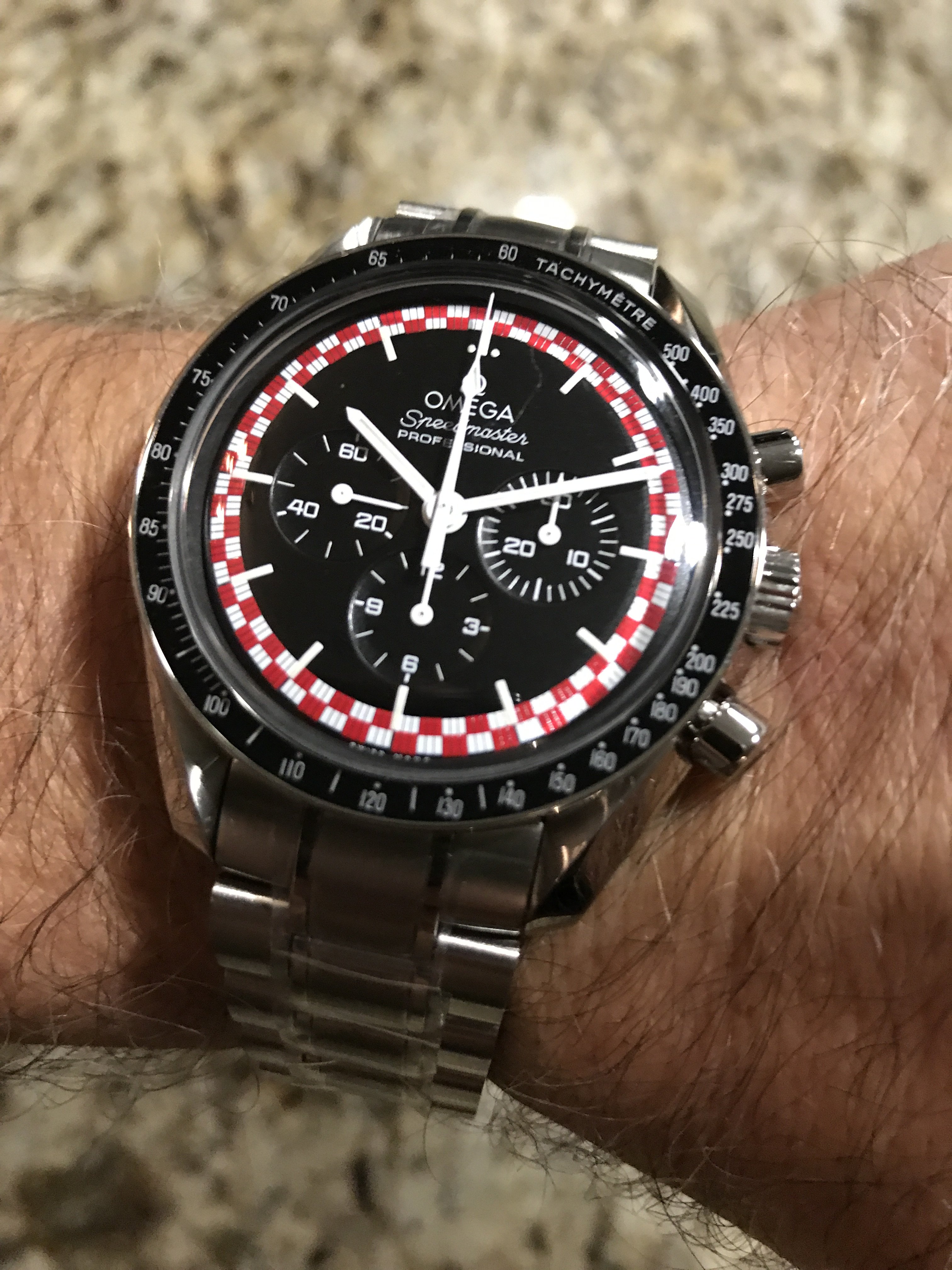 So a Speedmaster "Racing" dial with links to a Rocket are pretty apt for such a watch really.