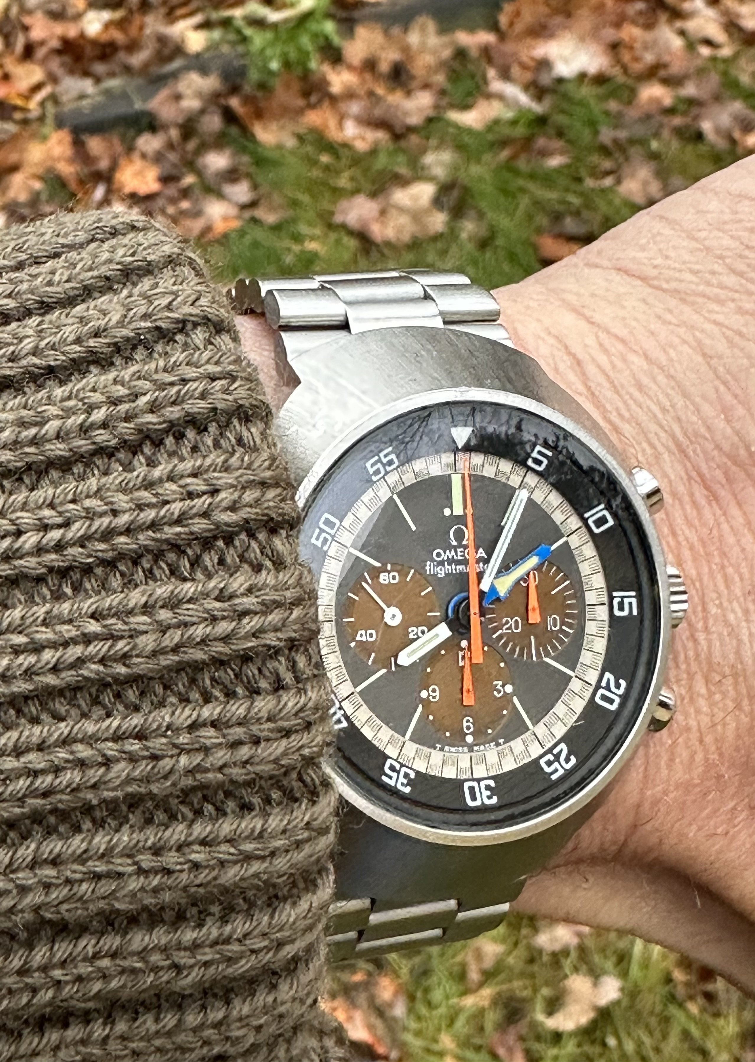 This is a 145.022-69, acquired in about 2012 in Hong Kong. I serviced it, but at service the chrono hand snapped - it happens. I did not have a replacement hand. As we can see, the hour minute hands are a particular patina, and I did not want to have a jarring replacement.
