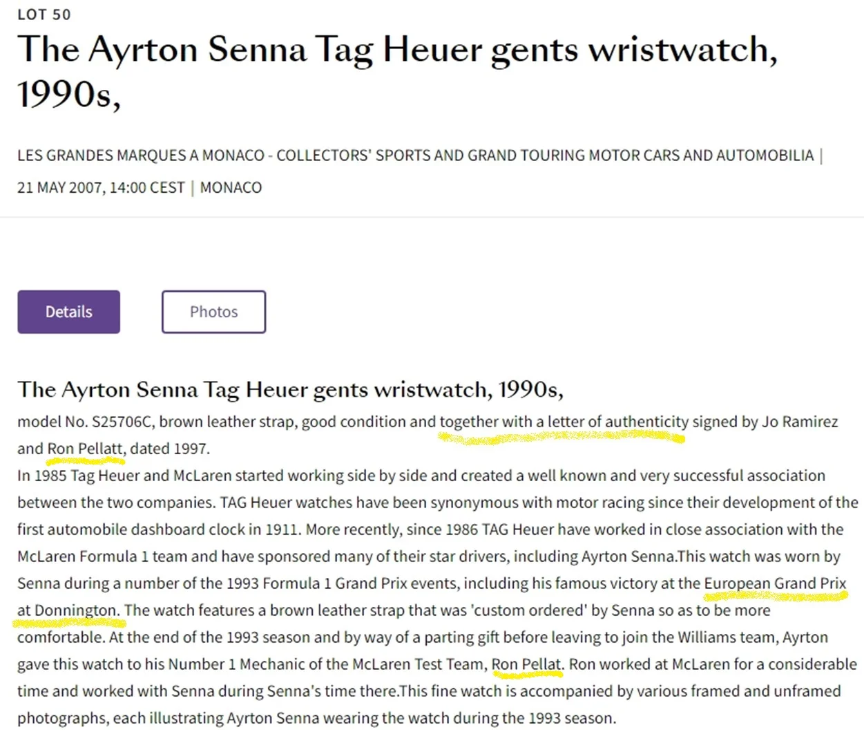 So the Senna watch doesn’t have a serial number? Otherwise Bonhams had it registered? Interesting.