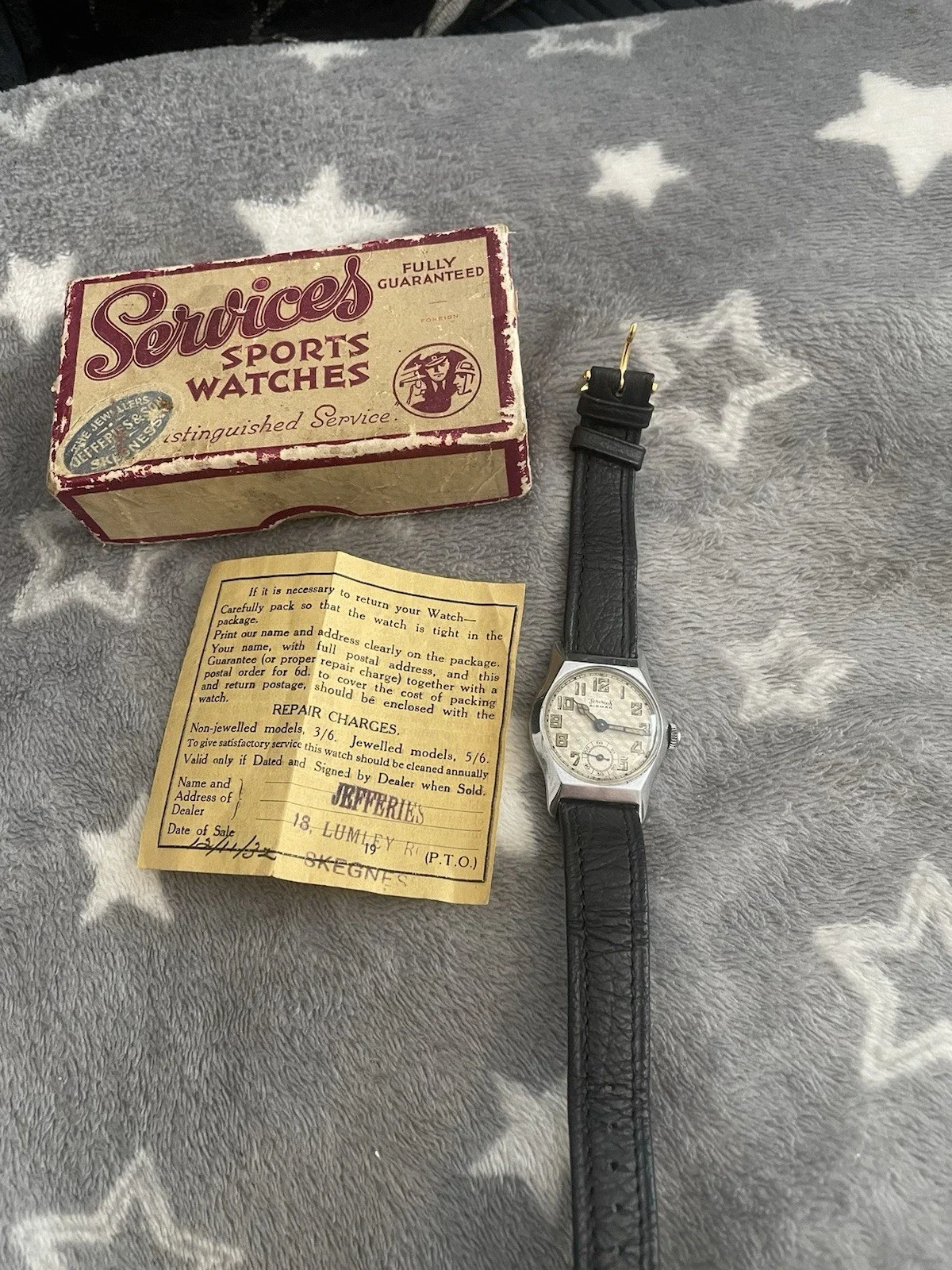 I read that the company never actually made watches themselves instead they either had them made by other firms or bought parts in which were then assembled in the Services factory. also after the end of WWII the company continued to source from Switzerland (the Oris Watch Company), these for some reason these continued to be marked as