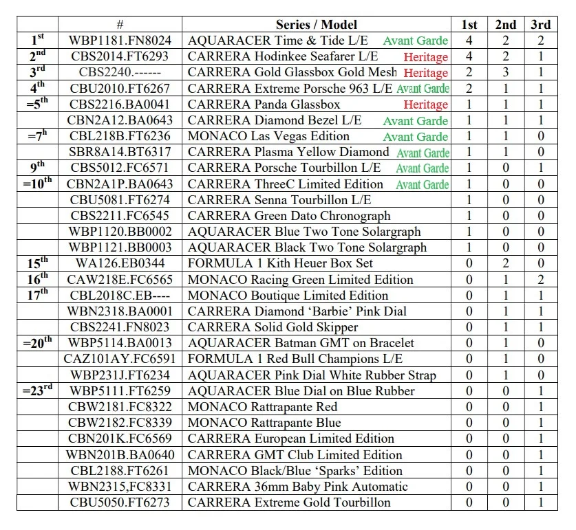 my vote would have been for the Carrera Porsche 963, as this Extreme Sport range is a completely new case design for 2024 (finally!), and I like it a lot… although among them -as a Senna fan and because of the 30th Anniversary- I put the Senna Tourbillon first and the Porsche 963 second.