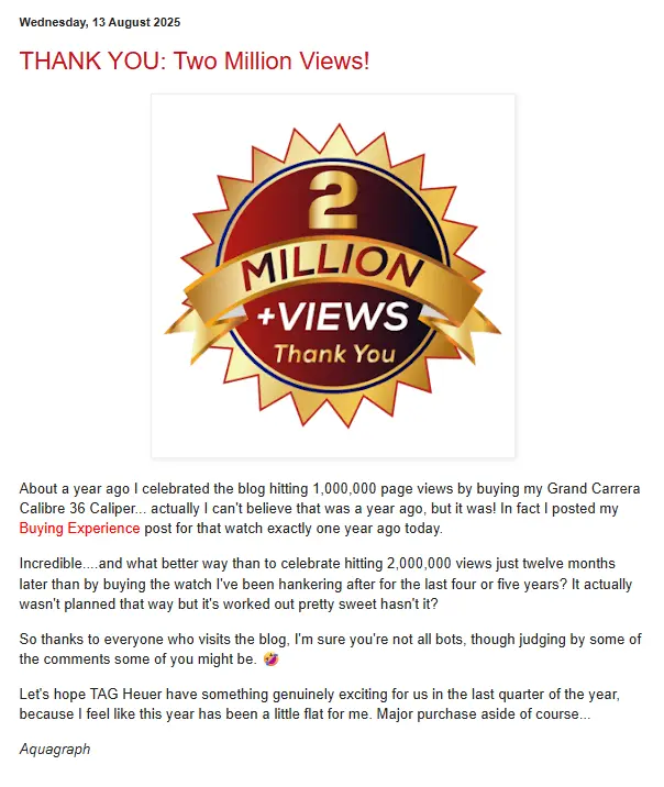 Somebody just contacted me about a couple of watches that are on my blog that AI tells them don't exist. Which must mean that those huge visitor numbers aren't actually AI scraping my blog. Lol.