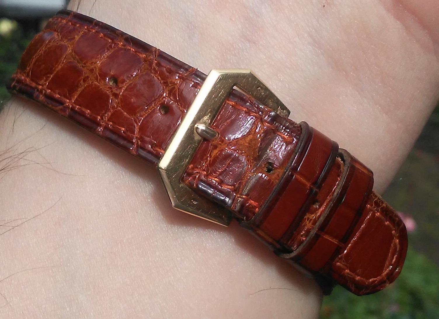 An interesting part is the buckle which is 18carat gold and has fixed lugs! So we can assume that the strap and the buckle are original to the watch.