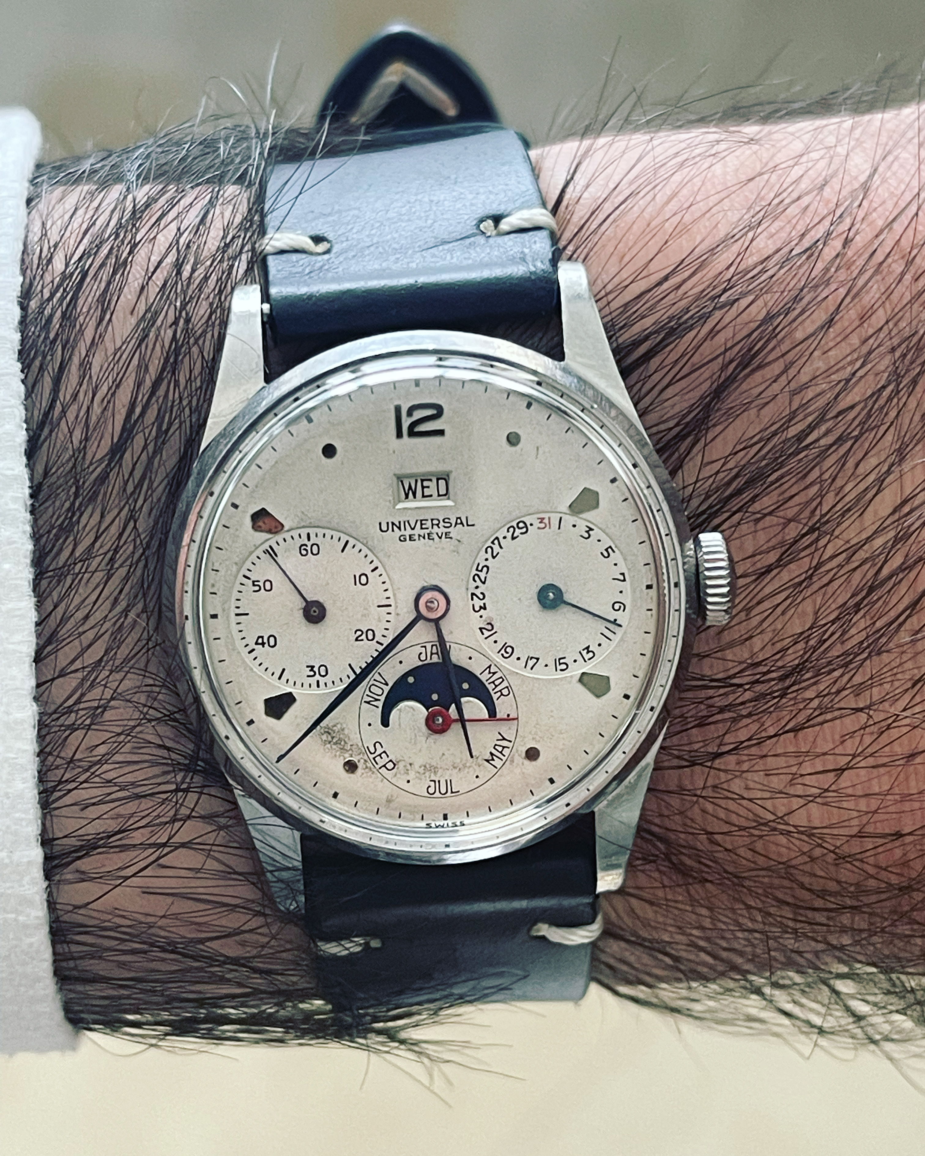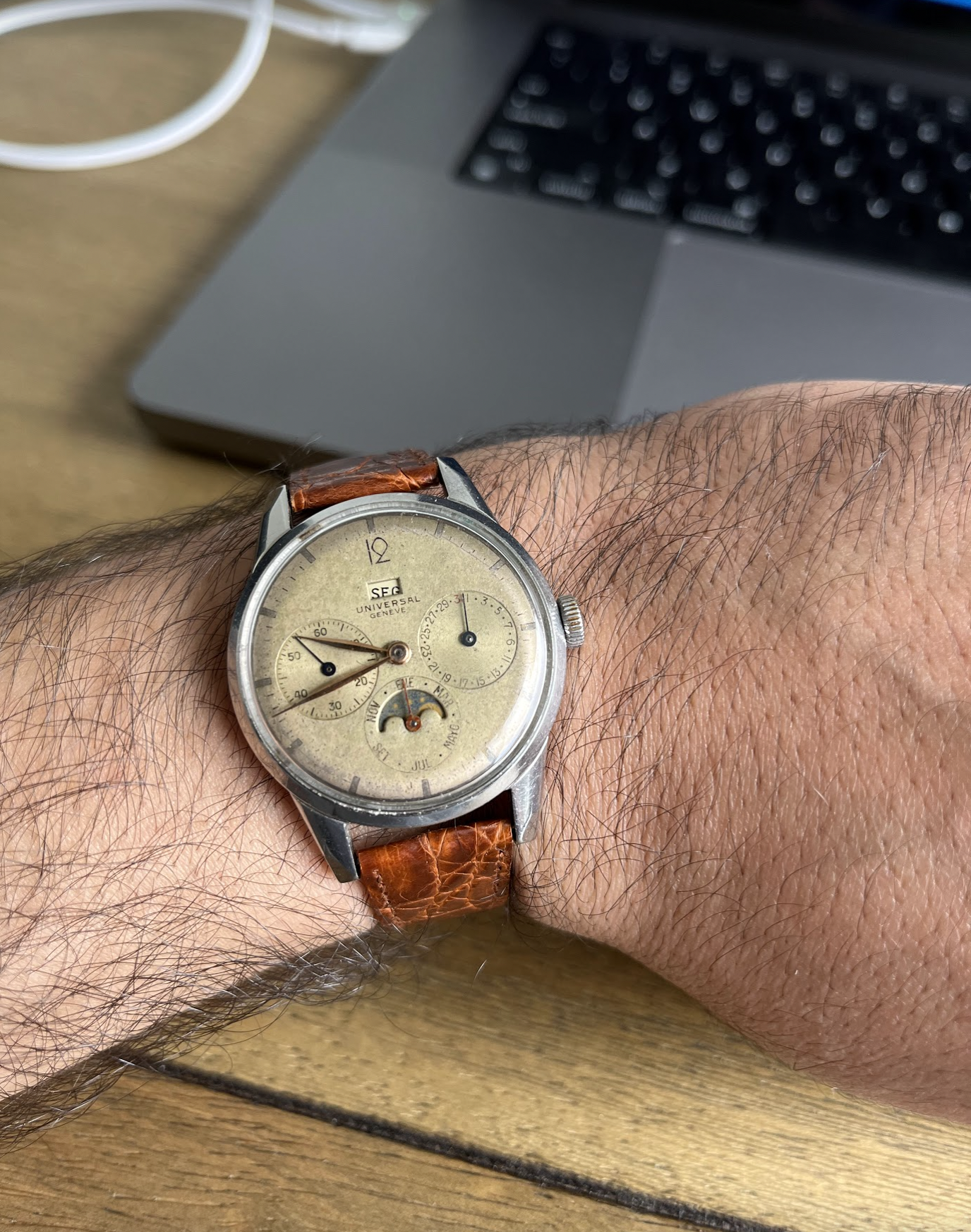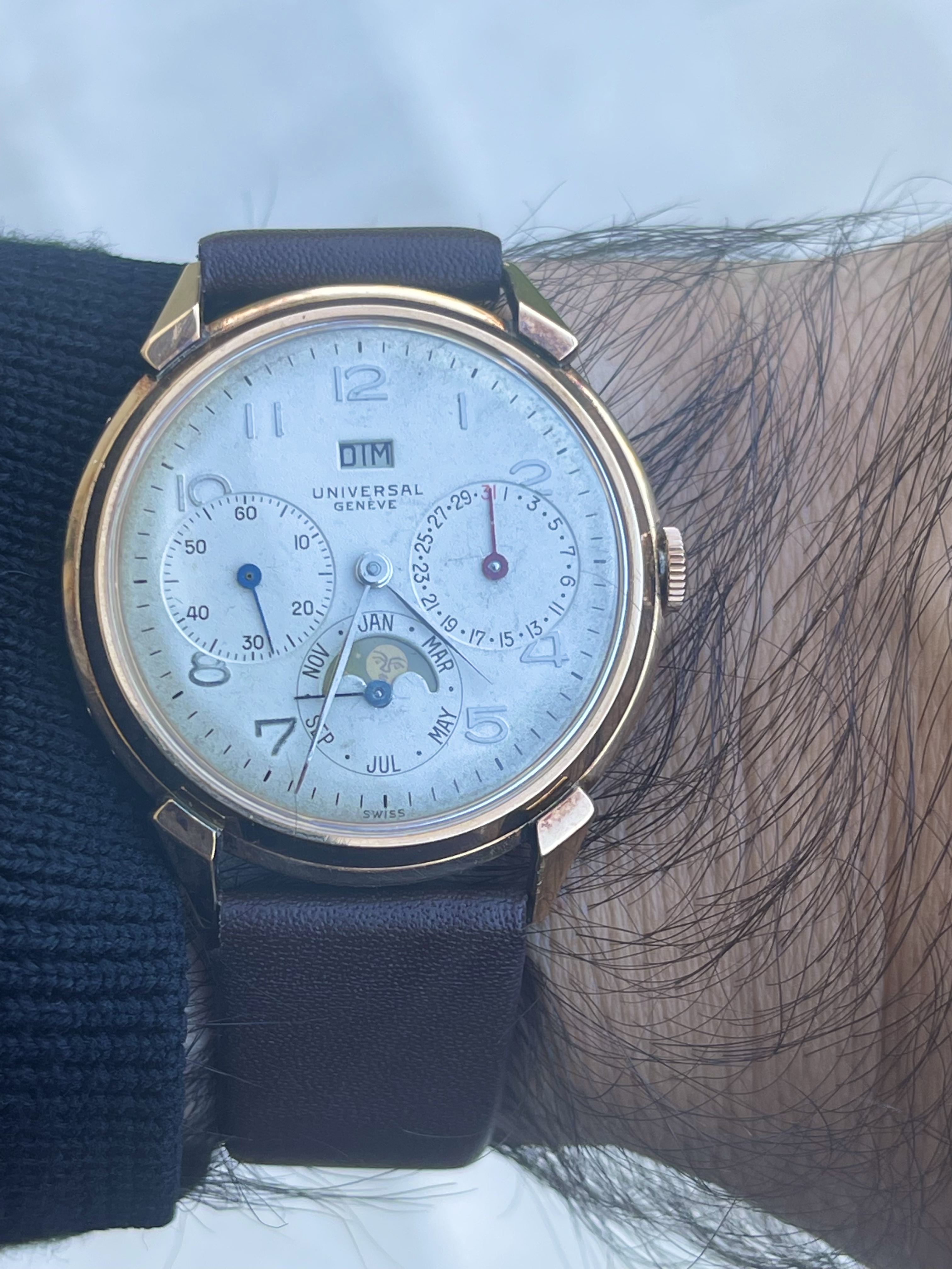Posts 696 Likes 2,382 vintage hab ·Oct 23, 2022 T TheRealMe Just took one right now for you. I’ve been meaning to wear the watch. Beautiful watch, although I noticed that the months are in English and day is in French.