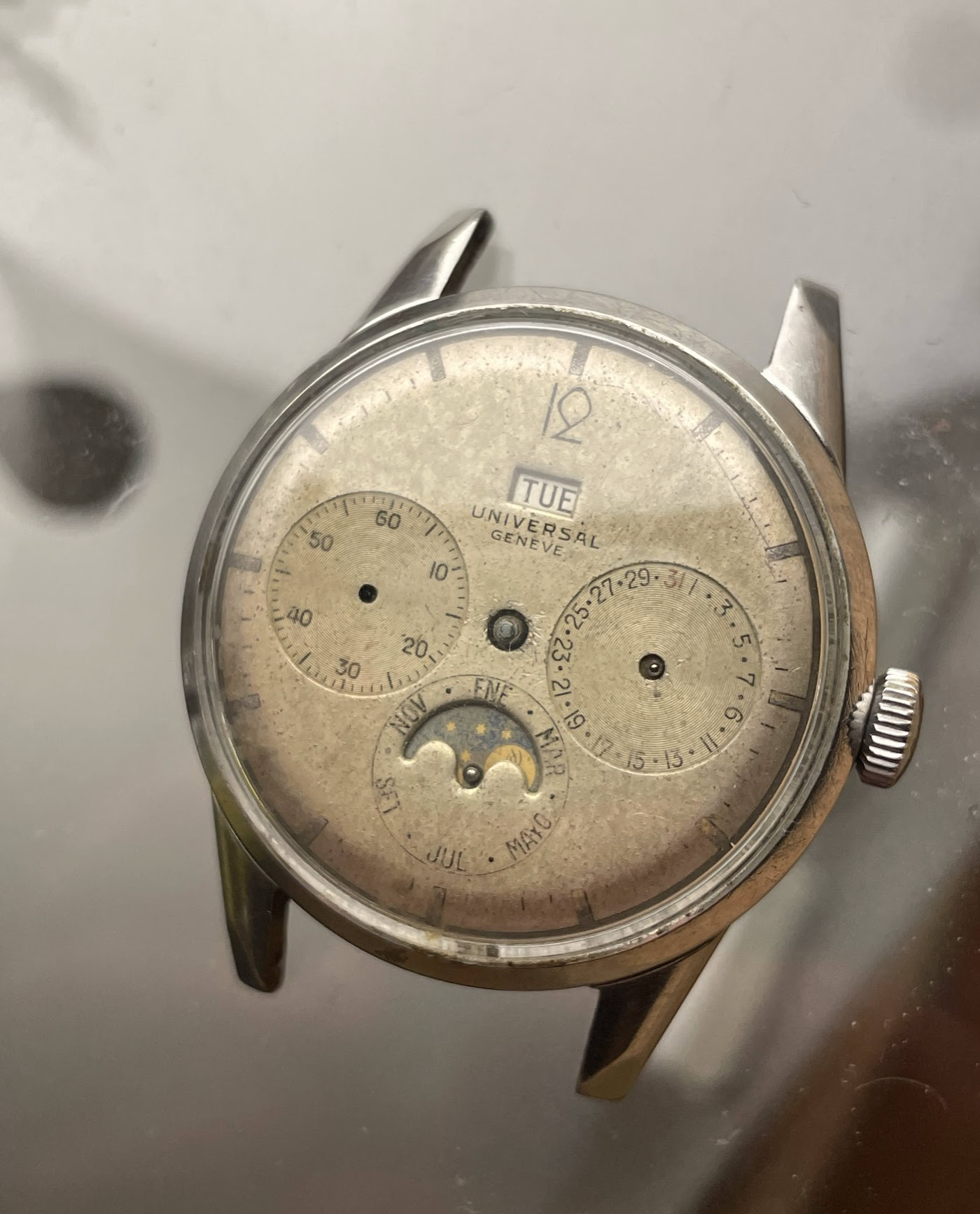 Posts 696 Likes 2,382 vintage hab ·Oct 23, 2022 T TheRealMe I didn’t ask the auction house about the discrepancy, but noticed that too. I wonder if someone just liked that dial style, and it was only available in English? The auction house is confident the case was made for the this movement and dial. I would guess that the day wheel was changed out at one point in the watch’s life.