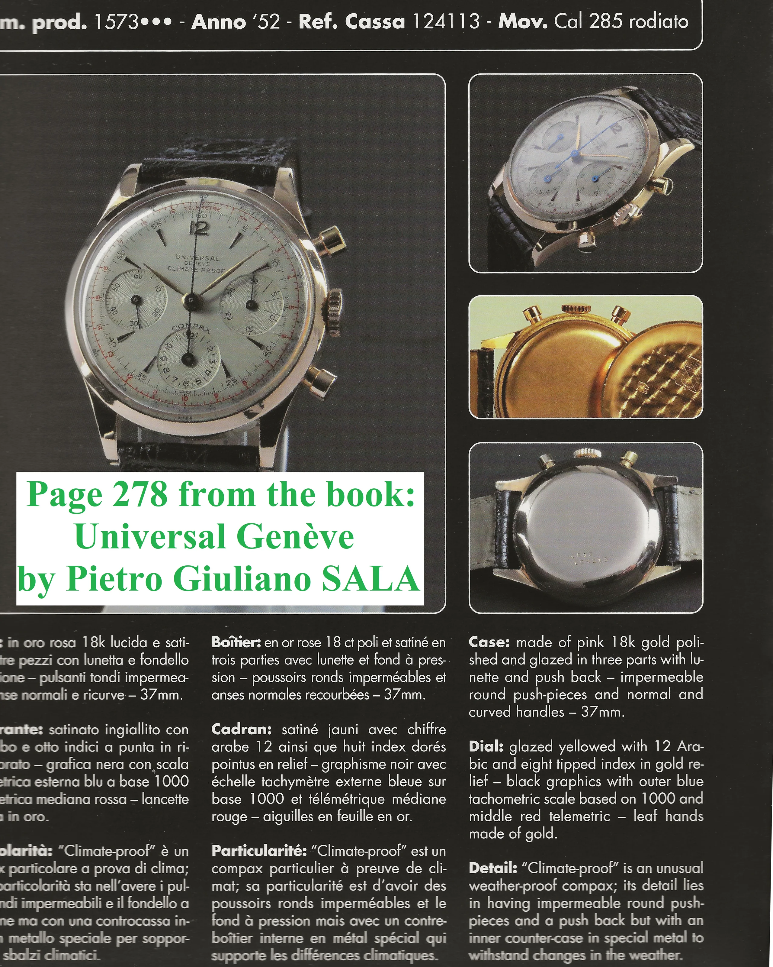 Doing my homework on this model, I gathered info on Universal Geneve Climate Proof Compax references (124113 and 12299), that I’m sharing below.