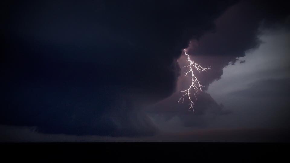 Supercell near Oberlin, KS earlier this evening. Spectacular lightning show.