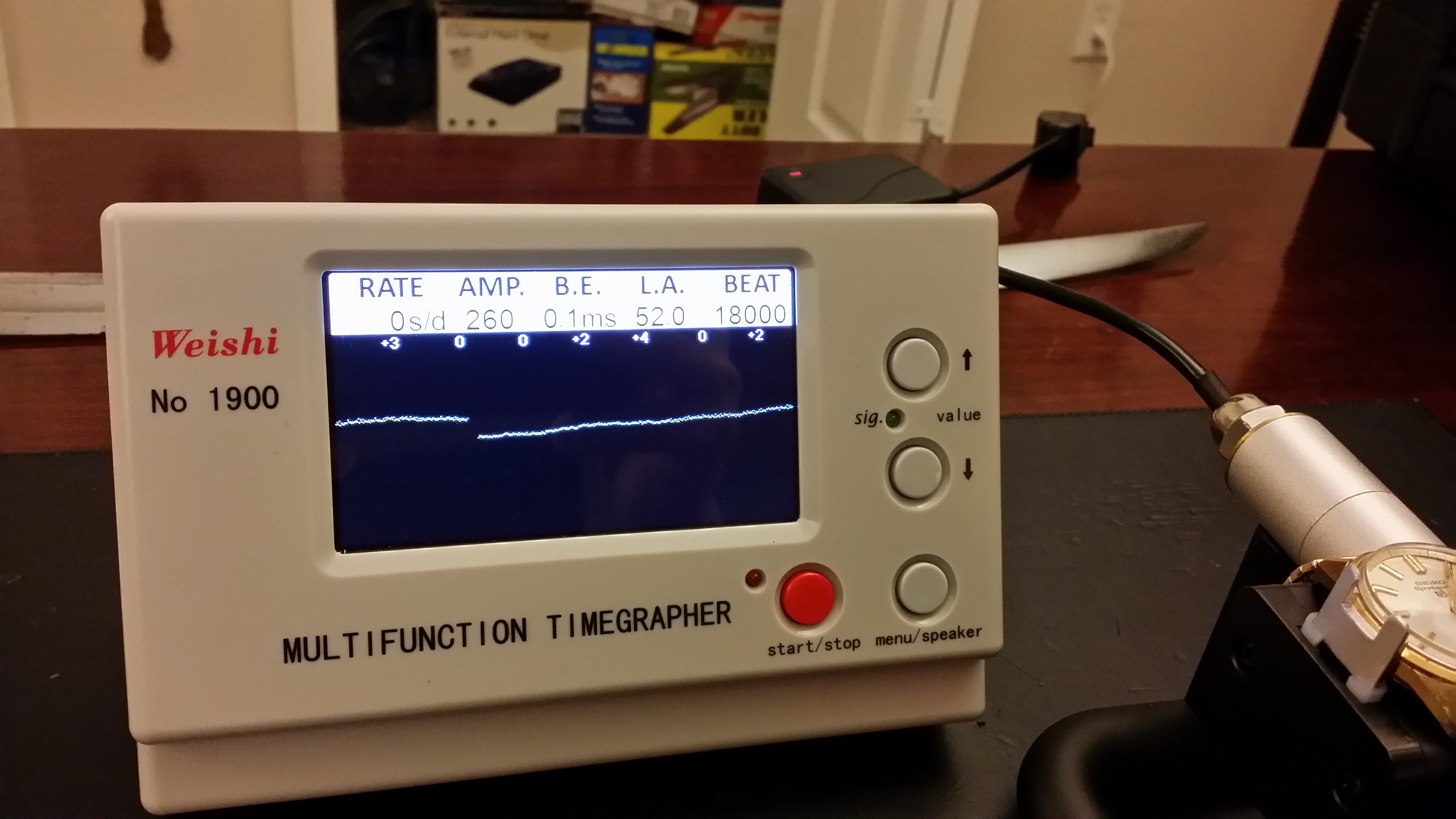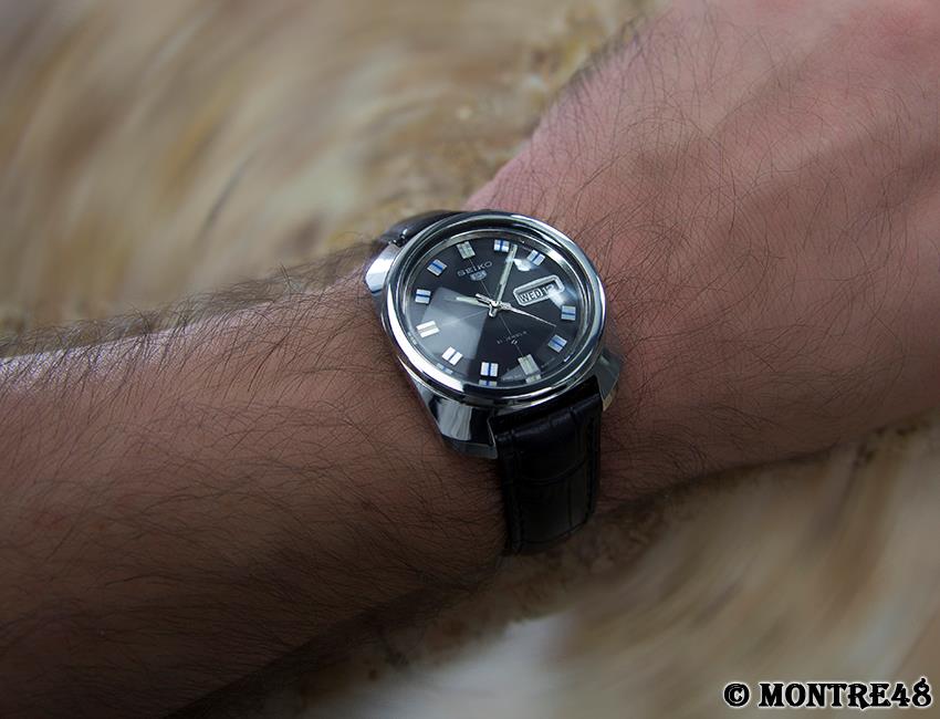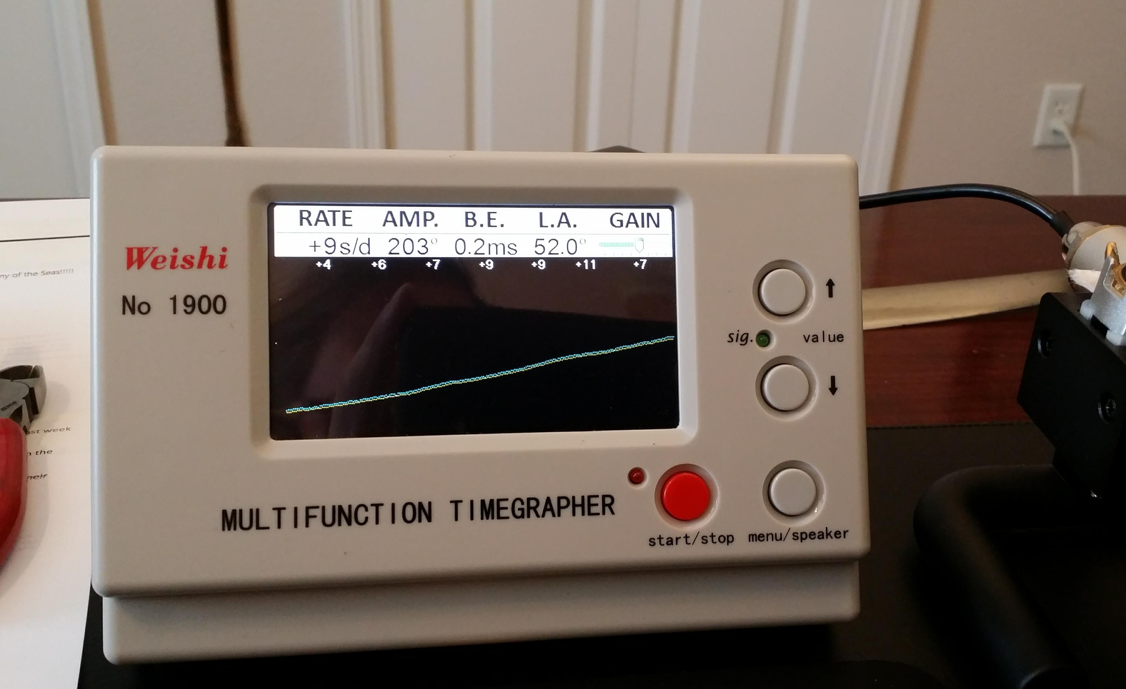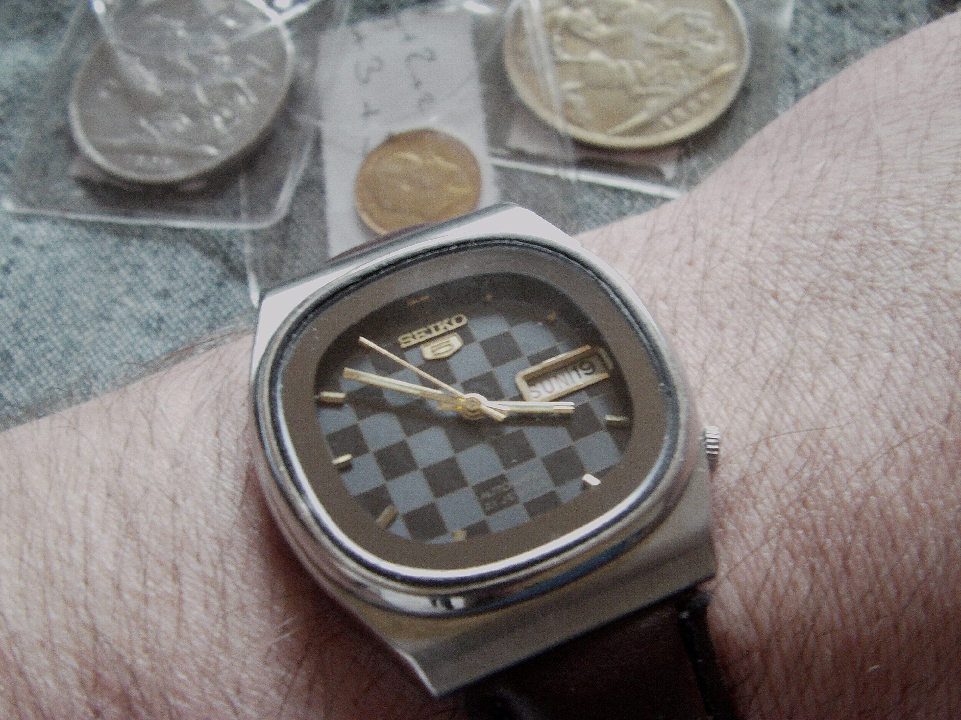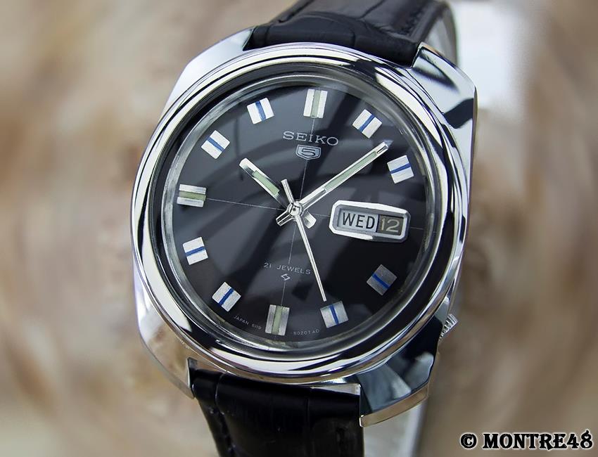 路$5 at the local flea market. Head only. July 1967 Sportsmatic 5(6619-8070). Last service mark was from 1992. A little beat up but crystal and dial are clean. Movement is clean. Put straight on Timegrapher...0.2 BE, ~9 secs/day. Pinned on an old stretch band and off I go! Everything works, runs like a champ.