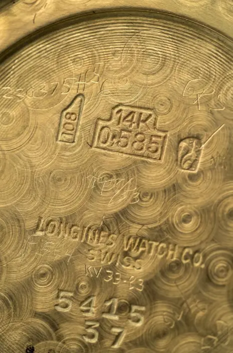 Referenza 5415. Seriale 37. Movimento 7309383 a carica manuale. Cassa in oro 14kt con diametro da 38 mm.
