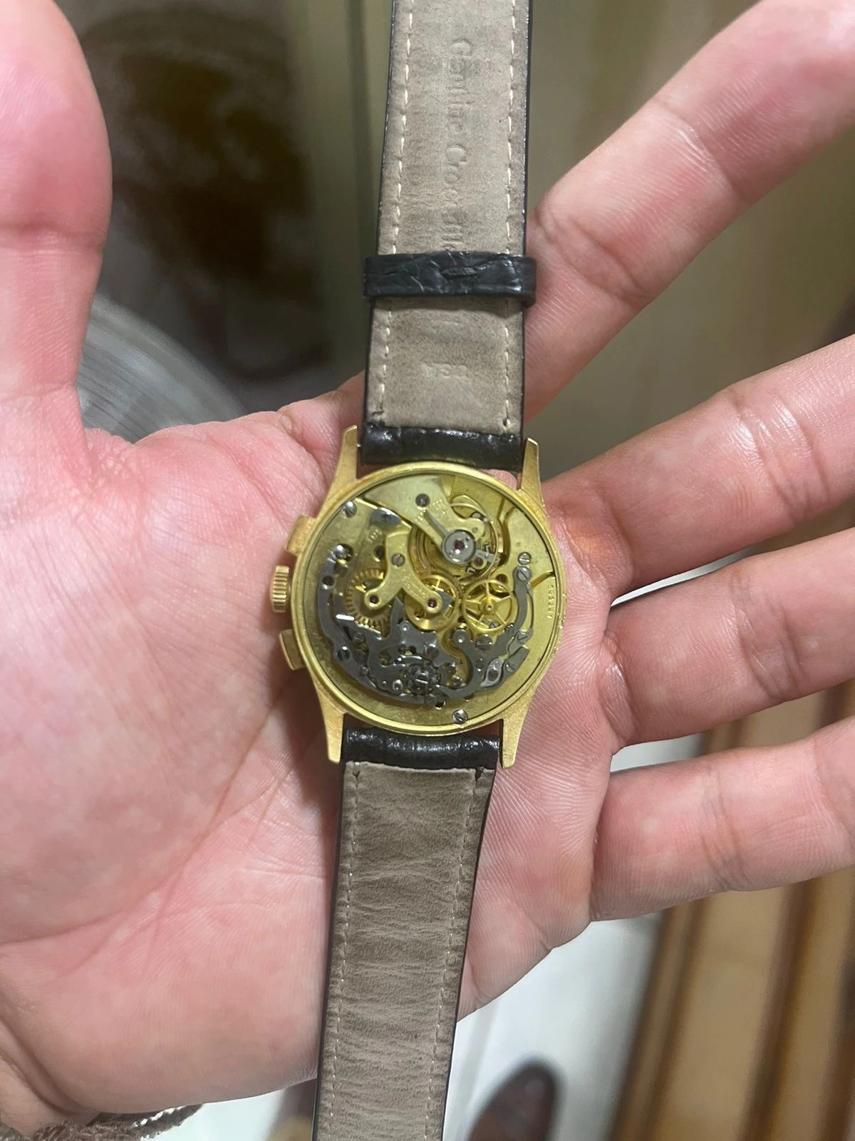 I’m new to this forum and would like to thank in advance for your time looking at these pictures. I’m interested in purchasing this UG tri-compax in 18k gold. I’m extremely unfamiliar with it but I find the watch very fascinating. I noticed one of the pushers (middle one) is not correct. I would also like to apologize in advance for the horrible pictures provided.