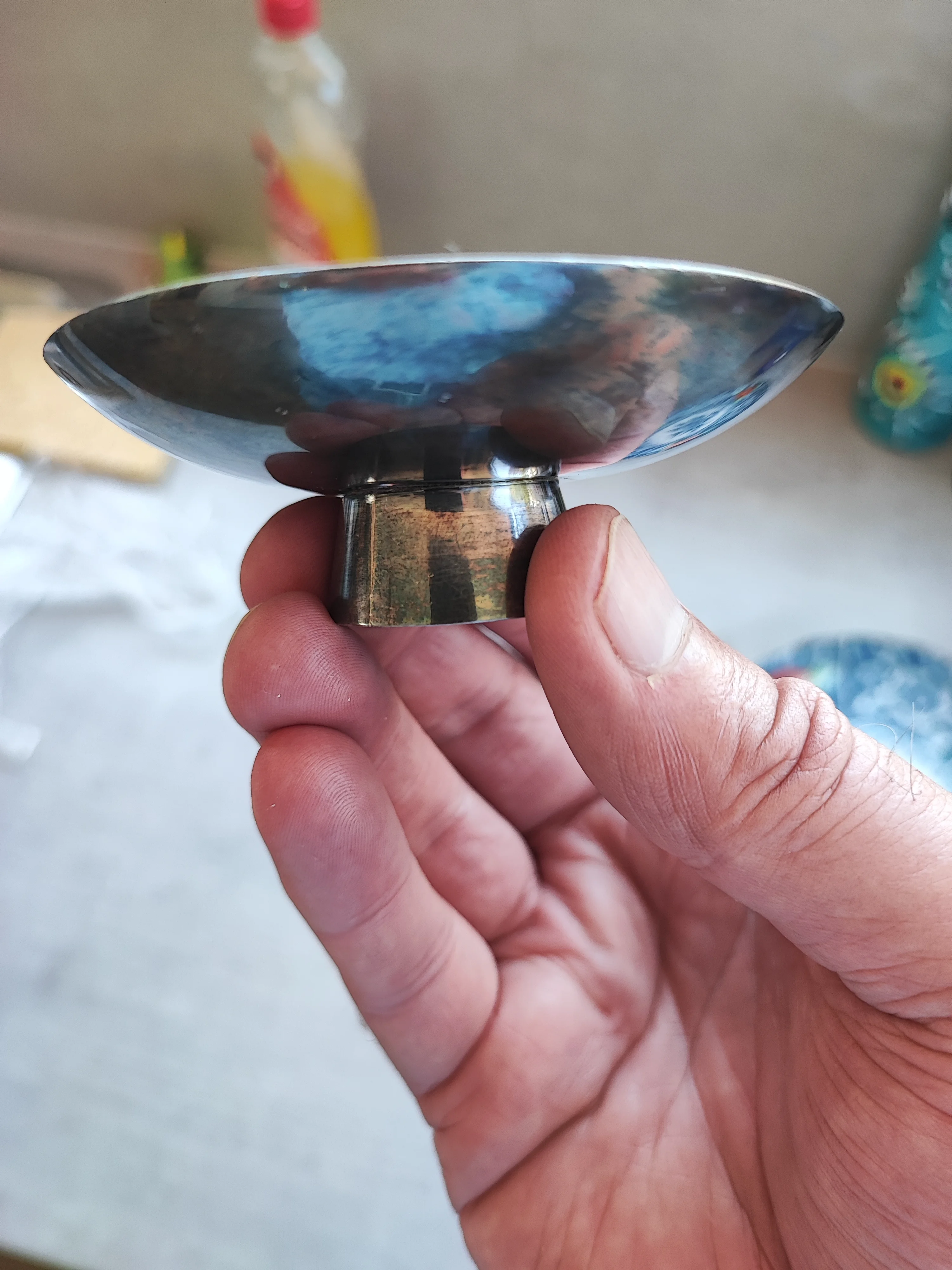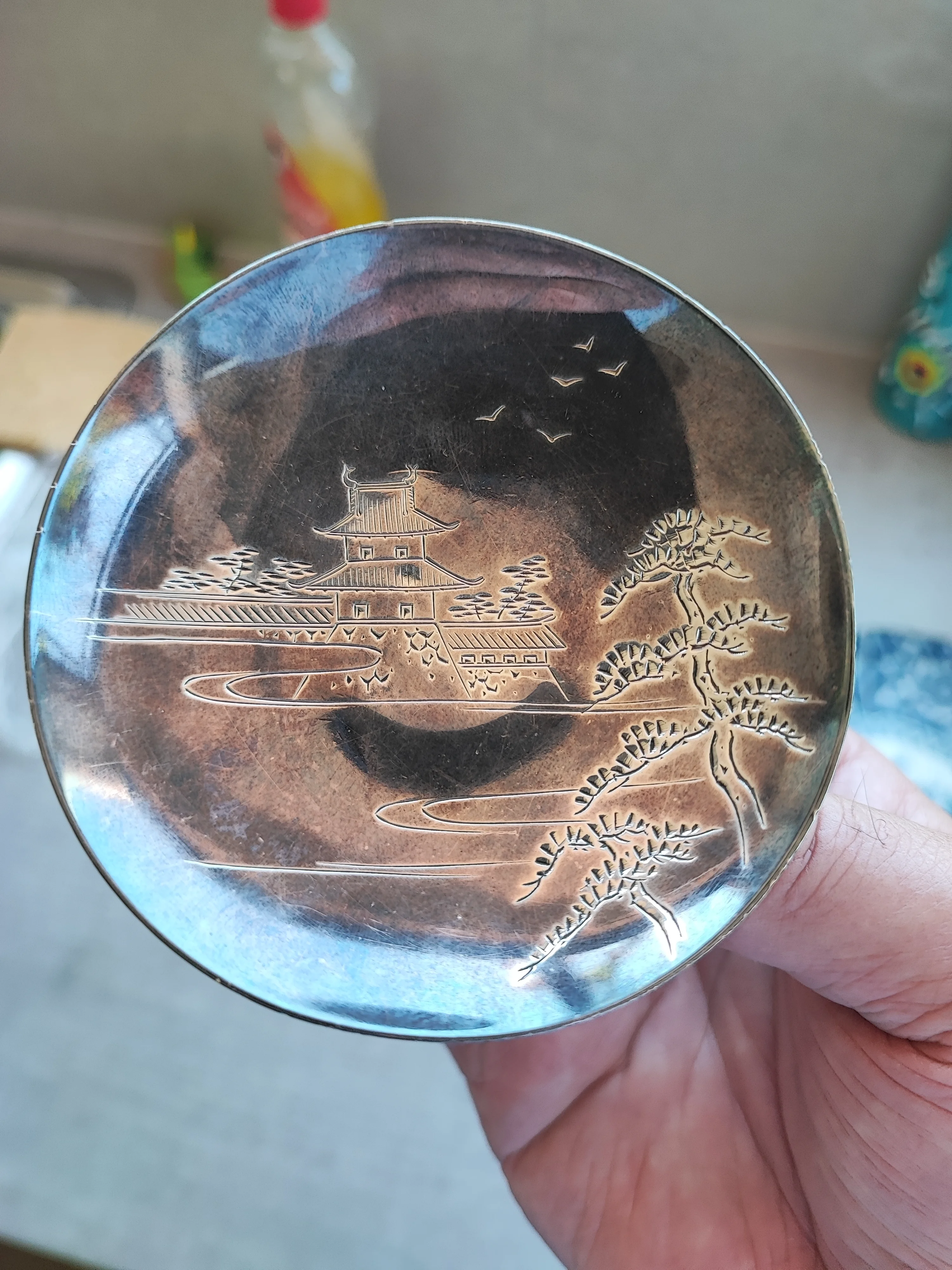 I am always attracted to Asian crafts and related and came across this pure silver (1000) Japanese Saki drinking bowl for US$0.60 and at exactly 80 grams was a steal for melt value of US$80.00.