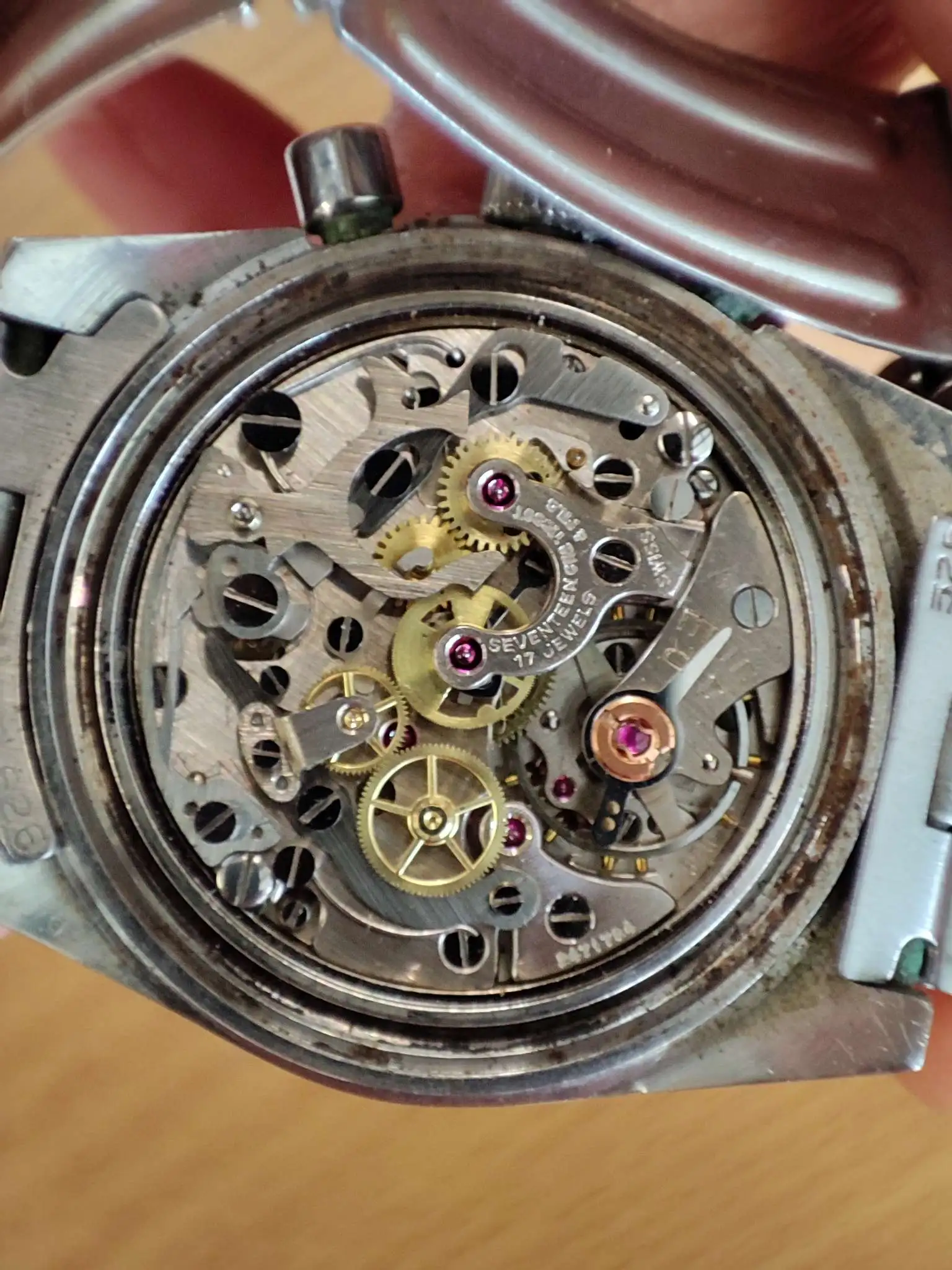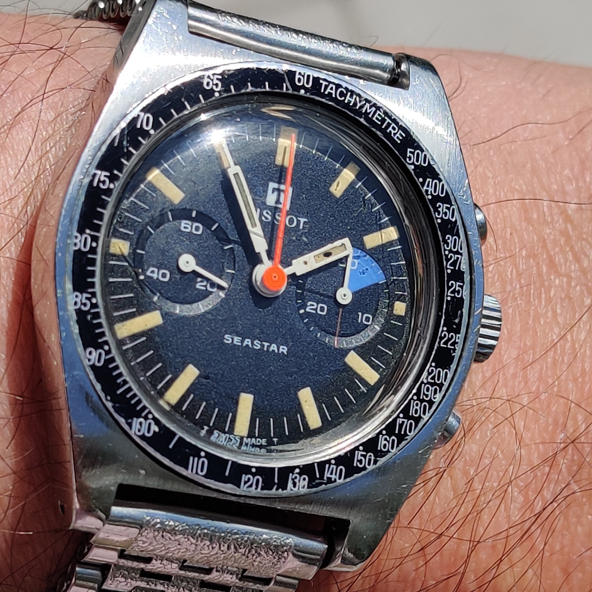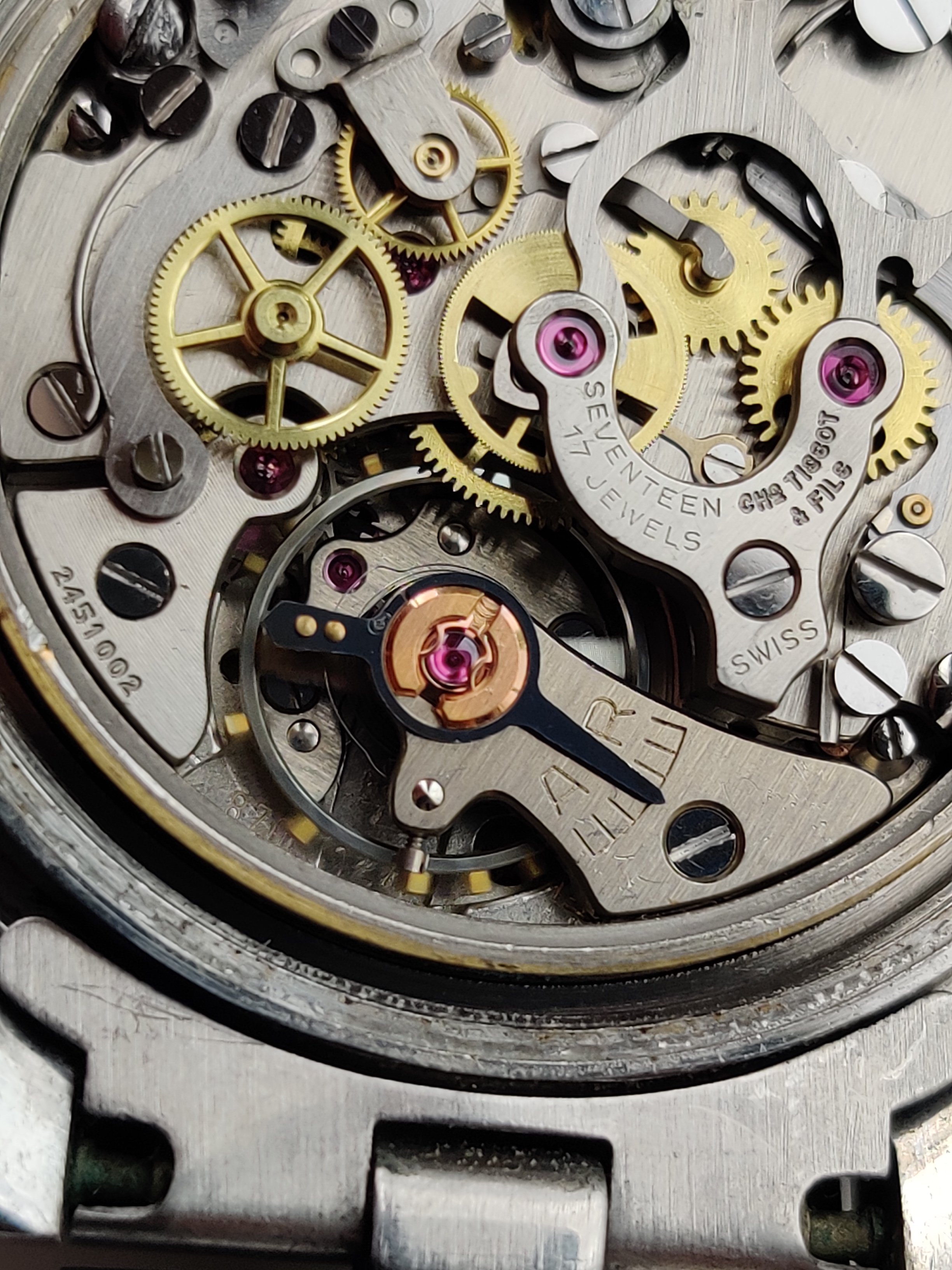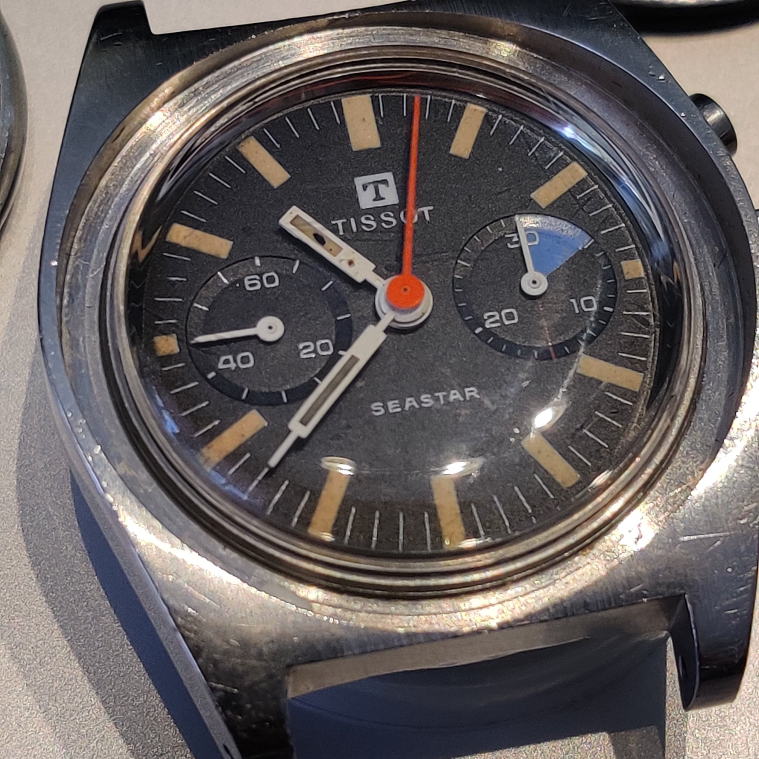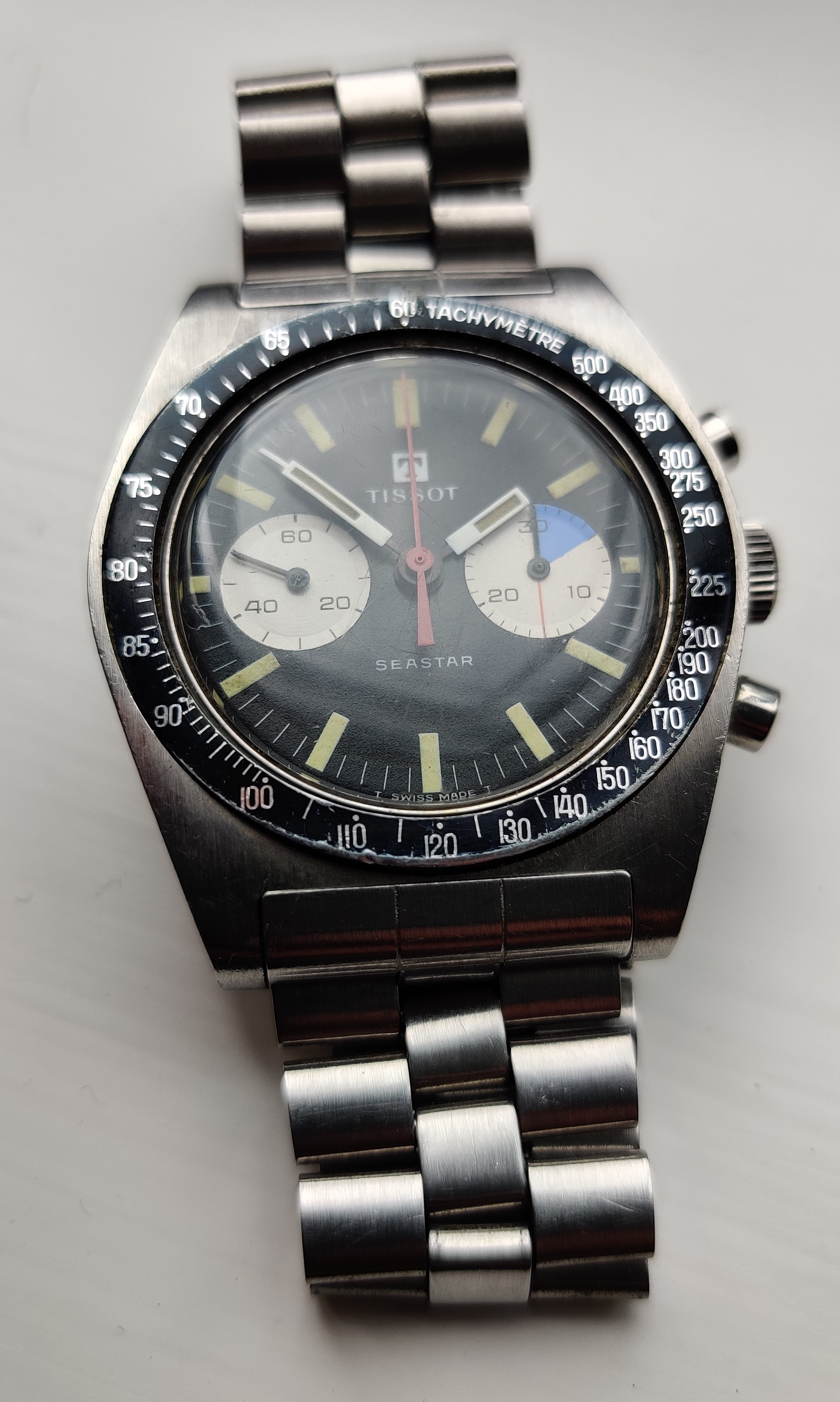 This is now getting silly. Just arrived - this one is about 900 later in the serial number order than the 40508-6X above, but it's a 40508-10X yet also has a 870 / 1277 movement... I've no idea why the difference in ref number... maybe the different chrono hand is original and it's considered an evolution model?