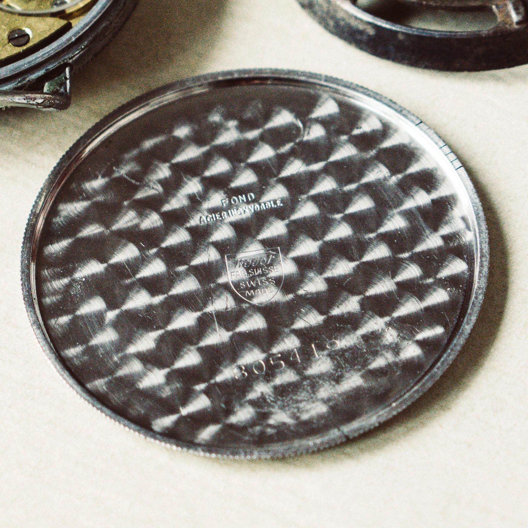 Besides the huge size, the case is chrome plated and has a bezel that turns together with the mineral crystal.