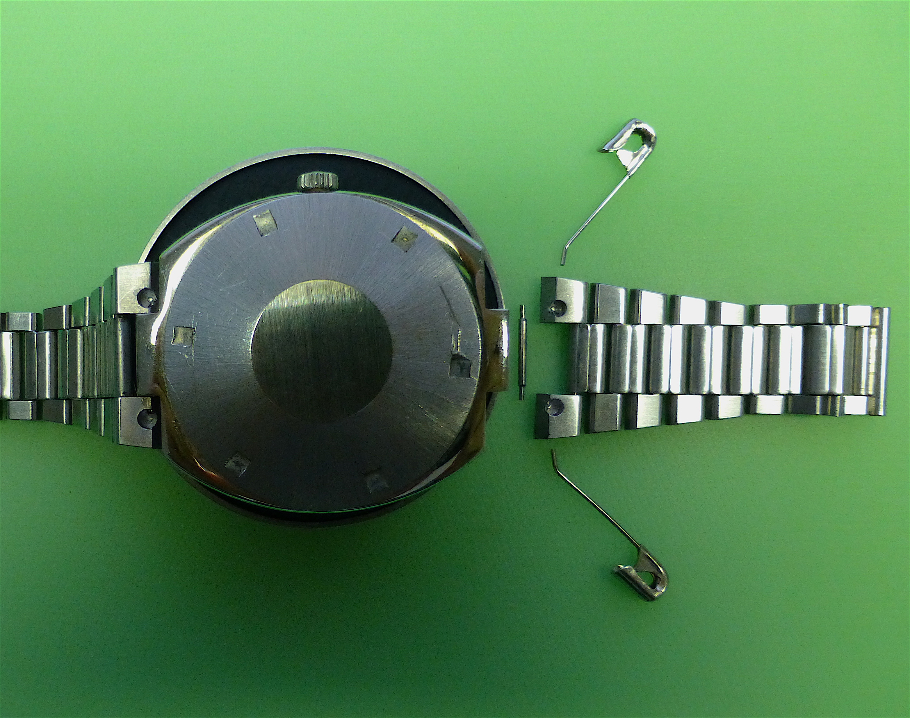 First task was to remove the bracelet (which I had split in two earlier). It was then I found one of the stupidest bracelet to lug designs I have seen for a long time.
