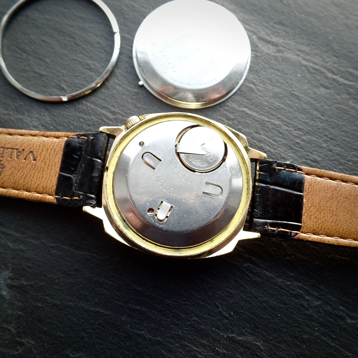 They noted that the Electric watch used an oscillating motor powered by a 1.5 volt hearing aid battery instead of a mainspring.