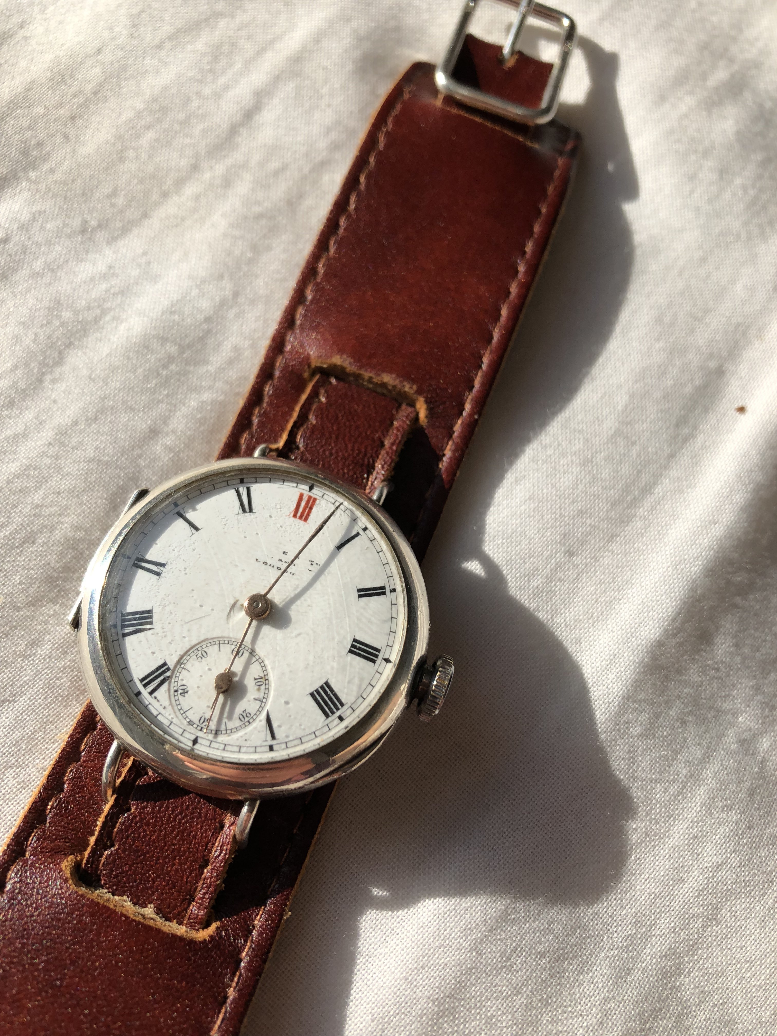 ·hi there, here is my silver trench watch that i’ve had for a few years now. have always wanted to know more about it but cannot find any info. has been a bit of a struggle as the text on the dial has worn off over the years. i know it’s a long shot but if anyone knows anything about these marks it would be very interesting to hear from you. looks like it could’ve once said ‘swiss made’ under the sub second but who knows.