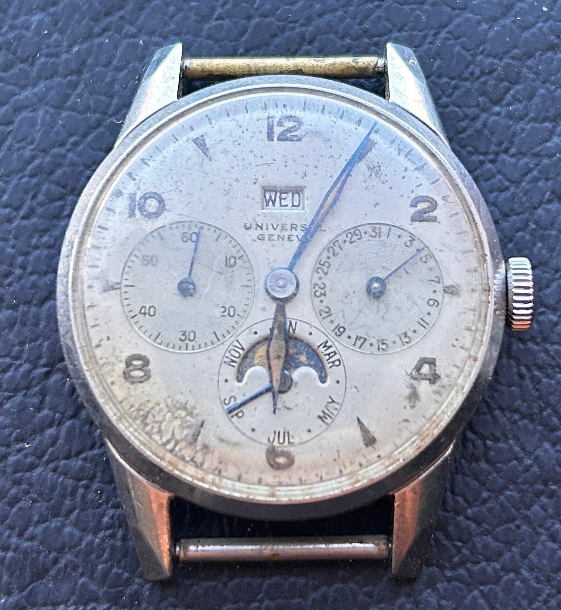 Someone has lumed the numerals along the way and the hands are clearly incorrect, not the proper lozenge diamond style with lume. So the lumed numerals make no sense at all as you can't see the hands in the dark!