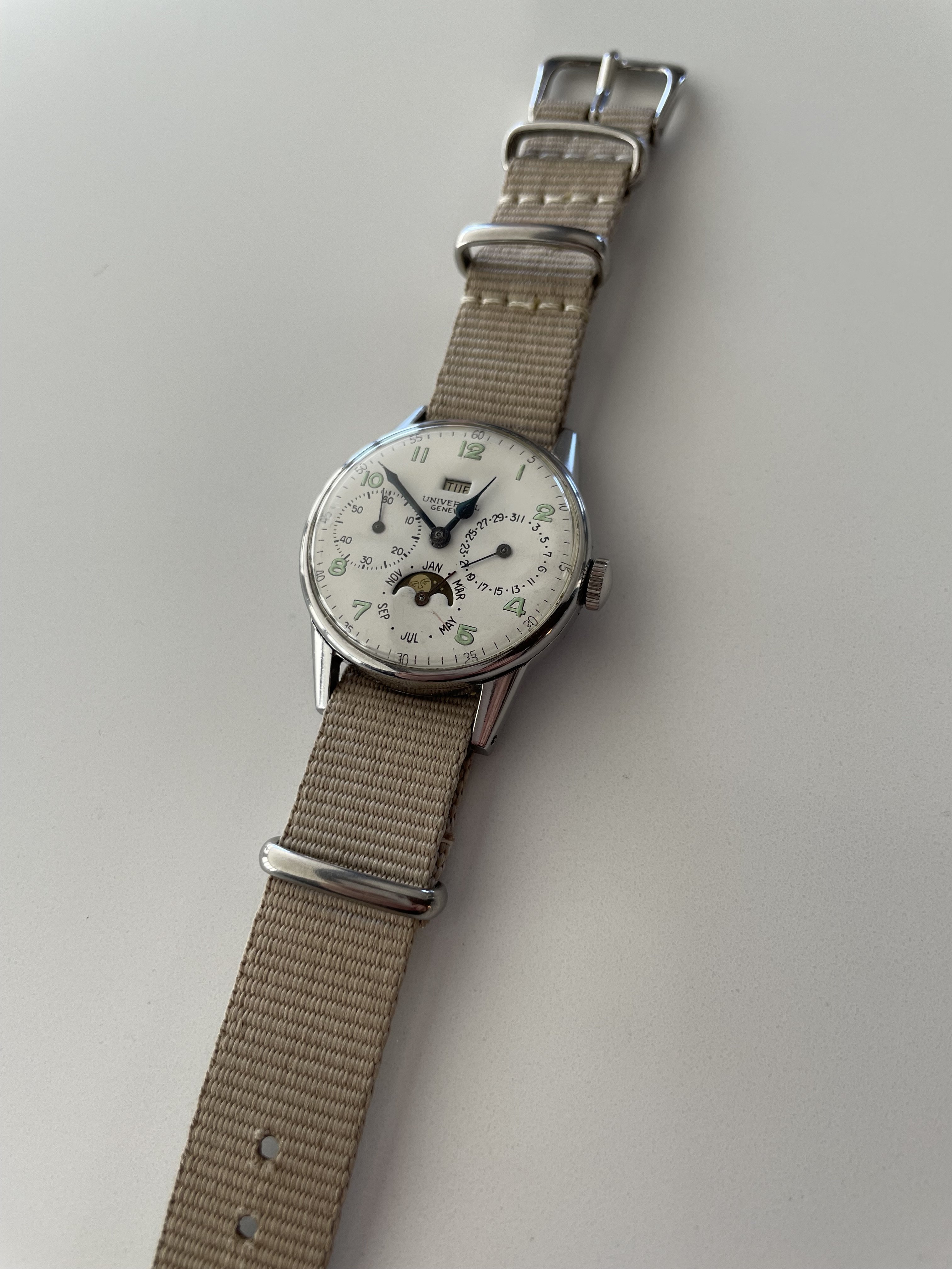 ·Hello, new to the forum. I recently purchased a triple calendar moonphase 21308 caliber 291 with a refinished dial. I know, shame shame, but this watch is exceedingly similar to one owned by a great grandparent that was lost from the family many years ago. So wanted to get it just as a sort of tribute, not to be this perfectly correct heritage piece.