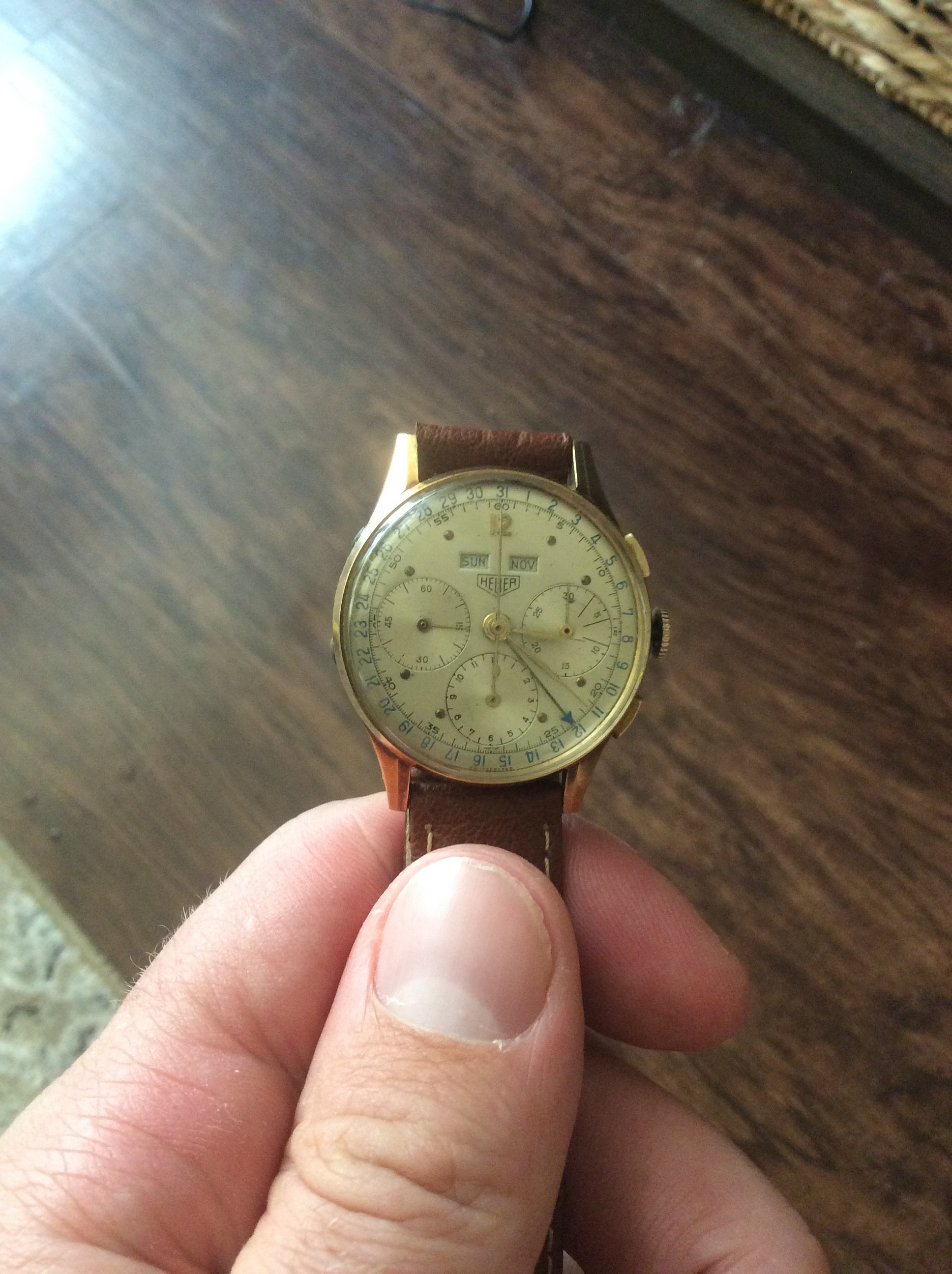 My grandfather passed a few years ago and my grandmother recently gave me one of his old Heuer watches. Photos are attached. I was hoping someone on this forum can identify the model and year of manufacture. I have no intention of selling the watch but I would like to know an approximate value as well. Thanks