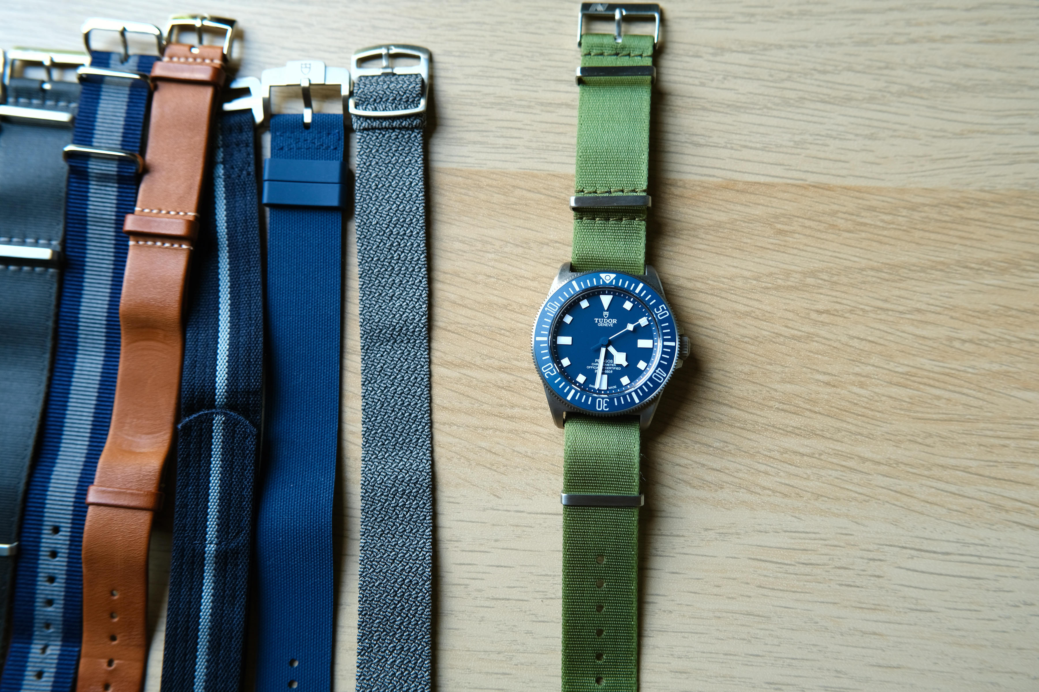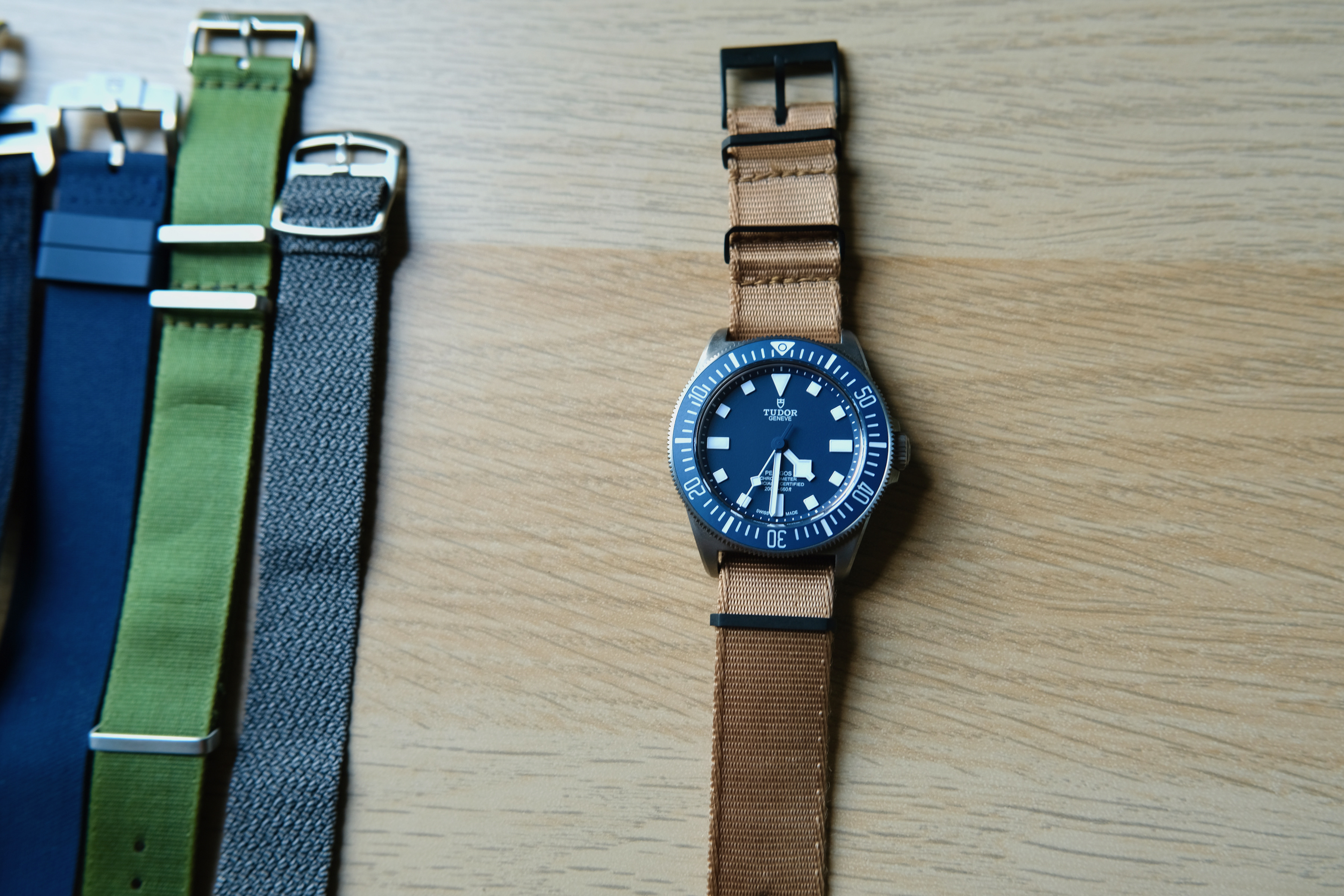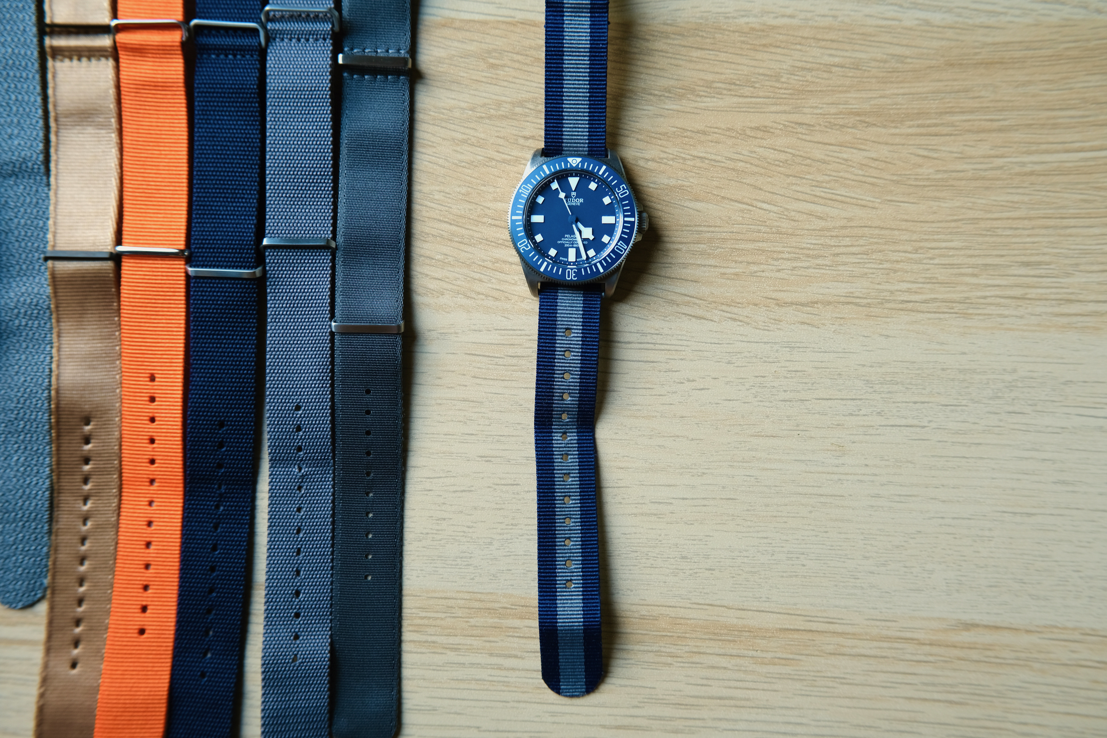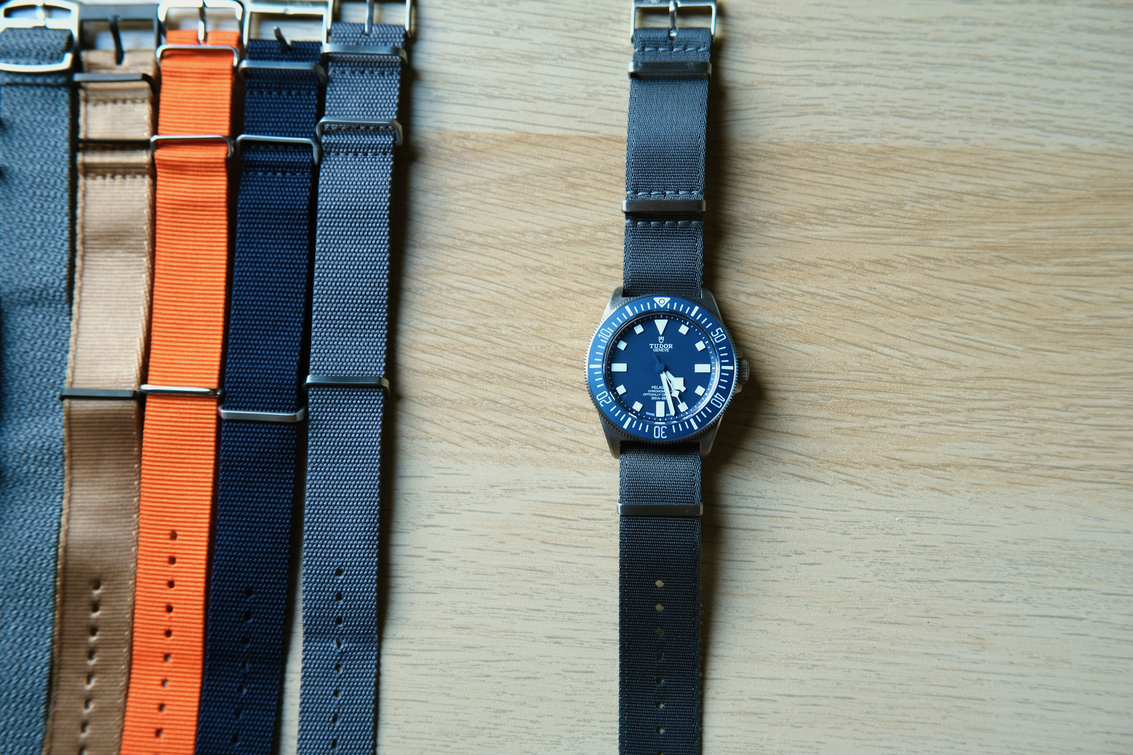 In summary, like most blue-dialed/bezeled watches, the FXD fails to achieve the same strap versatility as say a Speedmaster or Explorer, but it does look good on a variety of straps. And this is good, because the supplied Velcro strap looks and feels cheap, while the rubber NATO strap bows out at the lugs and looks sloppy.
