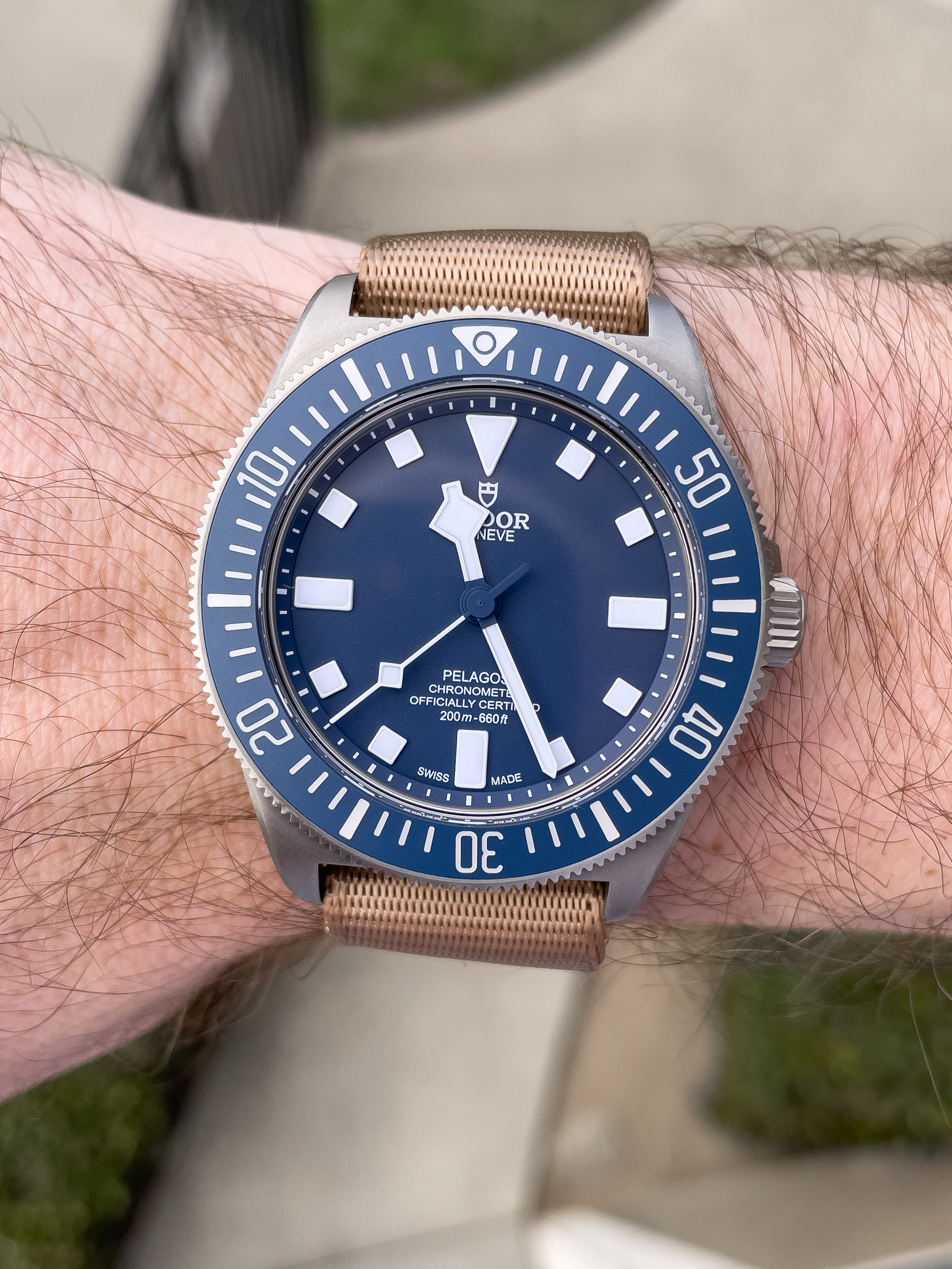 ·Oops, missed a picture of it on a tan NATO strap. It would probably look better with brushed steel hardware, but overall, I think this looks acceptable.