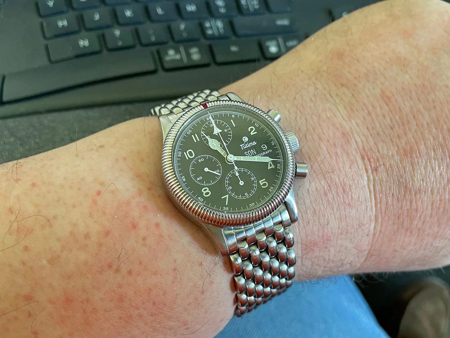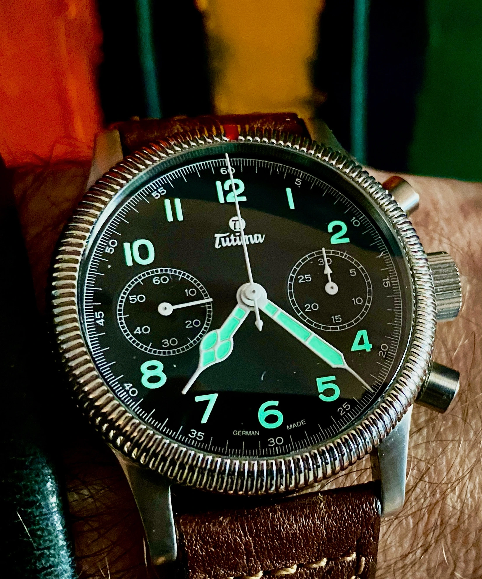 It is years later, when the watch bug bit me hard, that I finally started broadening my horizons. I had developed a passion for a specific watch movement and therefore started collecting Lemania 5100 chronographs. At one point I had 26 of them in my collection, and it is this way that I stumbled upon one of Tutima's most iconic models, their Military Chronograph. This watch had been selected in 1985 as the official issued watch for Luftwaffe pilots, so this was the real deal in my book. So I naturally procured myself one.