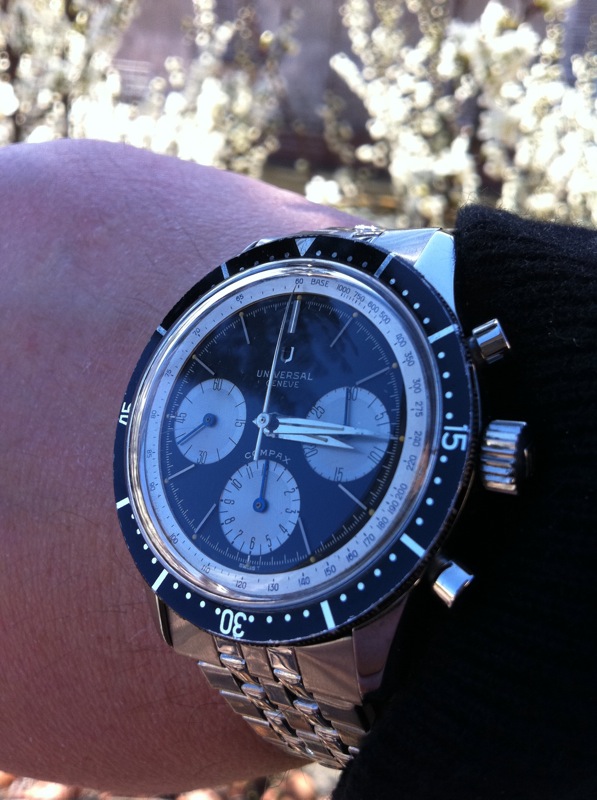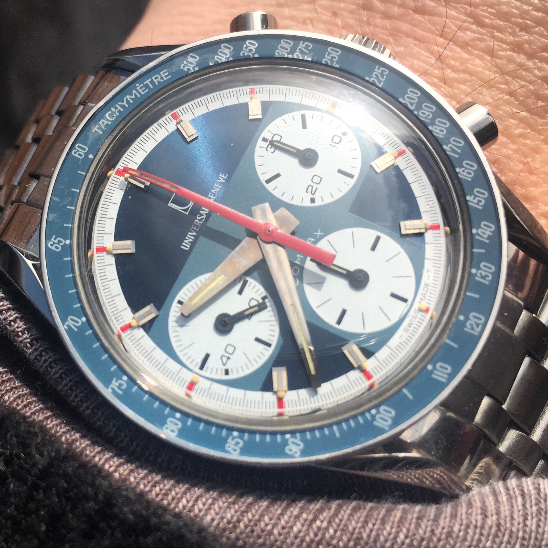 I picked up my first UG today, a "blue" exotic Compax and am very very pleased with it. It's a bit smaller than I'd usually wear but the bracelet makes it wear larger than the strap so it still feels great. I love metallic dials and the contrast between a different shade of matt blue just adds to the beauty. I doubt it will be my last UG, eyes on some other Compax, Tri Compax and those lovely looking big eyes!