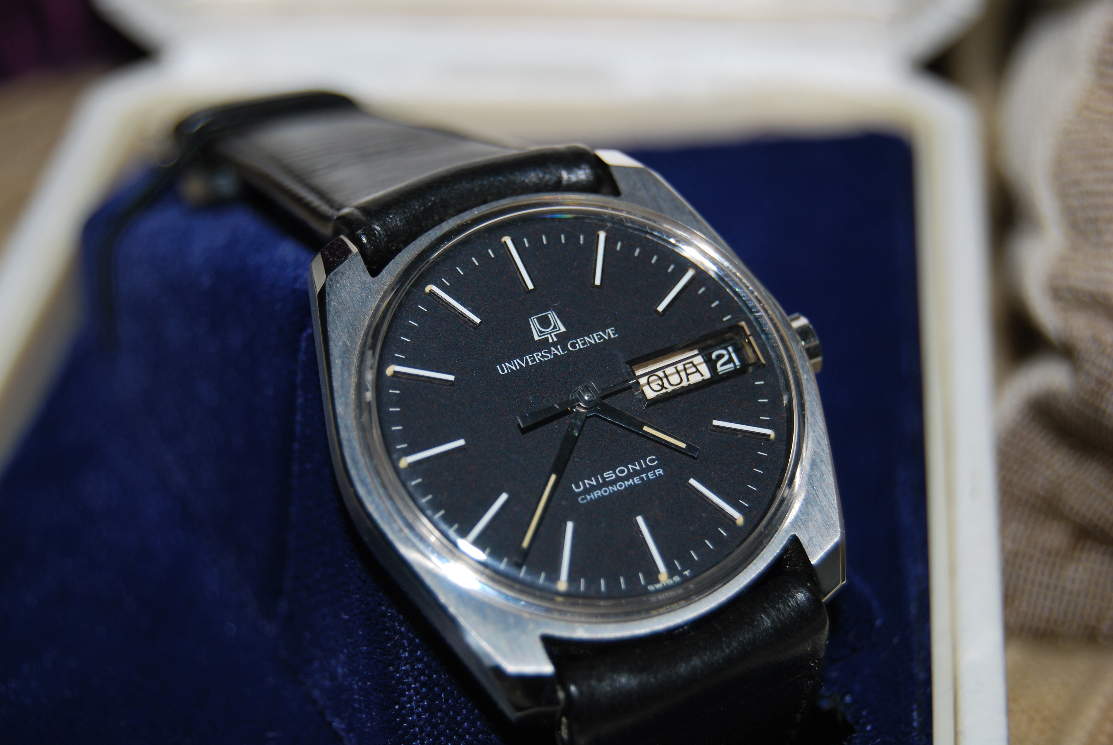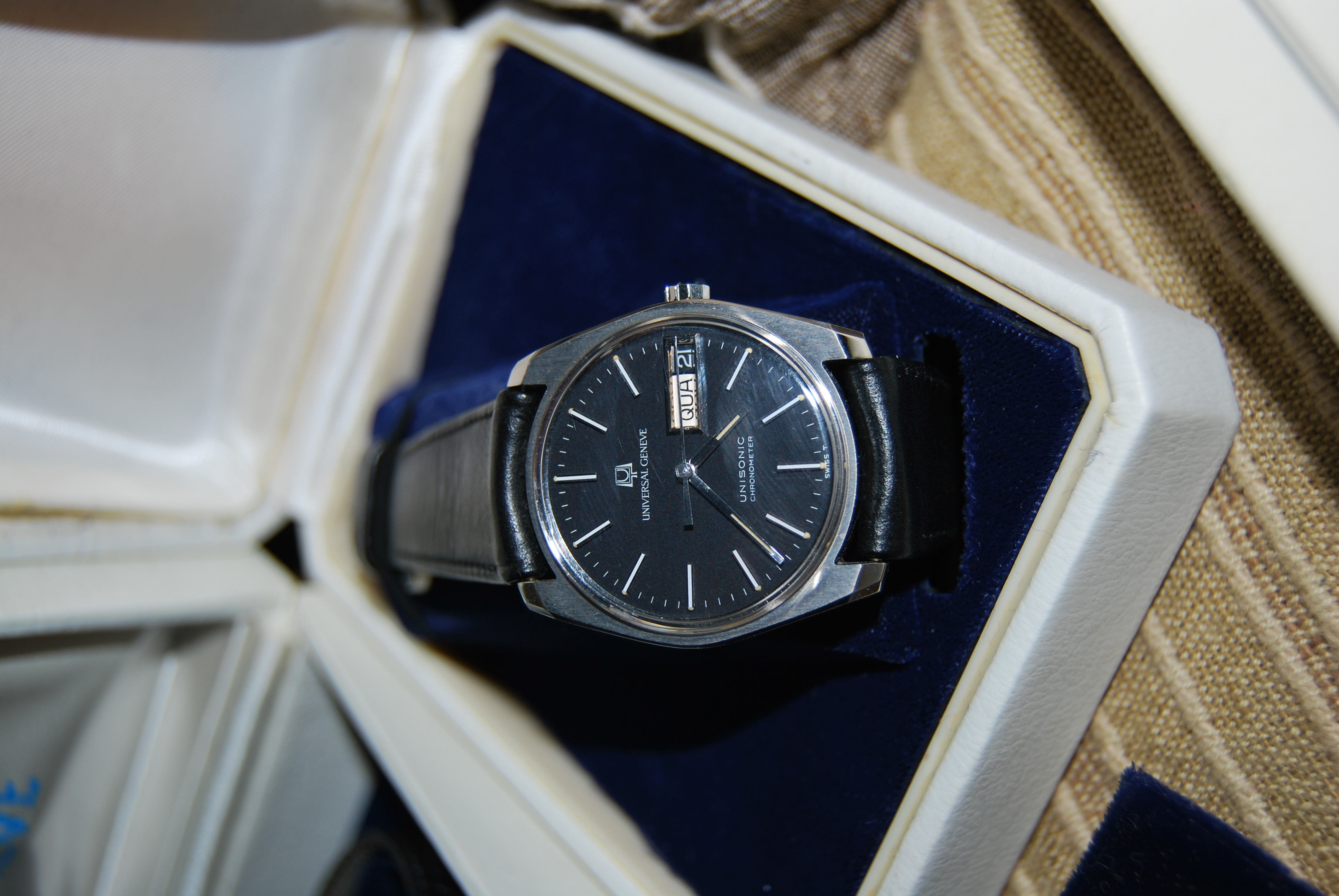 is from 1979, its in the original condition. Its the first i see (and the group) in this conditions, i saw many used in a very good condition but none in NOS, the movement is quartz, the case is 32mm, steel, plexiglass.