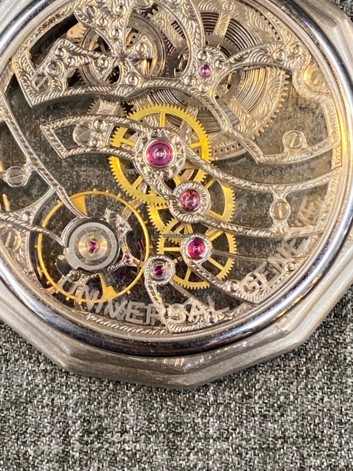 ··not the sharpest pencil in the ΩF drawerBetter pics of the platina one: https://www.chrono24.nl/universalge...latinum-skeleton-pocket-watch--id21871110.htm Asking a generous EUR 12k