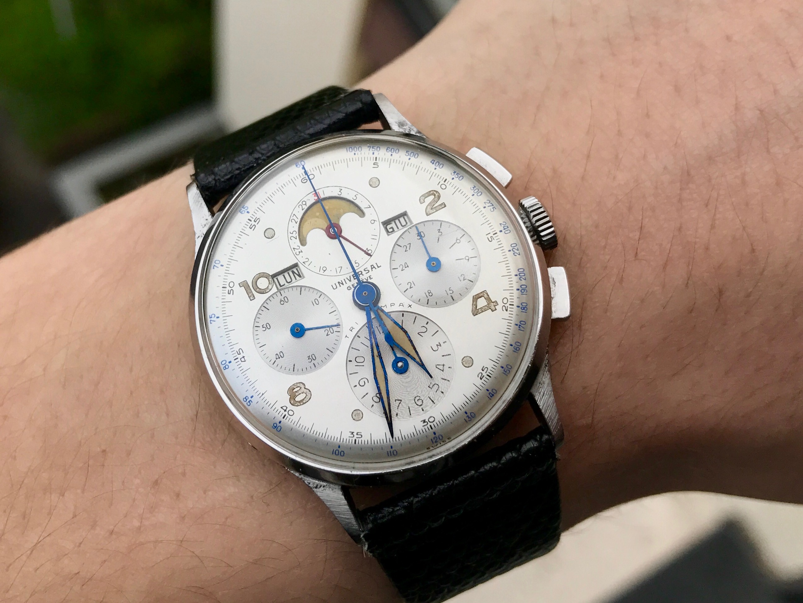 Re Lumed sword hands with no corresponding lume on dial. Round 3鈥檚. Seconds, date and minute subs are reprinted. Outer track is reprinted. These are just a few of the faults. The hands, case and movement are worth something but the dial screws the pooch on value. I dismissed this watch in the 5 seconds it took to look at it.