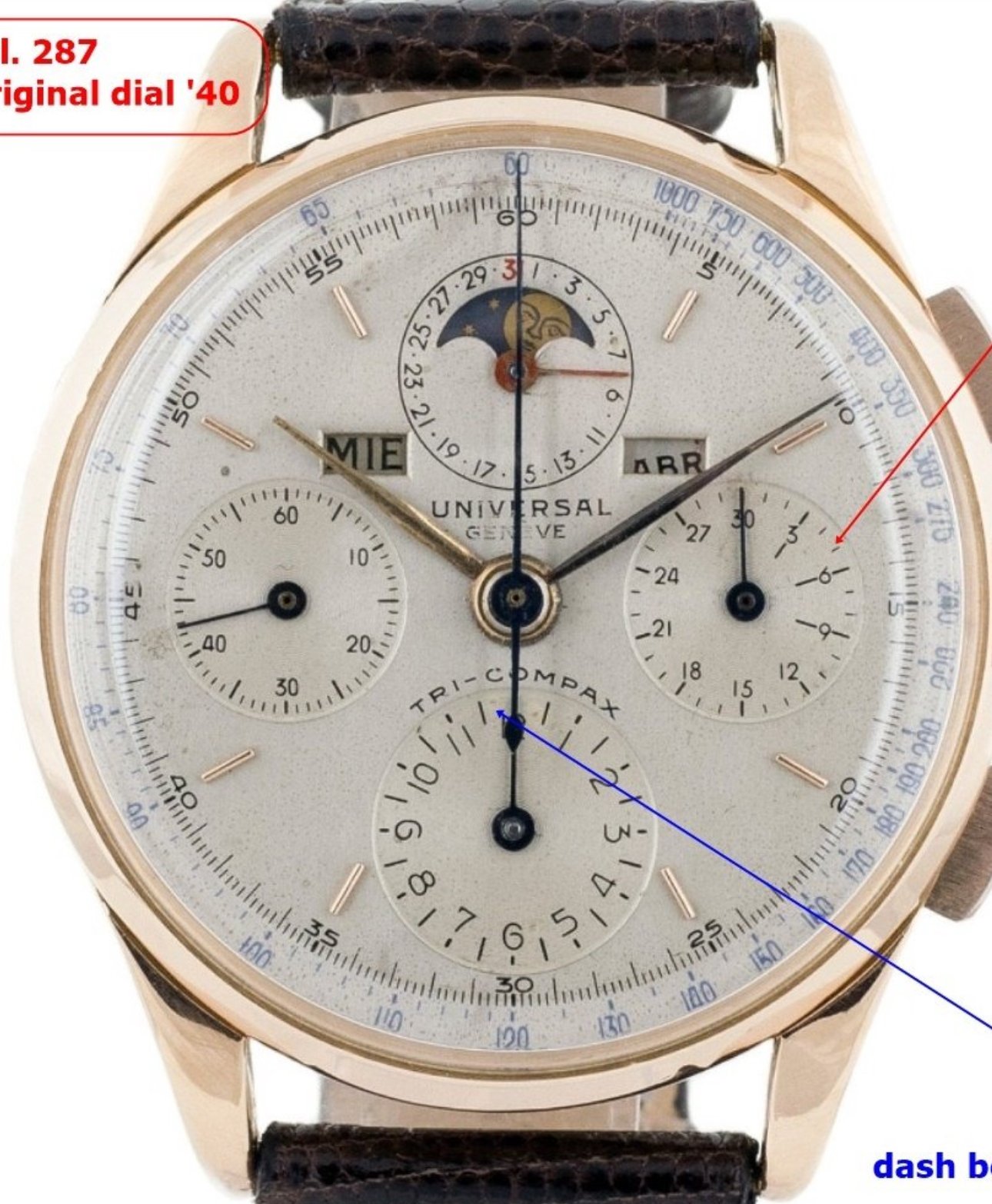 I’ve done my homework’s. Here are the details telling me that perhaps this dial is older ou service : black not blue tachymètre, 31 black not red, no circle around subdate dial, subdate dial not centered (21 goes over date guichet), minute circle not centered (10 non in front of the marker)