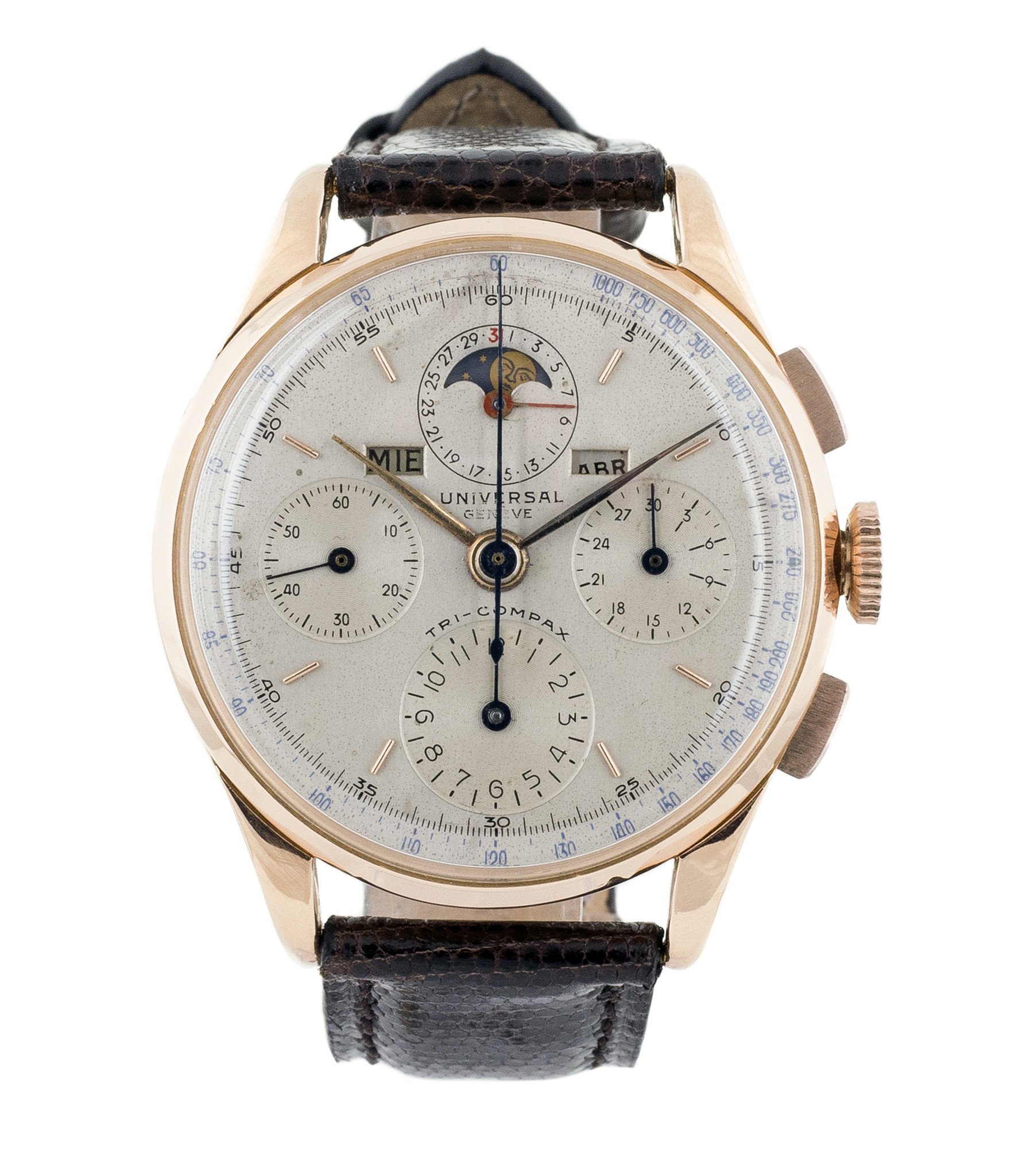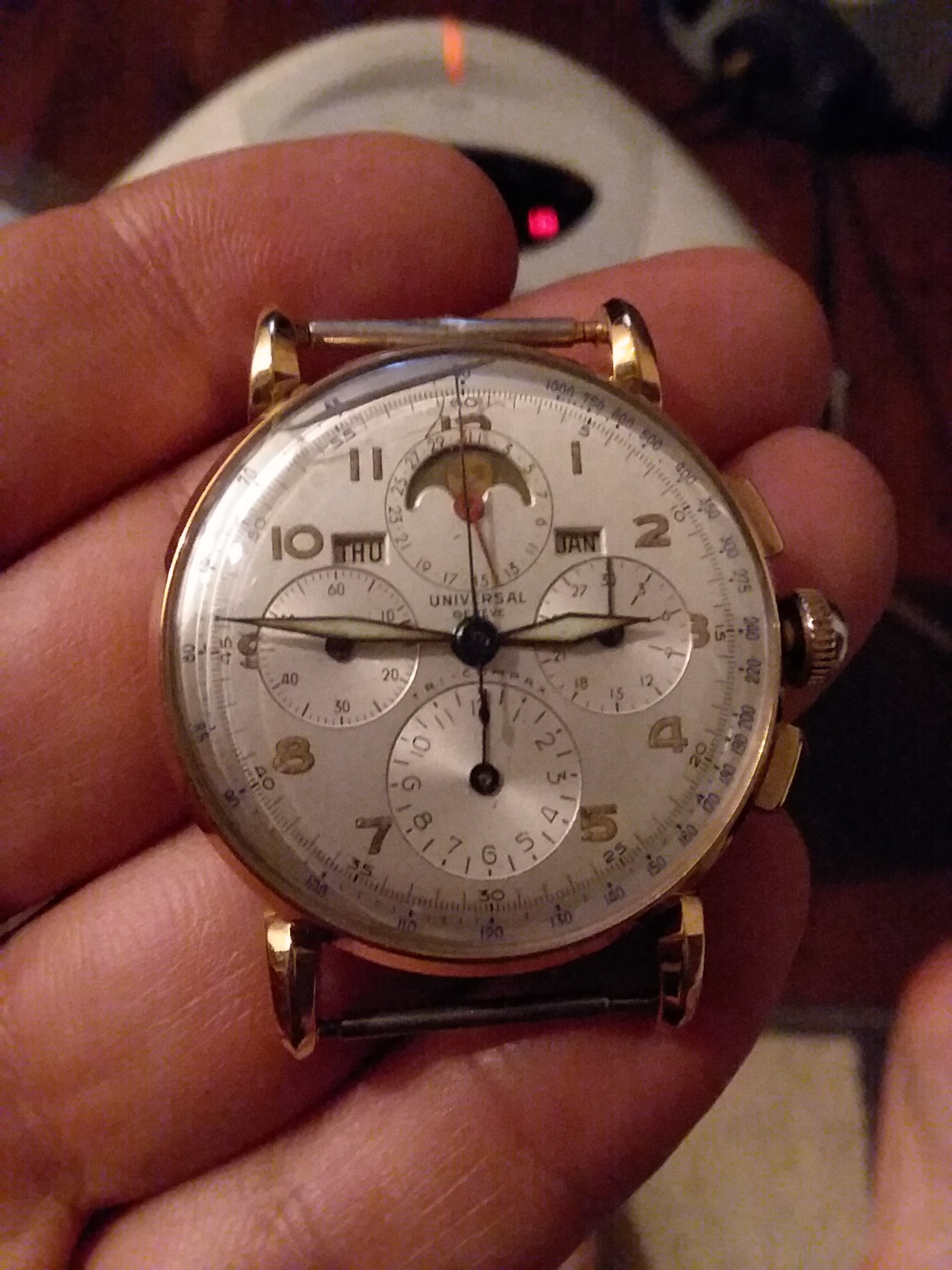 But straight 6s and 9s per se are not indication of a reprinted or service dial but indeed existed totally original dials from the 40s with straight 6s and 9s and the dash between Tri and Compax, right?).