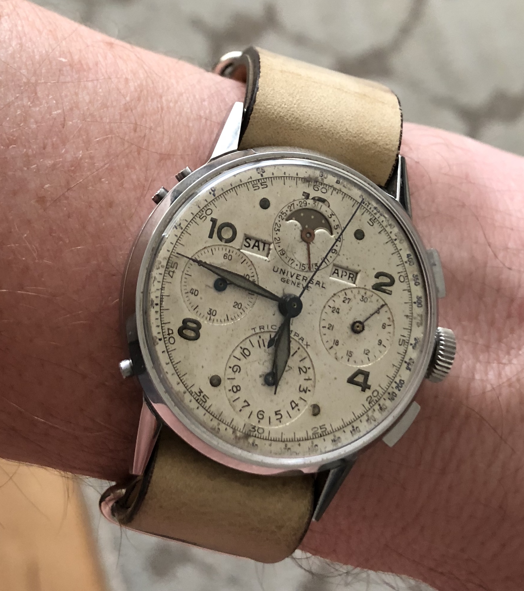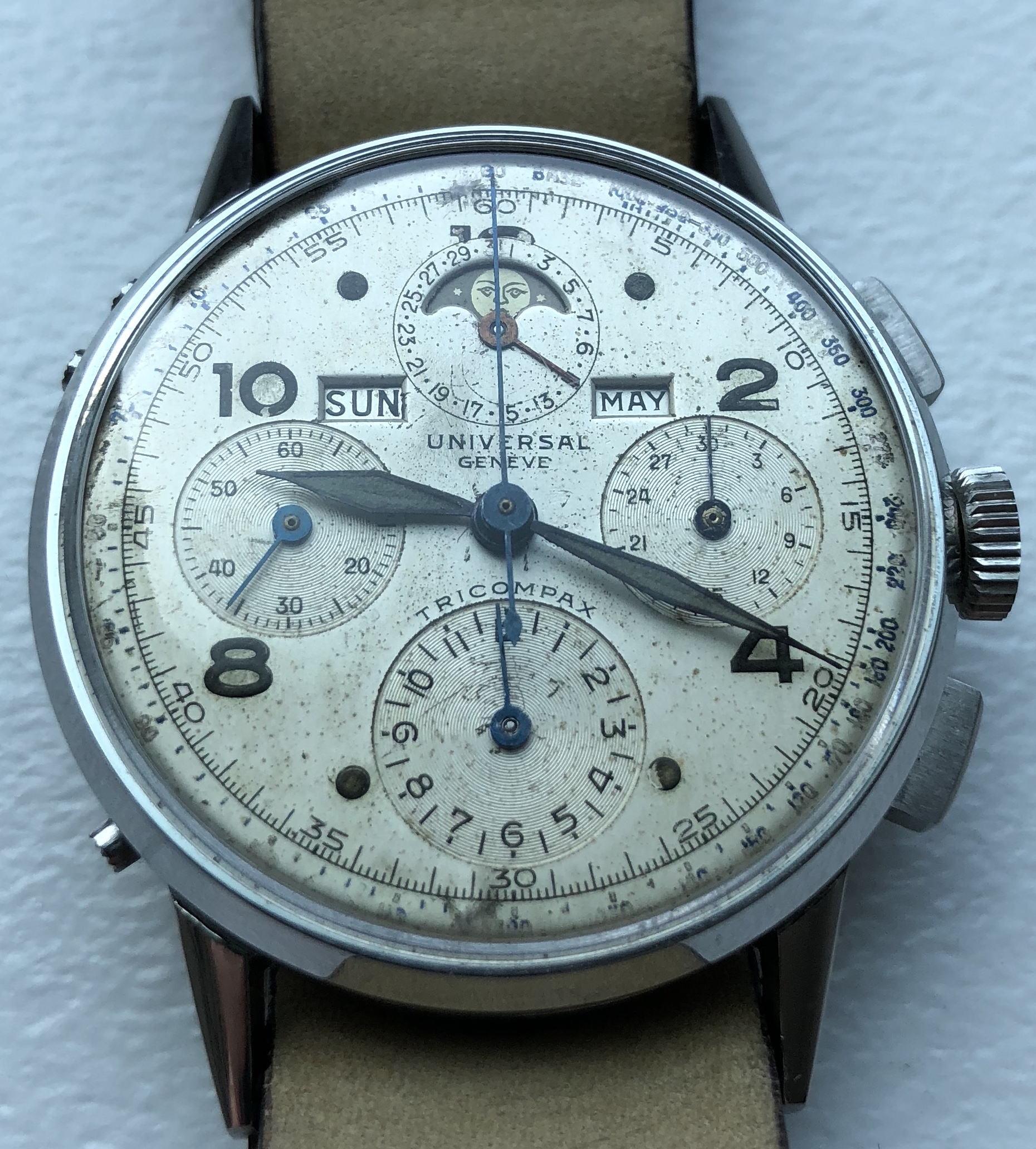 This dial looks NOS, great redial ? Let's hear what the experts think ? If it is a redial, it is one of the best I have ever seen ! With the popularity of UG and the increasing value, people with ulterior motives will keep creating these anomalies like this to try to deceive ? I woud like to call it original, but I have some doubt as well now ! It would look amazing on a steel Tri-compax !