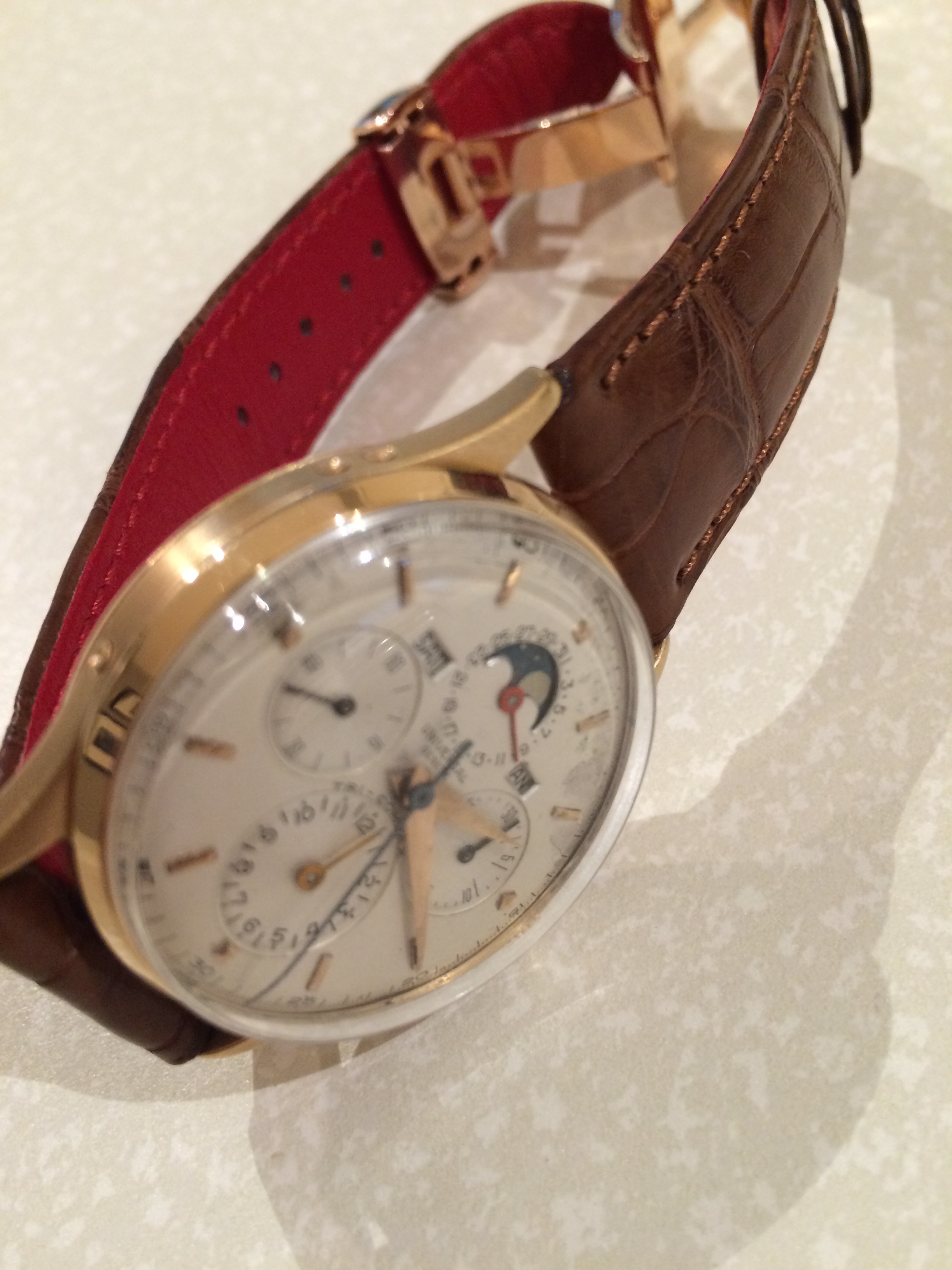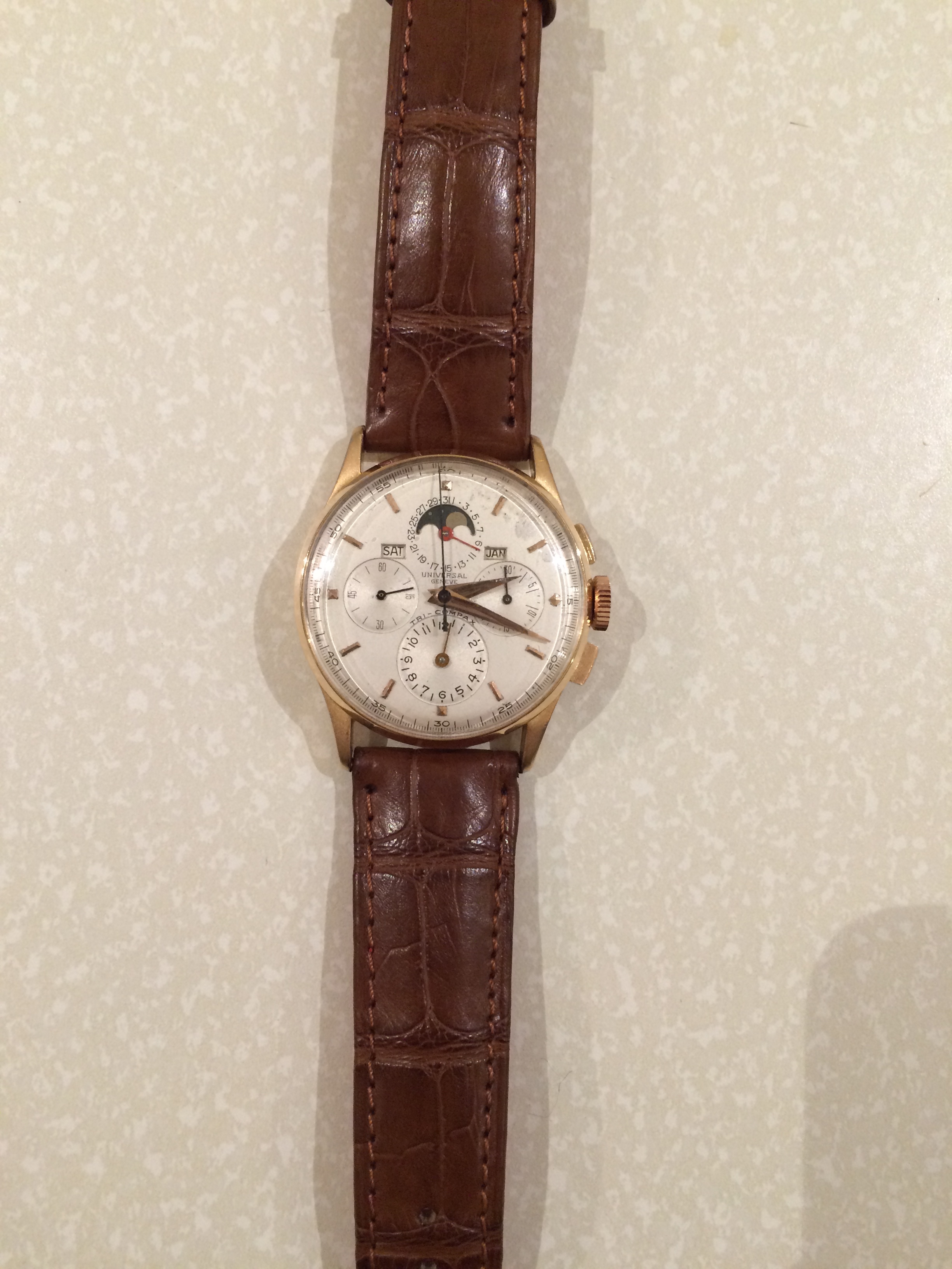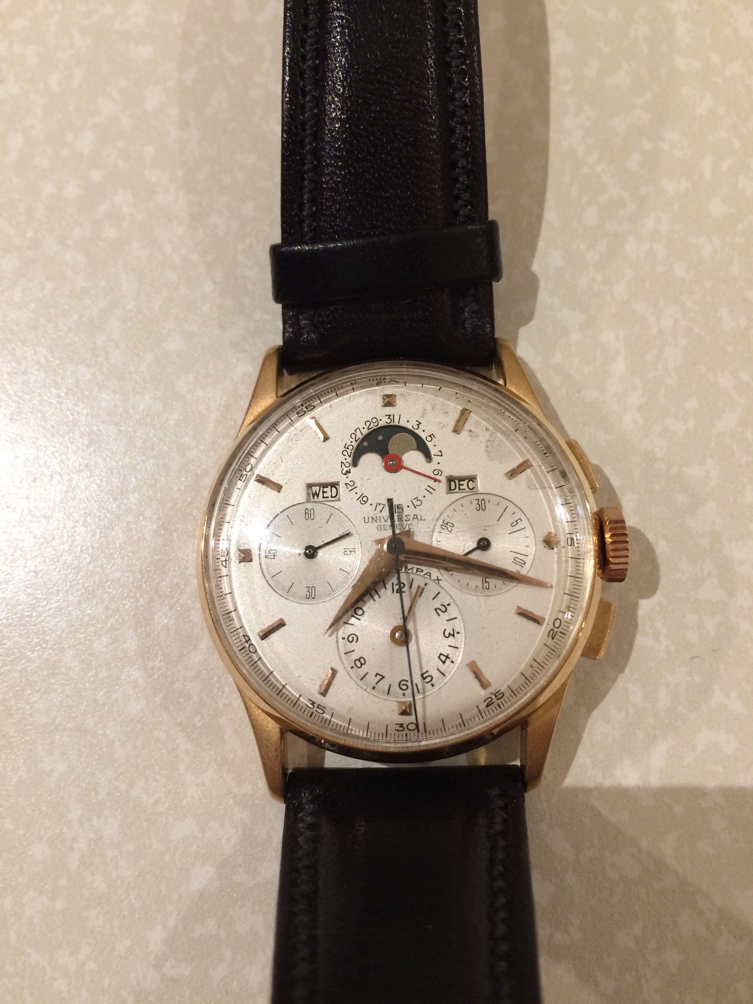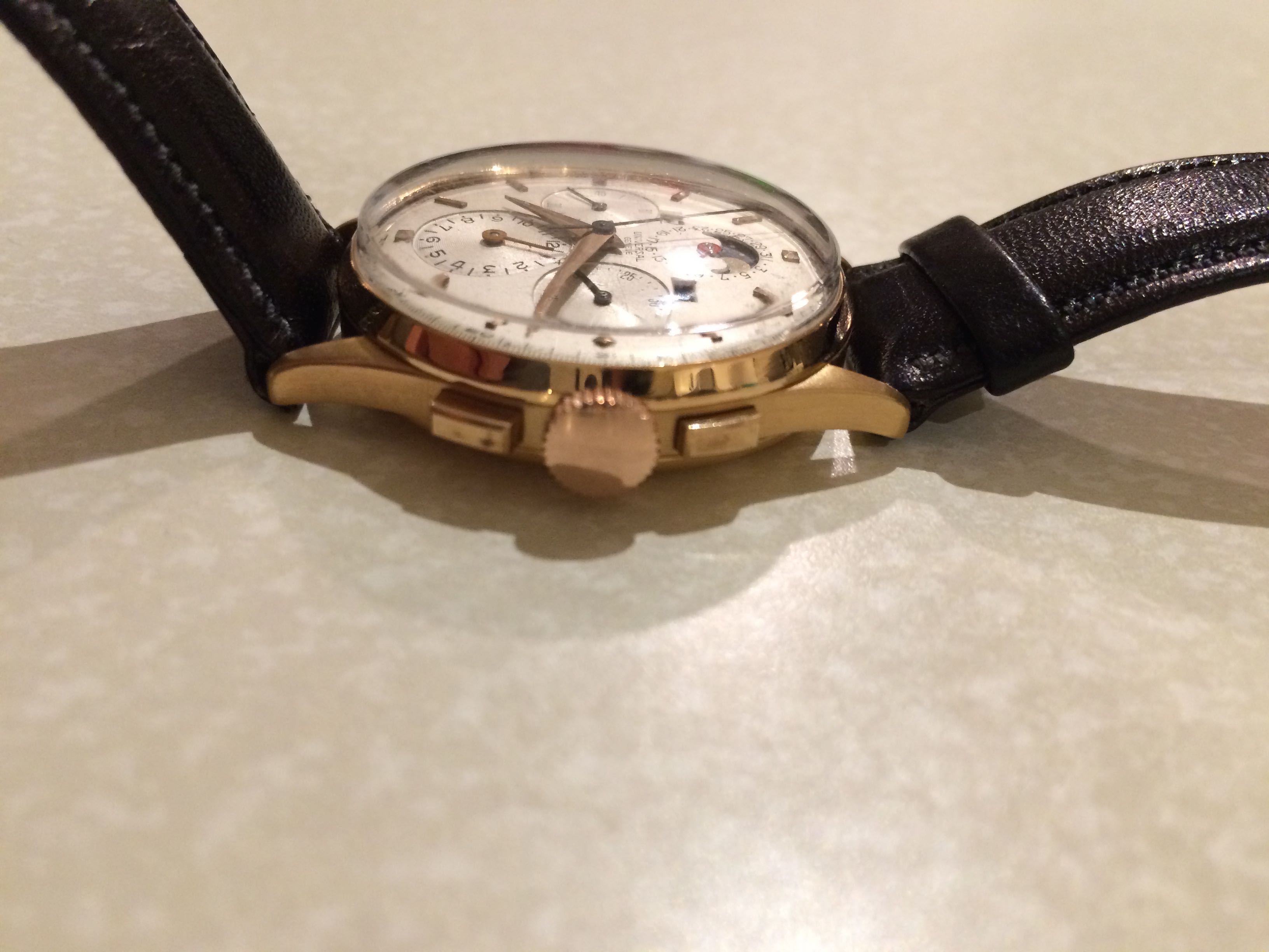 ·I finally had my 18k rose gold tricompax repaired by Blake at ScotchWatch in AZ. I'd recommend him; he was relatively quick, and the watch is working great. Thanks to everyone in the forum who gave me advice on both the watch repair and the bracelet recommendations. I do really enjoy wearing the same watch as my great-grandfather and hope to be able to pass onto my son in the future.