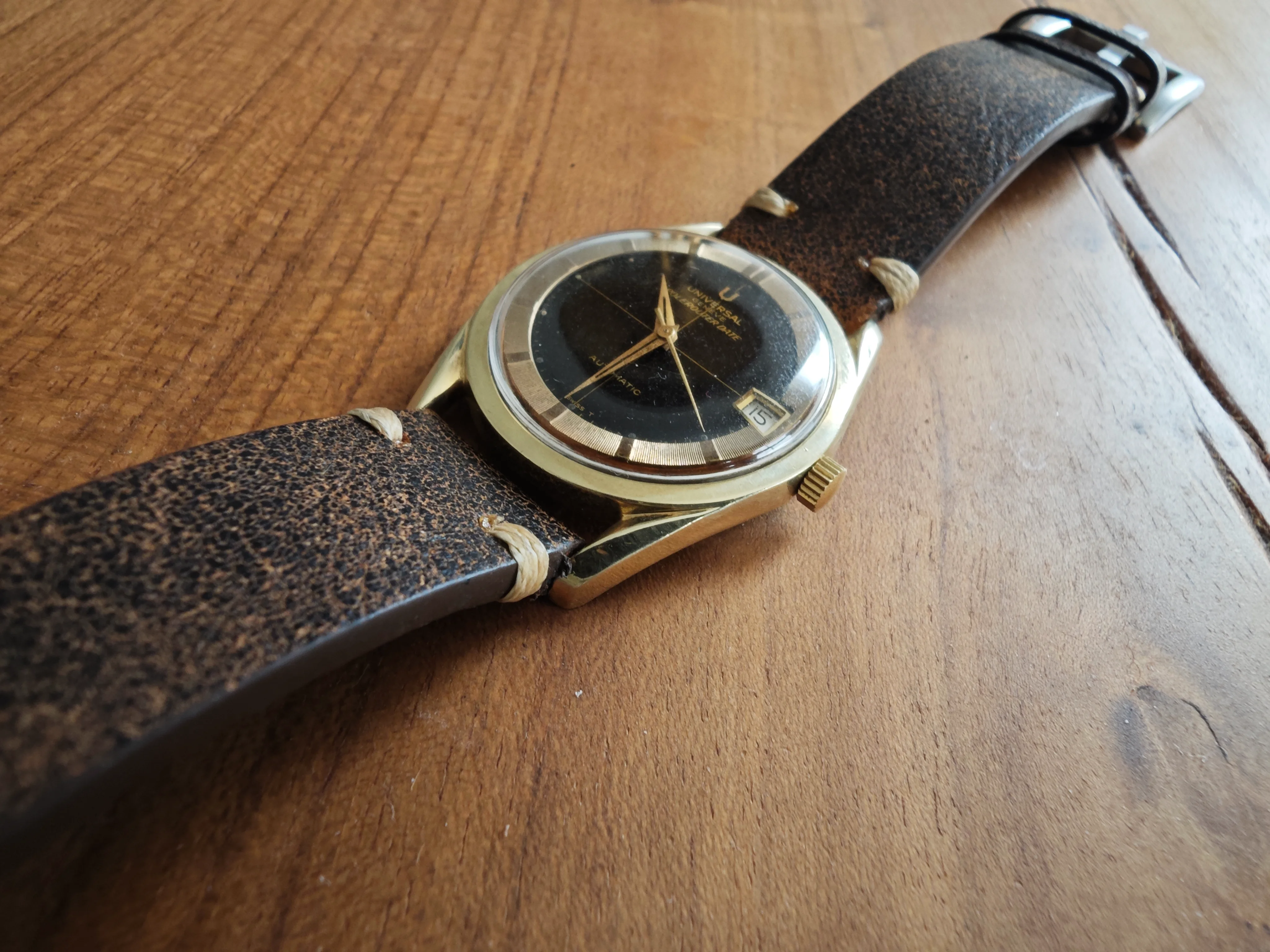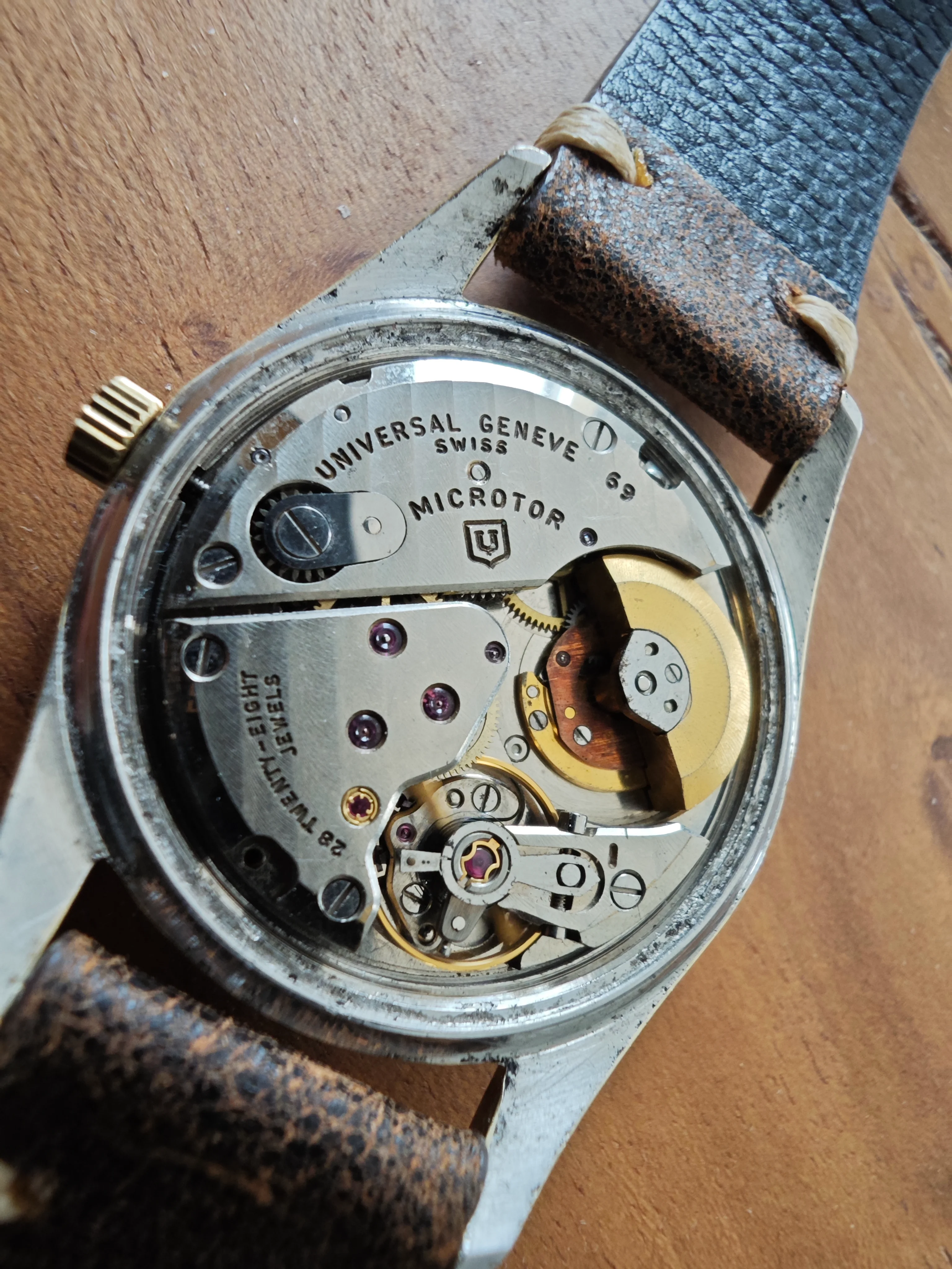 les références sous le cache arrière correspondent chez Universal à un cadran qui n’est pas celui que j’ai sur cette montre et même chose pour la mécanique qui devrait être un 215 OU 218 , sachant qu’il est équipé d’un 69 pourtant il est indiqué que les mouvements 69 équipaient certaines polerouter date