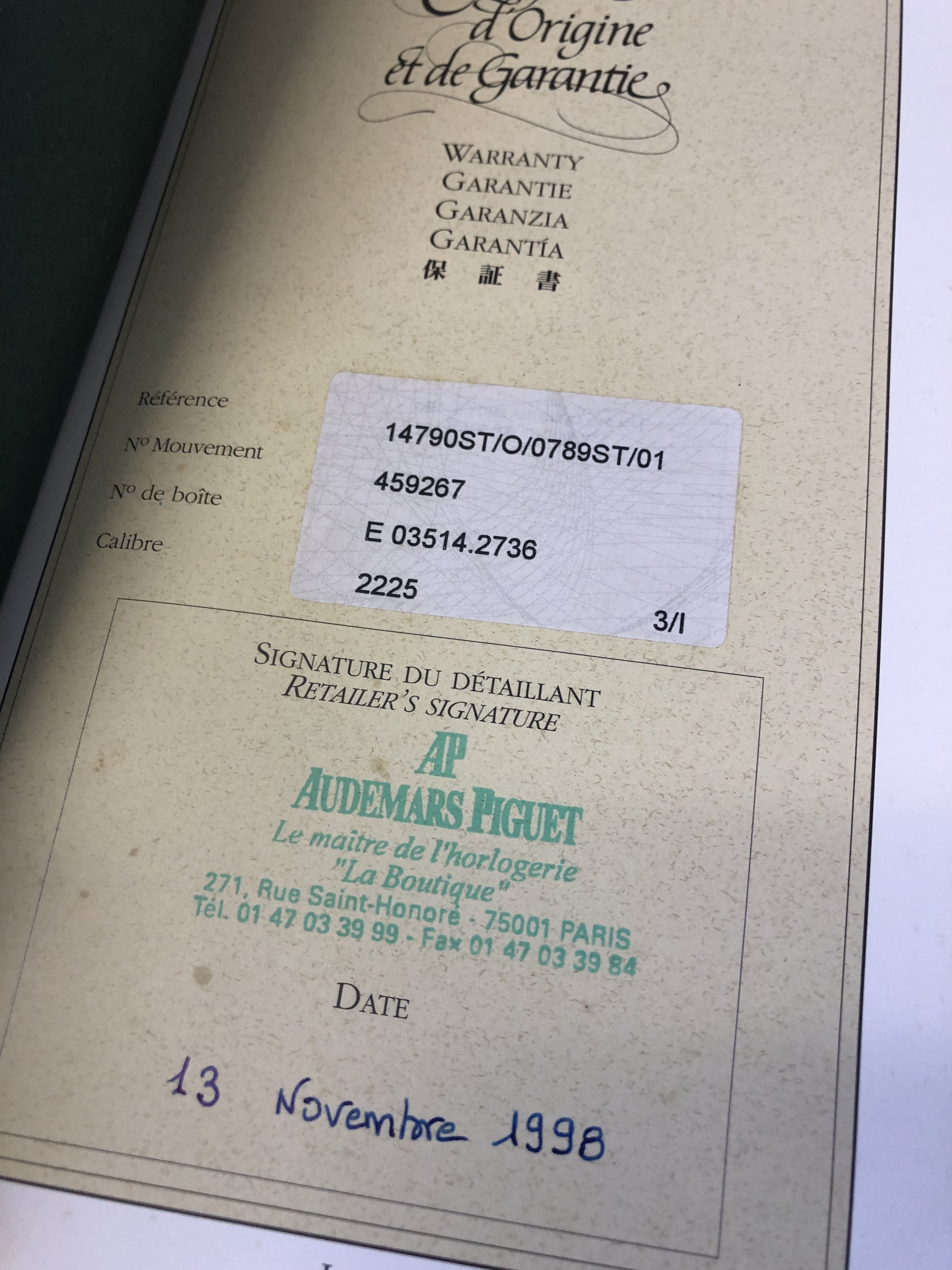 A phone call and some texts...see a pattern here...a 1998 1 owner 14790ST arrived. Boxes, booklet with stamp from Paris AP Boutique, and a fresh 2018 AP service. It been polished by AP, but is still sharp.