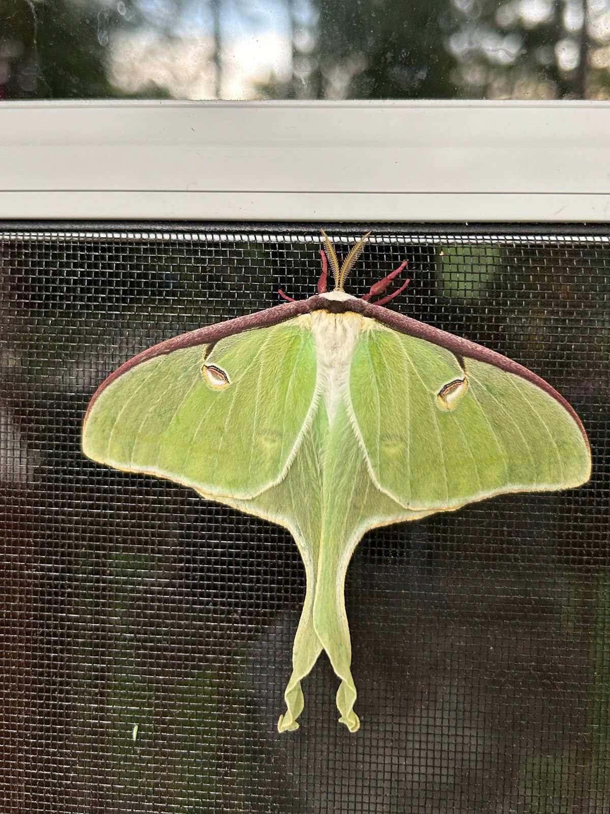 I found this Luna Moth on my front door this morning. Apparently rarely seen because of their short lifespan (7-10 days) and they are mostly nocturnal.