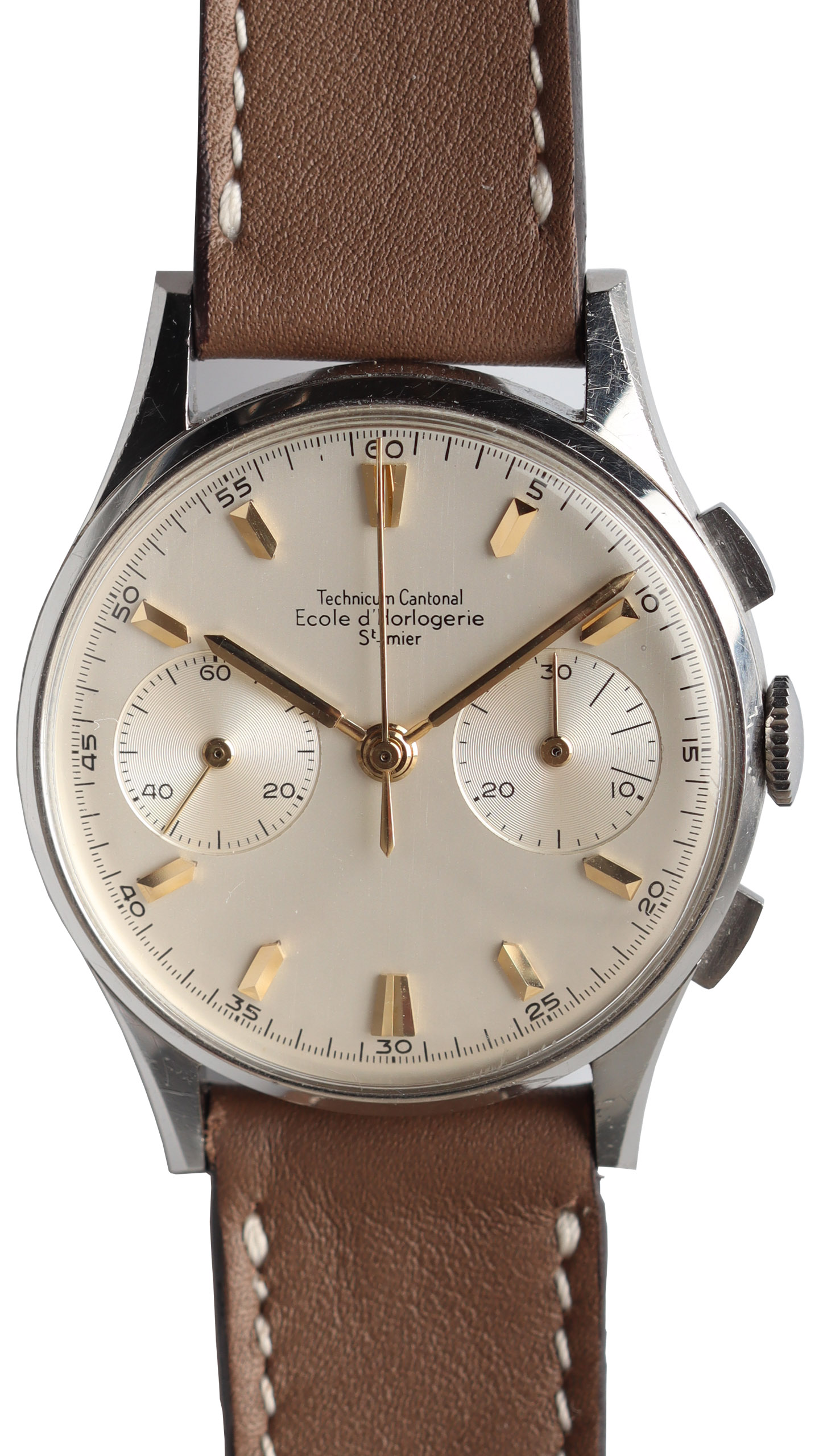 This is a Montre Ecole Technicum Cantonal Ecole d’Horlogerie St’ Imier School Watch. This is a very nice graduating watch or Montreal École from the watchmaking school of Saint-Imier (called Technicum cantonal of Saint-Imier from 1960 to 1975). Nowadays this school still exists as part of the The Arc Engineering High School , the result of the merger of the engineering schools of Locle (EICN) and St-Imier (EIS).