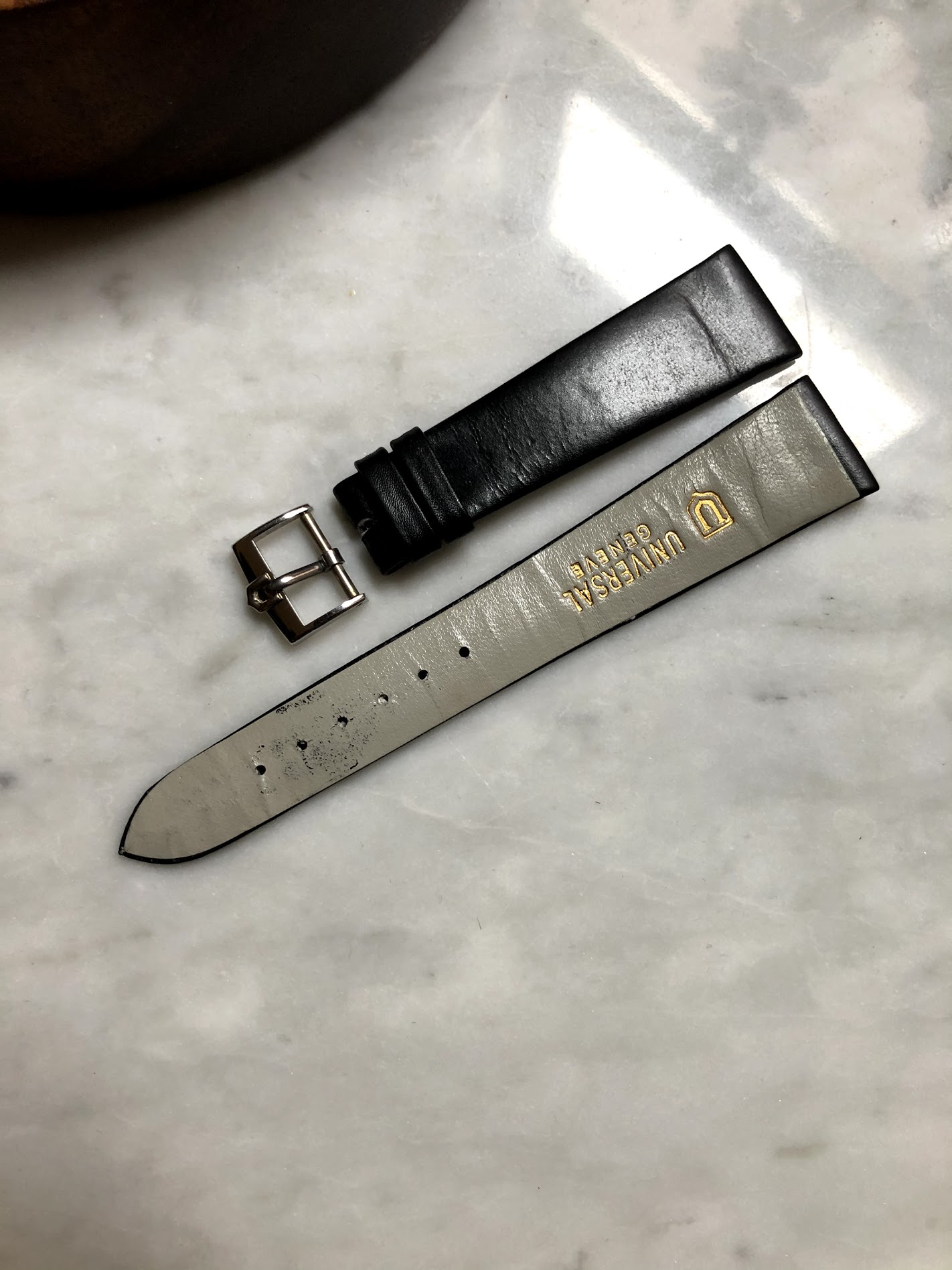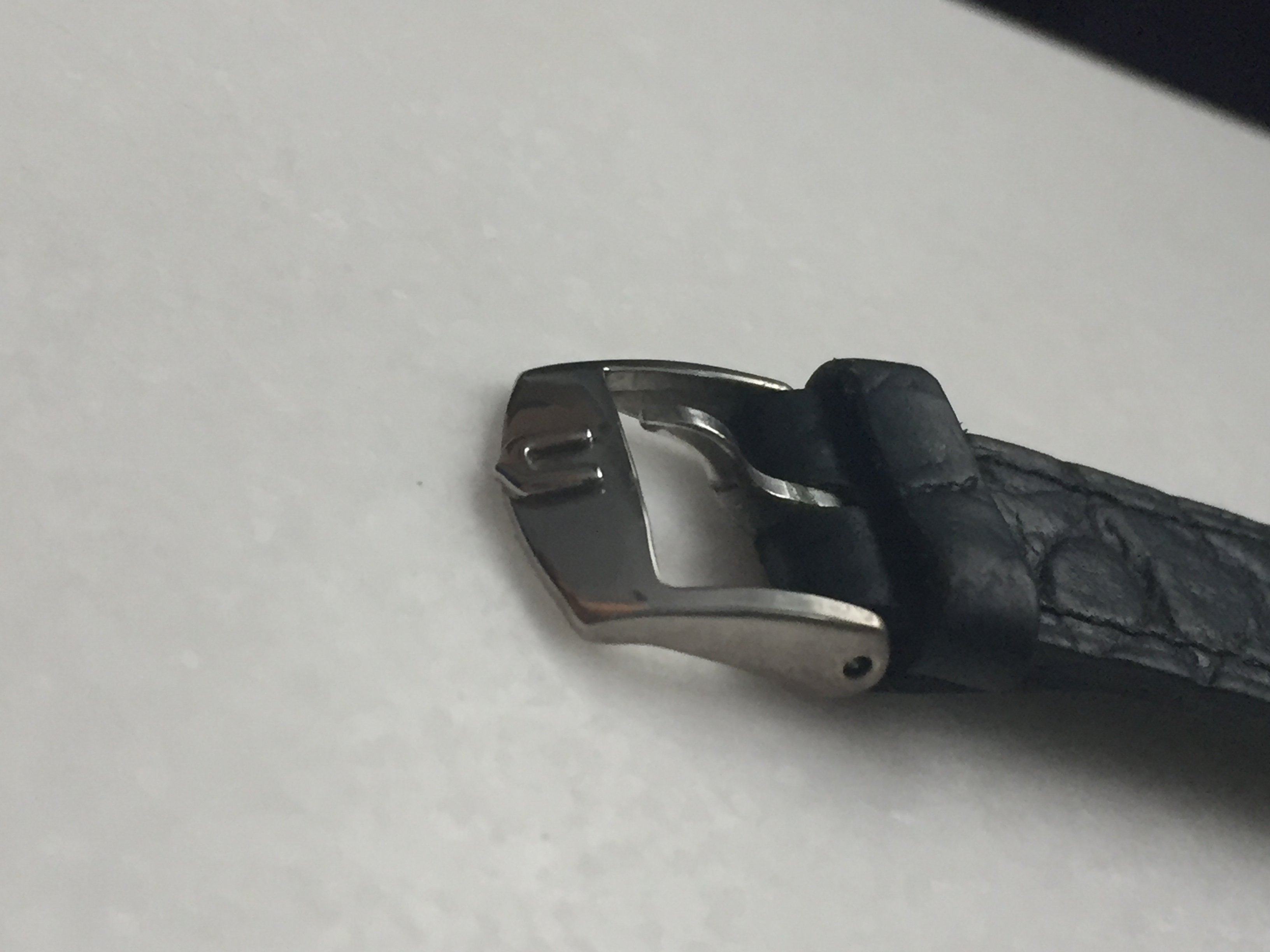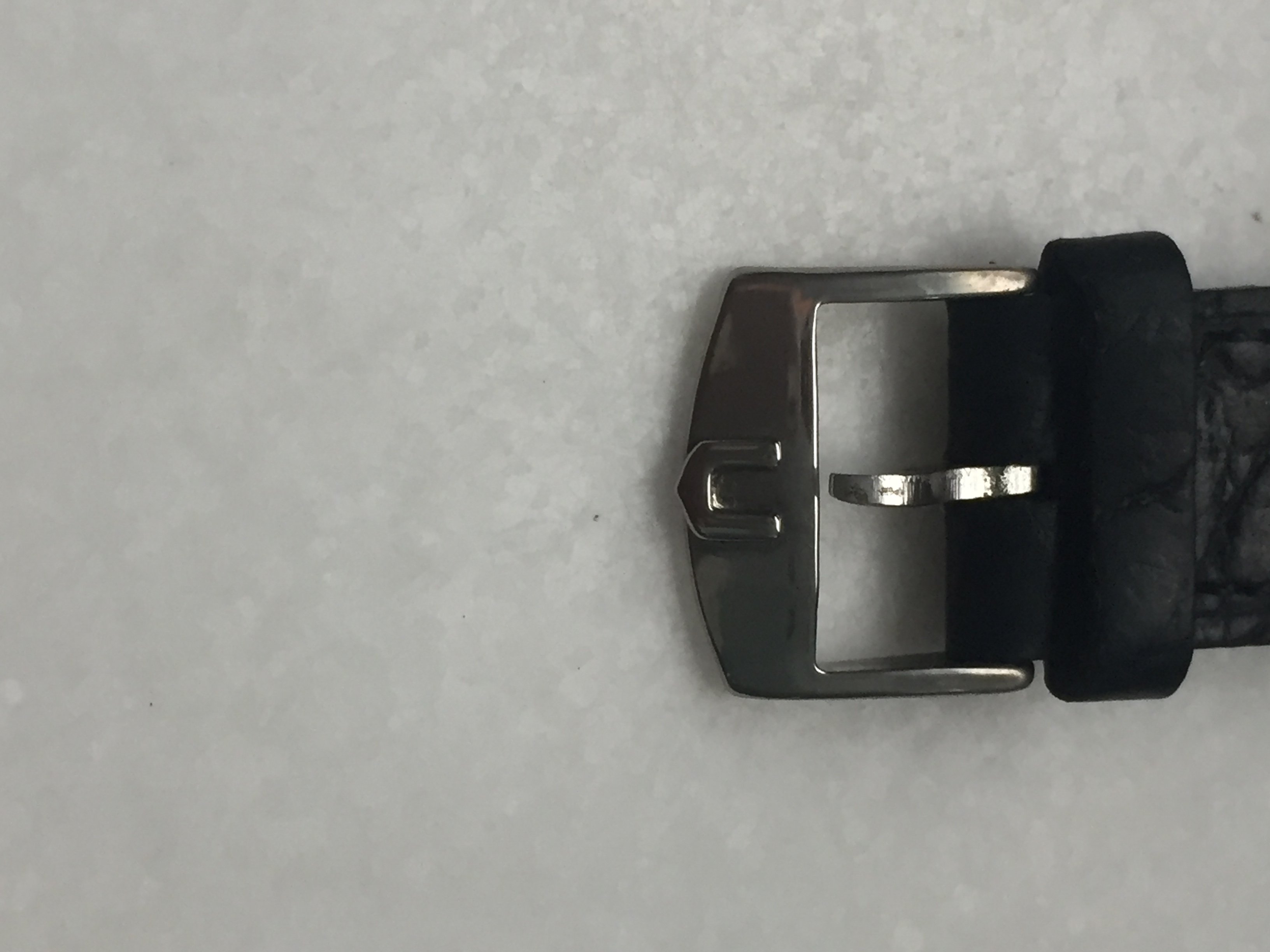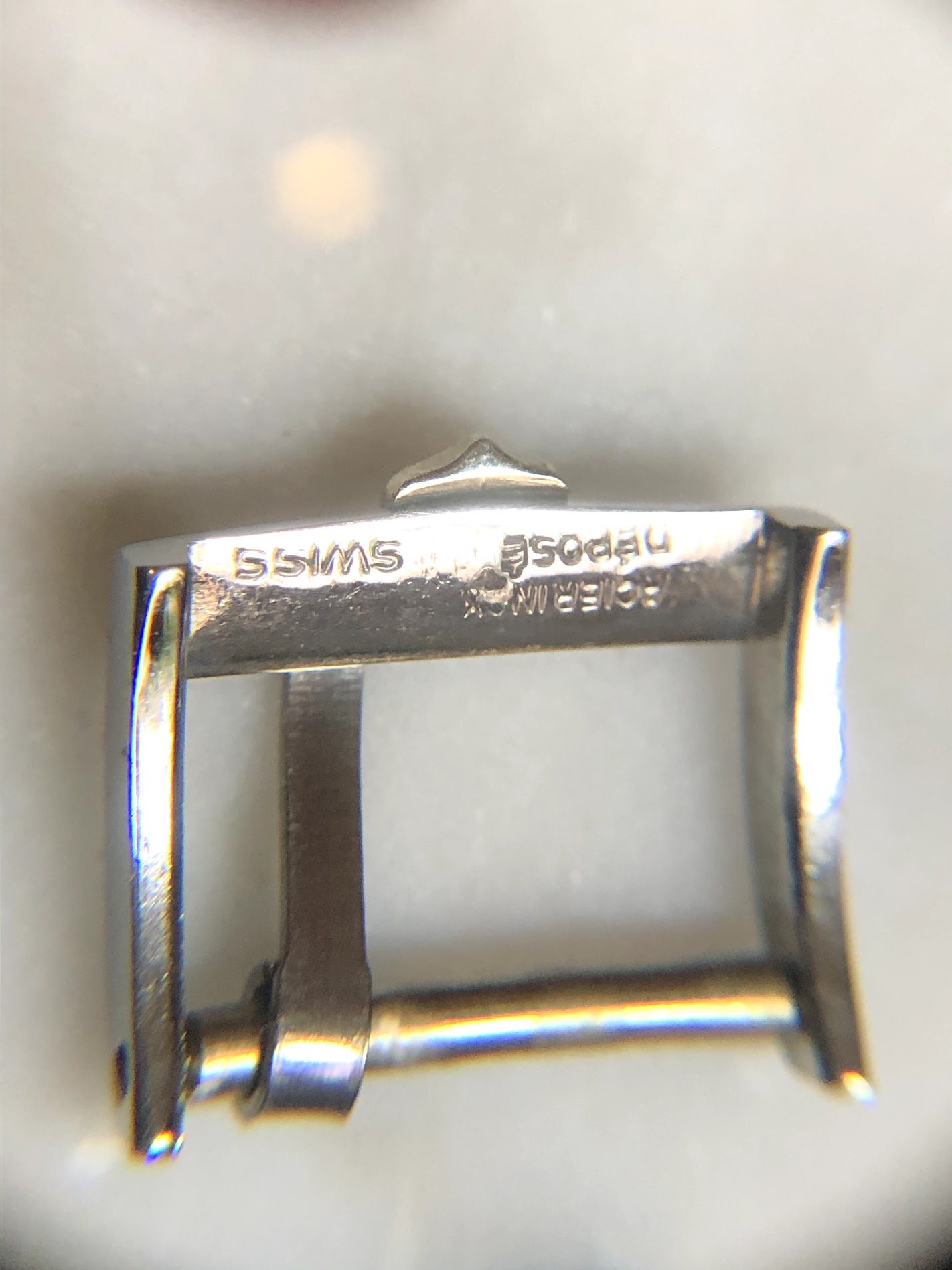 It looks like the logo is genuine, from a type 1 14mm buckle (1950s), but it has been put onto some aftermarket 16mm buckle and heavily polished to try to disguise it...