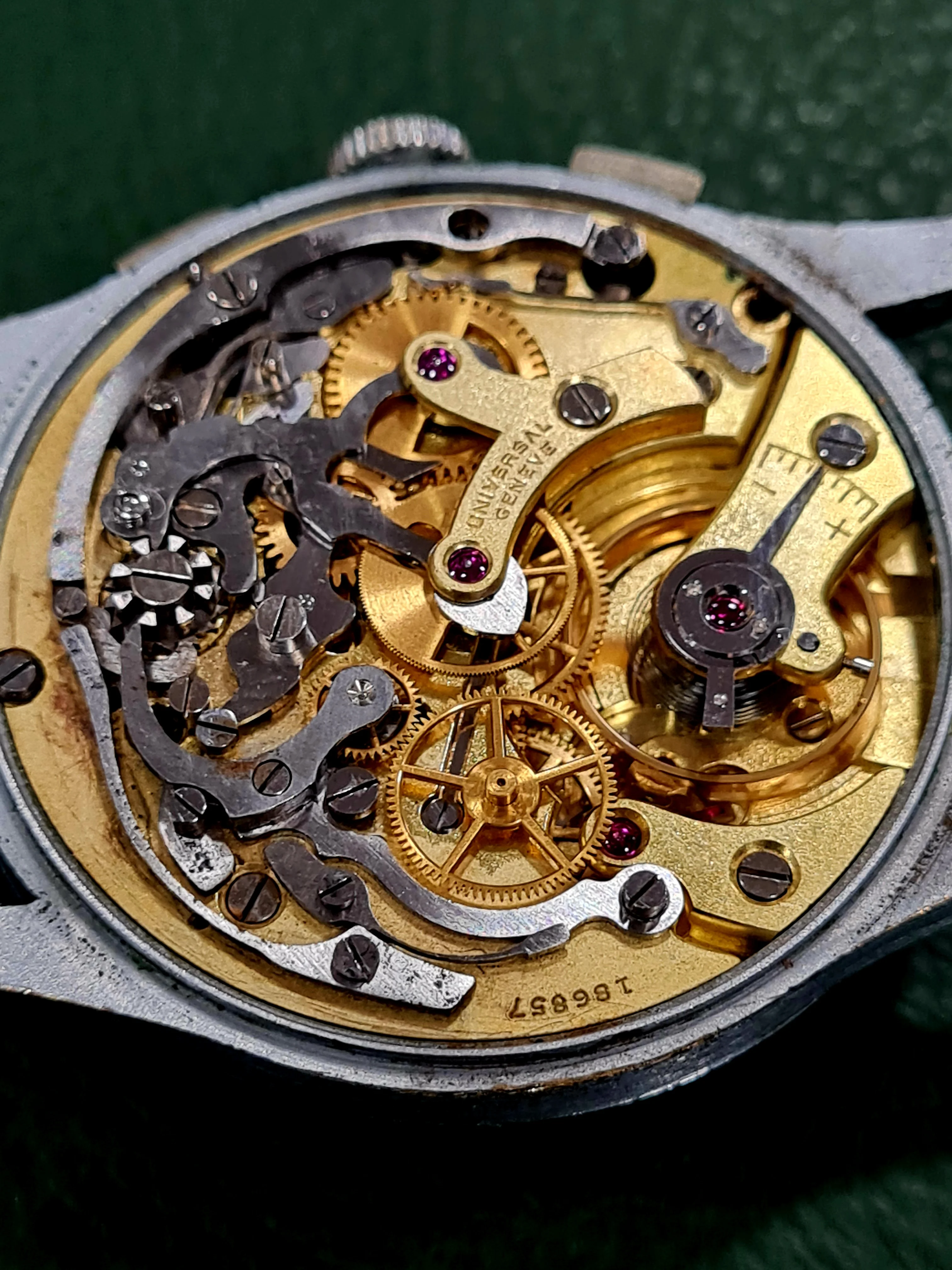 After I picked it up, I opened the caseback and saw the Universal Geneve 385, I guess.