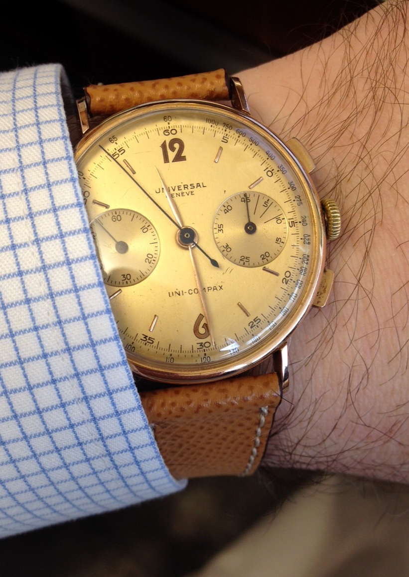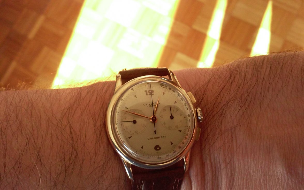 I have a particular fondness for UG deco numbers. I thought it might be fun to have a thread dedicated to these. I have a few, they are all in the shop, but just picked up this one today. I love the dial and the case is nice too, has these very delicate, triple faceted lugs.