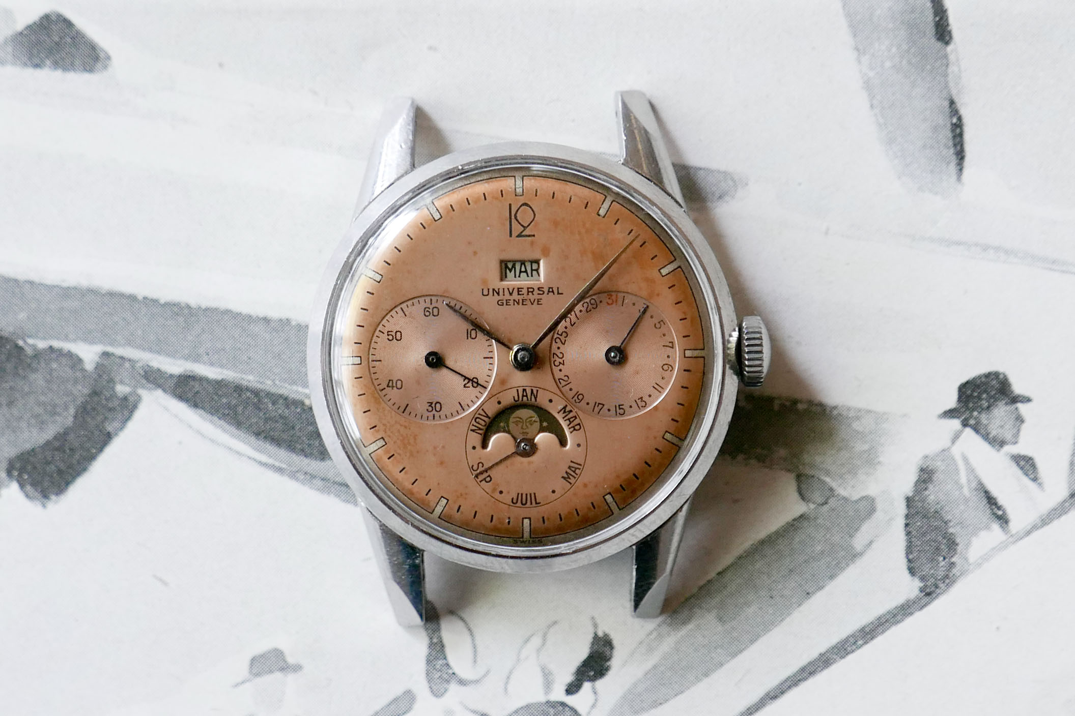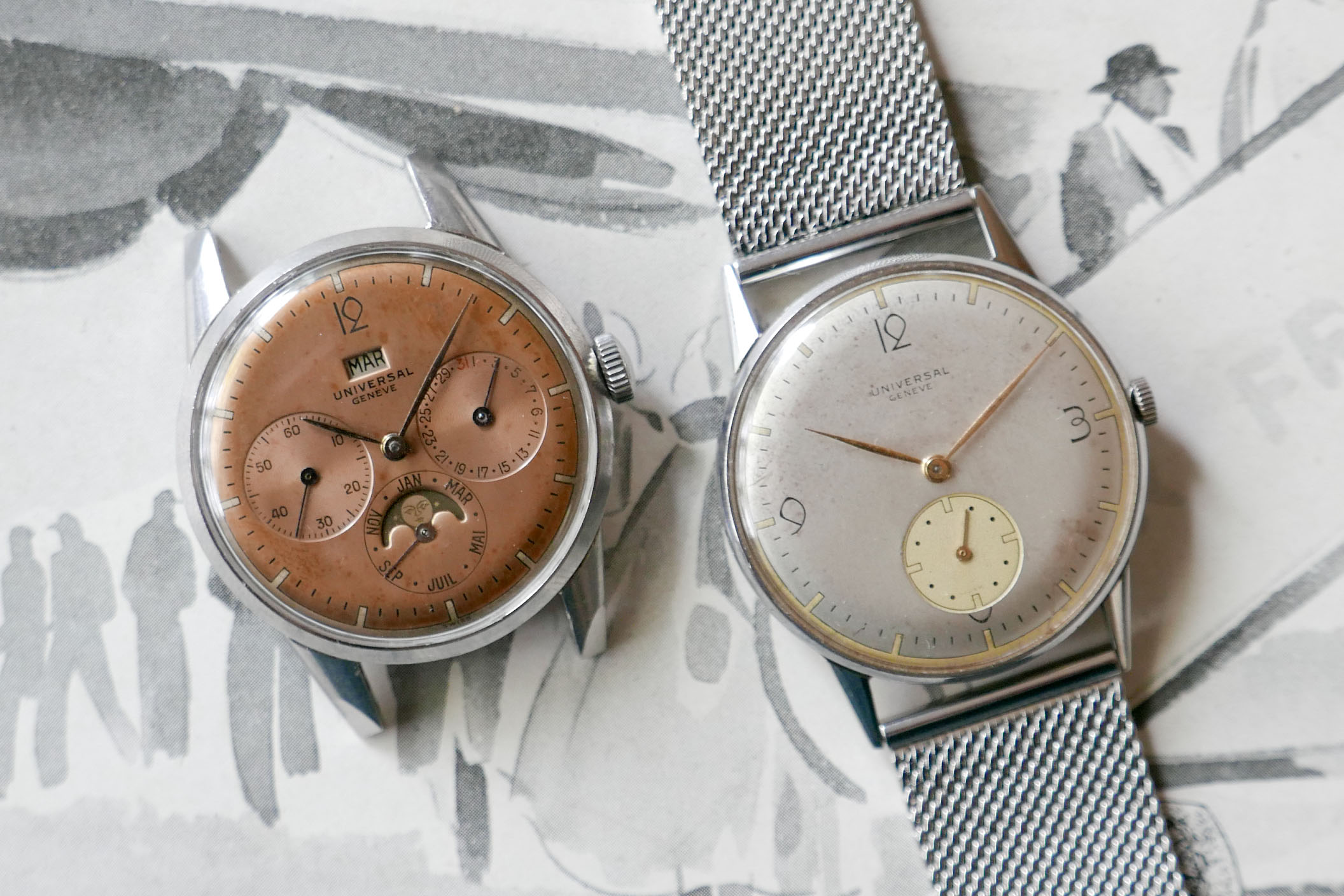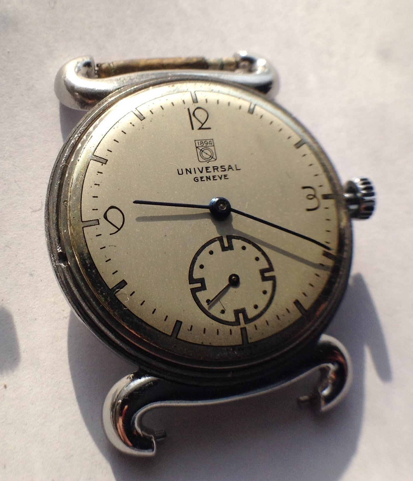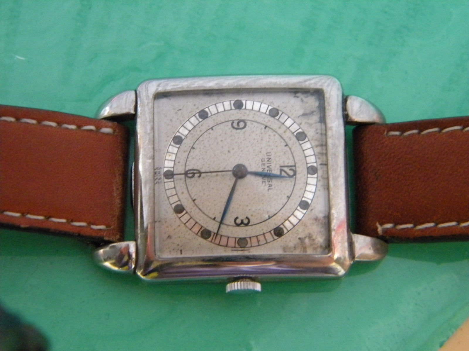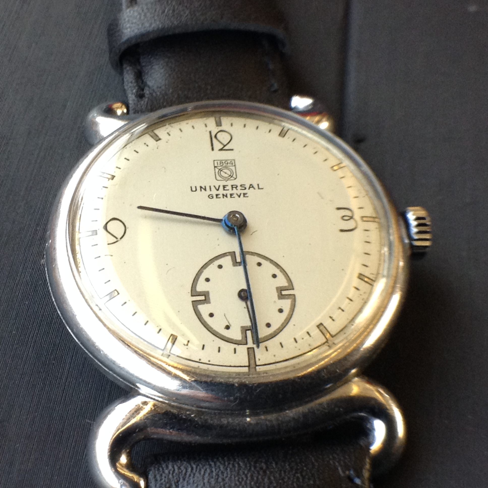Posts 1,198 Likes 3,037 Mazoue 路May 1, 2018 This one is currently on eBay https://www.befr.ebay.be/itm/Universal-Geneve-/173296593729 The dial is a bit tired/dirty but is it also an old redial? The circle with mirror finish seems to go outside of the black circular track.