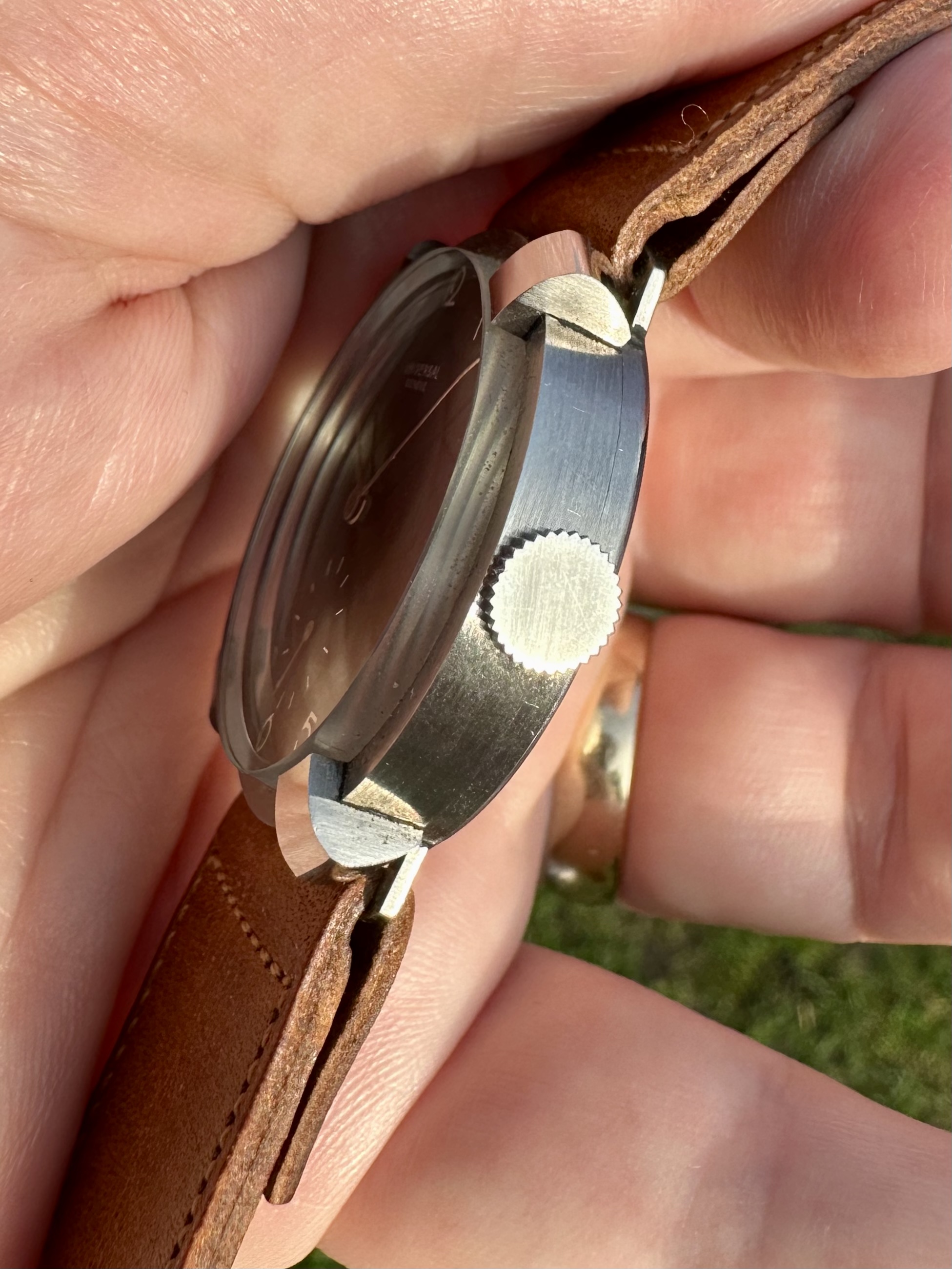 The flat crown is a nice touch too and almost disappears from view when the watch is glimpsed head on.