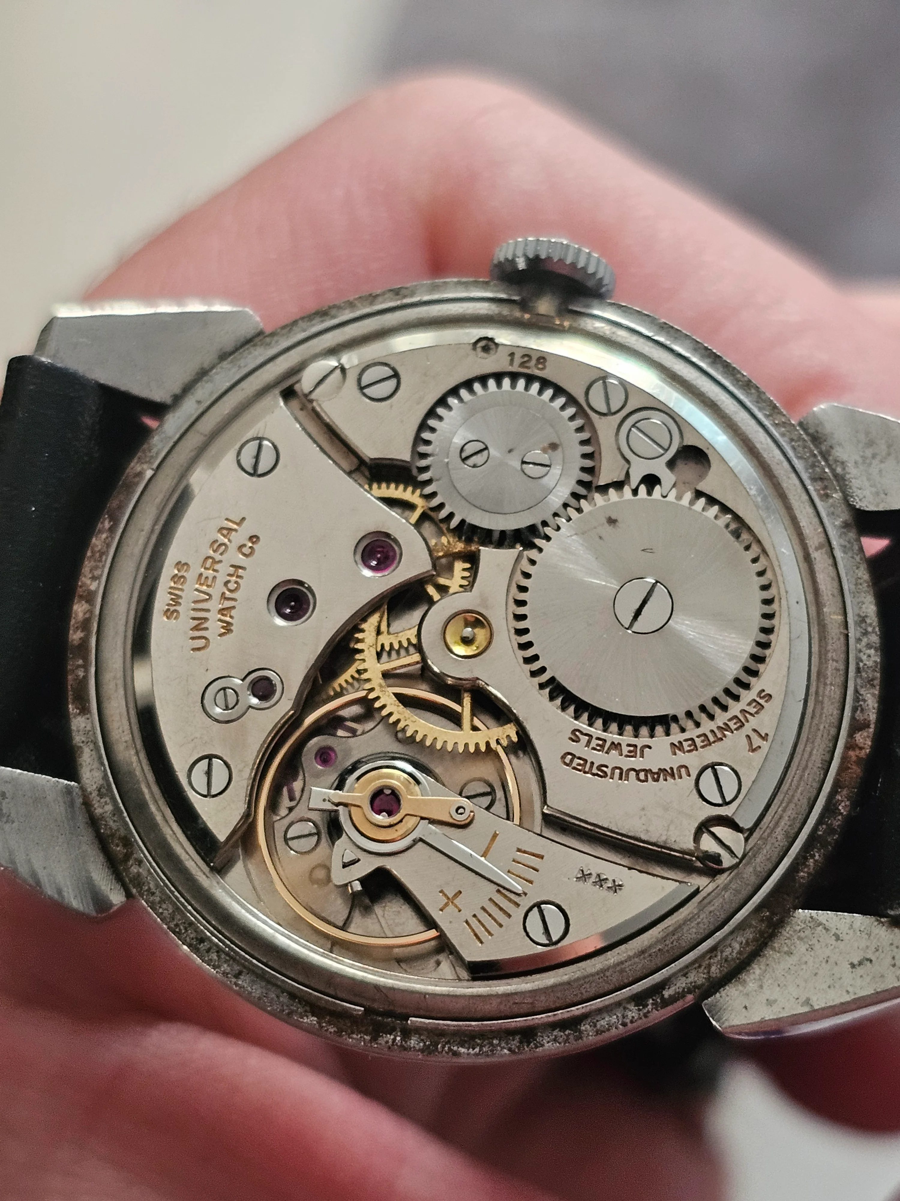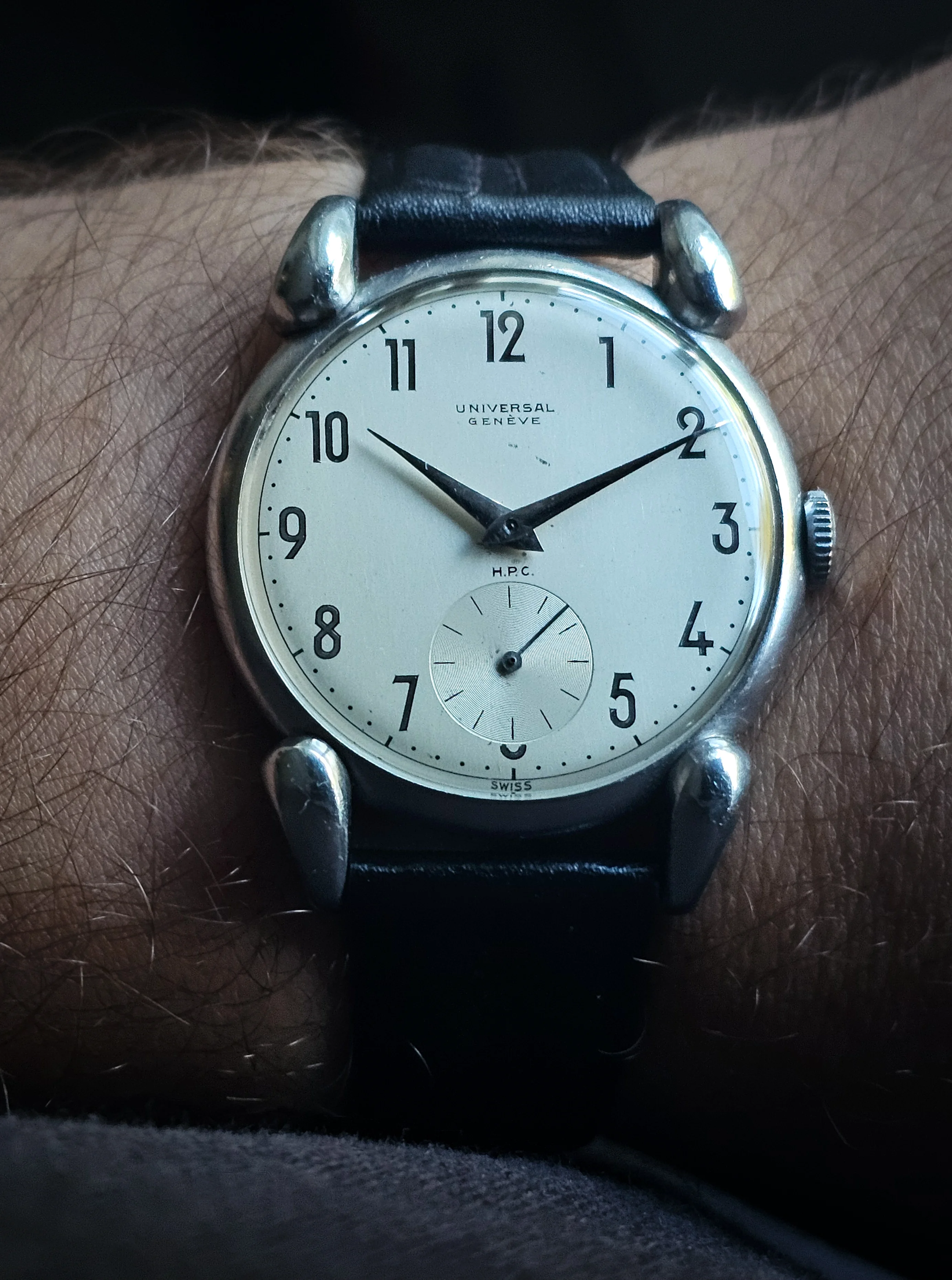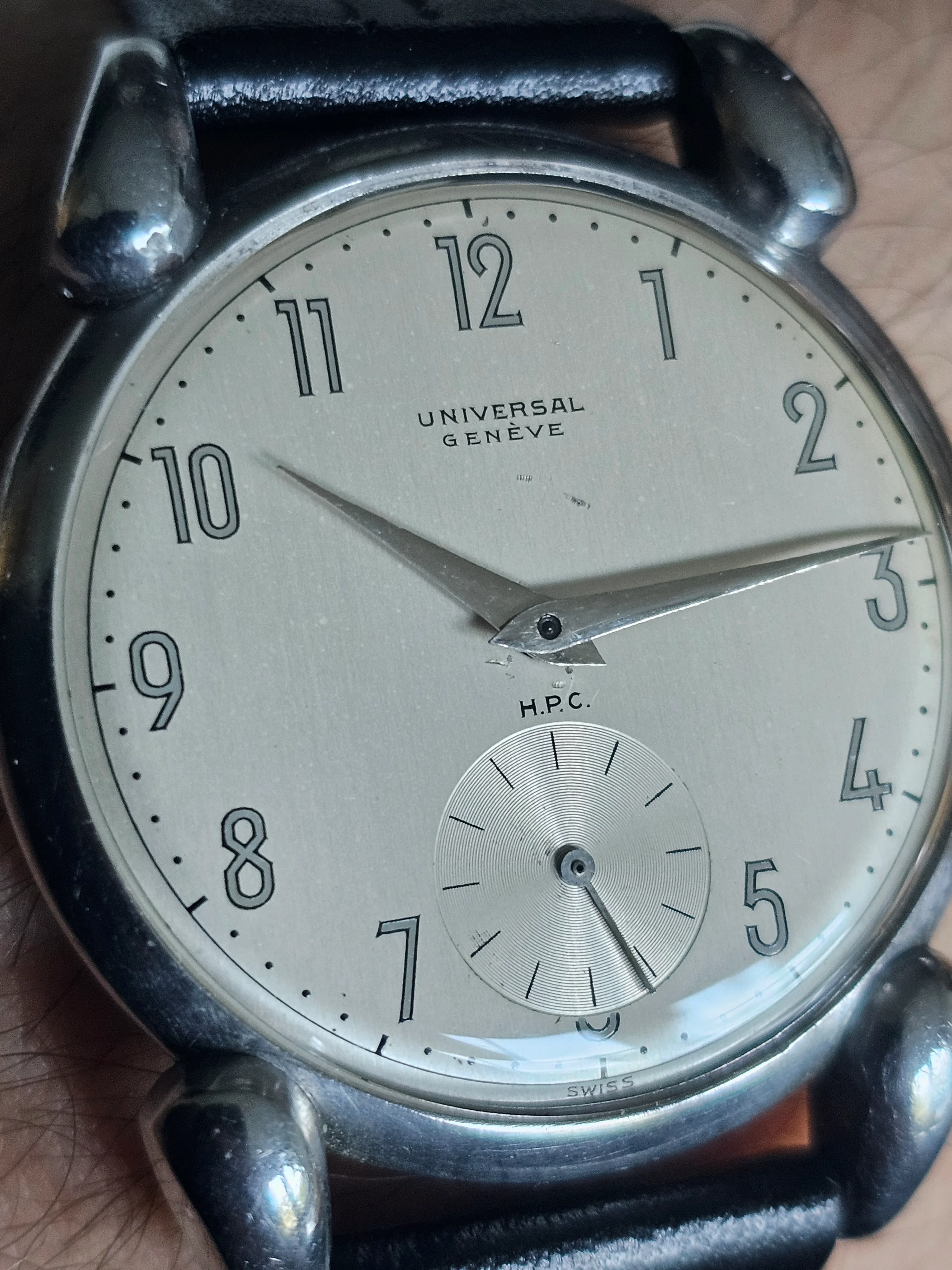 Posts 5 Likes 4 mkk_watches ·Aug 27, 2025 My latest buy! A nice-looking UG with tear drop lugs. I just started to wonder about the dial's originality and if this watch is really an H.P.C. The watch's caliber is 128.